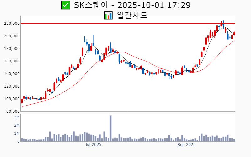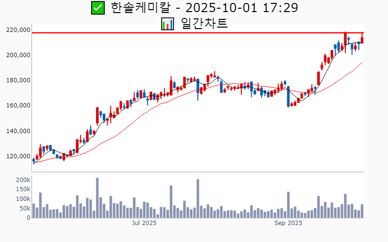 2025년 10월 1일 기준 52주/역사적 신고가에 근접한 종목 리스트를 한눈에 볼 수 있도록 정리했습니다. 더욱 자세한 정보는 AWAKE 신고가 모니터링 채널(https://t.me/awake_realtimeCheck)에서 확인하세요. 🔥 🚀 시장에서 강하고 수급이 집중되는 종목을 가장 빠르게 확인하고 싶다면, ⭐️⭐️신고가 플러스 소개(아래 링크를 클릭하세요)⭐️⭐️ https://fishy-trampoline-79b.notion.site/1-1bd75164780f8043a665e84ea5e17548 ![]() ✅ 삼성전자 🔍 52주 최고가 0.1% 남음 거래대금 : 1.8조 시가총액 : 509.1조 현재주가 : 86,000원 - 52주 최고가 : 86,100원(+0.1%) - 사상 최고가 : 91,000원(+10.7%) --------------------------------------------------- ![]() ✅ 삼성전자우 🔍 52주 최고가 0.6% 남음 거래대금 : 1,605억 시가총액 : 55.5조 현재주가 : 68,000원 - 52주 최고가 : 68,400원(+0.6%) - 사상 최고가 : 81,000원(-1.5%) --------------------------------------------------- ![]() ✅ 신한지주 🔍 역사적 최고가 1.6% 남음 거래대금 : 418억 시가총액 : 34.3조 현재주가 : 70,700원 - 역사적 최고가 : 71,800원(+1.6%) --------------------------------------------------- ![]() ✅ 한화오션 🔍 역사적 최고가 12.1% 남음 거래대금 : 1,184억 시가총액 : 33.8조 현재주가 : 110,400원 - 역사적 최고가 : 123,800원(+12.1%) --------------------------------------------------- ![]() ✅ 삼성물산 🔍 52주 최고가 6.0% 남음 거래대금 : 365억 시가총액 : 32.1조 현재주가 : 188,600원 - 52주 최고가 : 200,000원(+6.0%) - 사상 최고가 : 204,500원(+148.8%) --------------------------------------------------- ![]() ✅ 삼성생명 🔍 역사적 최고가 8.2% 남음 거래대금 : 252억 시가총액 : 31.0조 현재주가 : 155,100원 - 역사적 최고가 : 167,800원(+8.2%) --------------------------------------------------- ![]() ✅ HD한국조선해양 🔍 역사적 최고가 3.5% 남음 거래대금 : 855억 시가총액 : 29.3조 현재주가 : 414,000원 - 역사적 최고가 : 428,500원(+3.5%) --------------------------------------------------- ![]() ✅ SK스퀘어 🔍 역사적 최고가 7.3% 남음 거래대금 : 557억 시가총액 : 27.2조 현재주가 : 205,500원 - 역사적 최고가 : 220,500원(+7.3%) --------------------------------------------------- ![]() ✅ 현대로템 🔍 역사적 최고가 3.6% 남음 거래대금 : 982억 시가총액 : 24.2조 현재주가 : 222,000원 - 역사적 최고가 : 230,000원(+3.6%) --------------------------------------------------- ![]() ✅ 삼성중공업 🔍 역사적 최고가 4.1% 남음 거래대금 : 648억 시가총액 : 19.2조 현재주가 : 21,800원 - 역사적 최고가 : 22,700원(+4.1%) --------------------------------------------------- ![]() ✅ 효성중공업 🔍 역사적 최고가 4.8% 남음 거래대금 : 683억 시가총액 : 12.9조 현재주가 : 1,379,000원 - 역사적 최고가 : 1,445,000원(+4.8%) --------------------------------------------------- ![]() ✅ HD현대 🔍 역사적 최고가 4.9% 남음 거래대금 : 174억 시가총액 : 12.4조 현재주가 : 156,700원 - 역사적 최고가 : 164,300원(+4.9%) --------------------------------------------------- ![]() ✅ 삼양식품 🔍 역사적 최고가 5.2% 남음 거래대금 : 764억 시가총액 : 11.8조 현재주가 : 1,562,000원 - 역사적 최고가 : 1,644,000원(+5.2%) --------------------------------------------------- ![]() ✅ 한국항공우주 🔍 역사적 최고가 7.8% 남음 거래대금 : 632억 시가총액 : 10.4조 현재주가 : 106,700원 - 역사적 최고가 : 115,000원(+7.8%) --------------------------------------------------- ![]() ✅ LG유플러스 🔍 52주 최고가 0.6% 남음 거래대금 : 91억 시가총액 : 6.6조 현재주가 : 15,410원 - 52주 최고가 : 15,500원(+0.6%) - 사상 최고가 : 18,400원(-77.6%) --------------------------------------------------- ![]() ✅ 리가켐바이오 🔍 역사적 최고가 8.2% 남음 거래대금 : 538억 시가총액 : 5.4조 현재주가 : 148,200원 - 역사적 최고가 : 160,300원(+8.2%) --------------------------------------------------- ![]() ✅ 리노공업 🔍 52주 최고가 3.6% 남음 거래대금 : 186억 시가총액 : 4.0조 현재주가 : 52,900원 - 52주 최고가 : 54,800원(+3.6%) - 사상 최고가 : 59,669원(-27.4%) --------------------------------------------------- ![]() ✅ 서울보증보험 🔍 137일 최고가 3.8% 남음 거래대금 : 55억 시가총액 : 3.6조 현재주가 : 52,200원 - 137일 최고가 : 55,000원(+3.8%) --------------------------------------------------- ![]() ✅ 케어젠 🔍 역사적 최고가 11.8% 남음 거래대금 : 40억 시가총액 : 3.4조 현재주가 : 62,800원 - 역사적 최고가 : 70,200원(+11.8%) --------------------------------------------------- ![]() ✅ 보로노이 🔍 역사적 최고가 3.8% 남음 거래대금 : 142억 시가총액 : 3.0조 현재주가 : 164,800원 - 역사적 최고가 : 171,100원(+3.8%) --------------------------------------------------- ![]() ✅ HD현대마린엔진 🔍 52주 최고가 7.5% 남음 거래대금 : 407억 시가총액 : 3.0조 현재주가 : 88,400원 - 52주 최고가 : 95,000원(+7.5%) - 사상 최고가 : 962,783원(+1071.3%) --------------------------------------------------- ![]() ✅ 이오테크닉스 🔍 52주 최고가 6.0% 남음 거래대금 : 155억 시가총액 : 2.9조 현재주가 : 235,000원 - 52주 최고가 : 249,000원(+6.0%) - 사상 최고가 : 273,000원(+232.1%) --------------------------------------------------- ![]() ✅ HPSP 🔍 52주 최고가 7.4% 남음 거래대금 : 259억 시가총액 : 2.9조 현재주가 : 34,450원 - 52주 최고가 : 37,000원(+7.4%) - 사상 최고가 : 63,100원(-23.2%) --------------------------------------------------- ![]() ✅ DB하이텍 🔍 52주 최