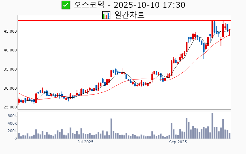 2025년 10월 10일 기준 52주/역사적 신고가에 근접한 종목 리스트를 한눈에 볼 수 있도록 정리했습니다. 더욱 자세한 정보는 AWAKE 신고가 모니터링 채널(https://t.me/awake_realtimeCheck)에서 확인하세요. 🔥 🚀 시장에서 강하고 수급이 집중되는 종목을 가장 빠르게 확인하고 싶다면, ⭐️⭐️신고가 플러스 소개(아래 링크를 클릭하세요)⭐️⭐️ https://fishy-trampoline-79b.notion.site/1-1bd75164780f8043a665e84ea5e17548 ![]() ✅ 삼성생명 🔍 역사적 최고가 5.4% 남음 거래대금 : 579억 시가총액 : 31.8조 현재주가 : 159,200원 - 역사적 최고가 : 167,800원(+5.4%) --------------------------------------------------- ![]() ✅ HD한국조선해양 🔍 역사적 최고가 3.3% 남음 거래대금 : 895억 시가총액 : 29.4조 현재주가 : 415,000원 - 역사적 최고가 : 428,500원(+3.3%) --------------------------------------------------- ![]() ✅ 현대로템 🔍 역사적 최고가 4.3% 남음 거래대금 : 1,943억 시가총액 : 24.1조 현재주가 : 220,500원 - 역사적 최고가 : 230,000원(+4.3%) --------------------------------------------------- ![]() ✅ 삼성중공업 🔍 역사적 최고가 1.1% 남음 거래대금 : 1,155억 시가총액 : 19.8조 현재주가 : 22,450원 - 역사적 최고가 : 22,700원(+1.1%) --------------------------------------------------- ![]() ✅ SK 🔍 52주 최고가 7.1% 남음 거래대금 : 417억 시가총액 : 15.9조 현재주가 : 219,000원 - 52주 최고가 : 234,500원(+7.1%) - 사상 최고가 : 358,500원(+336.1%) --------------------------------------------------- ![]() ✅ 한미반도체 🔍 52주 최고가 5.9% 남음 거래대금 : 5,392억 시가총액 : 11.4조 현재주가 : 119,100원 - 52주 최고가 : 126,100원(+5.9%) - 사상 최고가 : 190,200원(+131.4%) --------------------------------------------------- ![]() ✅ 한국항공우주 🔍 역사적 최고가 8.0% 남음 거래대금 : 687억 시가총액 : 10.4조 현재주가 : 106,500원 - 역사적 최고가 : 115,000원(+8.0%) --------------------------------------------------- ![]() ✅ 에이피알 🔍 역사적 최고가 1.6% 남음 거래대금 : 1,275억 시가총액 : 9.6조 현재주가 : 257,000원 - 역사적 최고가 : 261,000원(+1.6%) --------------------------------------------------- ![]() ✅ 키움증권 🔍 역사적 최고가 12.0% 남음 거래대금 : 307억 시가총액 : 6.6조 현재주가 : 250,000원 - 역사적 최고가 : 280,000원(+12.0%) --------------------------------------------------- ![]() ✅ 이수페타시스 🔍 역사적 최고가 3.8% 남음 거래대금 : 1,648억 시가총액 : 5.6조 현재주가 : 76,100원 - 역사적 최고가 : 80,700원(+3.8%) --------------------------------------------------- ![]() ✅ 리가켐바이오 🔍 역사적 최고가 6.4% 남음 거래대금 : 346억 시가총액 : 5.5조 현재주가 : 150,600원 - 역사적 최고가 : 160,300원(+6.4%) --------------------------------------------------- ![]() ✅ 두산로보틱스 🔍 52주 최고가 8.7% 남음 거래대금 : 466억 시가총액 : 4.6조 현재주가 : 70,200원 - 52주 최고가 : 76,300원(+8.7%) - 사상 최고가 : 121,800원(+48.2%) --------------------------------------------------- ![]() ✅ LG이노텍 🔍 52주 최고가 6.0% 남음 거래대금 : 384억 시가총액 : 4.5조 현재주가 : 191,900원 - 52주 최고가 : 203,500원(+6.0%) - 사상 최고가 : 414,500원(+404.3%) --------------------------------------------------- ![]() ✅ 케어젠 🔍 역사적 최고가 10.9% 남음 거래대금 : 44억 시가총액 : 3.4조 현재주가 : 63,300원 - 역사적 최고가 : 70,200원(+10.9%) --------------------------------------------------- ![]() ✅ HD현대마린엔진 🔍 52주 최고가 10.7% 남음 거래대금 : 236억 시가총액 : 2.9조 현재주가 : 85,800원 - 52주 최고가 : 95,000원(+10.7%) - 사상 최고가 : 962,783원(+1071.3%) --------------------------------------------------- ![]() ✅ 디앤디파마텍 🔍 역사적 최고가 9.8% 남음 거래대금 : 553억 시가총액 : 2.2조 현재주가 : 199,900원 - 역사적 최고가 : 219,500원(+9.8%) --------------------------------------------------- ![]() ✅ 두산퓨얼셀 🔍 52주 최고가 2.5% 남음 거래대금 : 632억 시가총액 : 2.1조 현재주가 : 32,650원 - 52주 최고가 : 33,450원(+2.5%) - 사상 최고가 : 63,800원(-22.4%) --------------------------------------------------- ![]() ✅ 올릭스 🔍 역사적 최고가 9.4% 남음 거래대금 : 869억 시가총액 : 1.9조 현재주가 : 96,600원 - 역사적 최고가 : 105,700원(+9.4%) --------------------------------------------------- ![]() ✅ 오스코텍 🔍 52주 최고가 5.2% 남음 거래대금 : 69억 시가총액 : 1.7조 현재주가 : 45,450원 - 52주 최고가 : 47,800원(+5.2%) - 사상 최고가 : 67,676원(-17.7%) --------------------------------------------------- ![]() ✅ 한국카본 🔍 역사적 최고가 7.9% 남음 거래대금 : 136억 시가총액 : 1.7조 현재주가 : 33,000원 - 역사적 최고가 : 35,600원(+7.9%) --------------------------------------------------- ![]() ✅ 효성 🔍 52주 최고가 6.2% 남음 거래대금 : 38억 시가총액 : 1.5조 현재주가 : 89,000원 - 52주 최고가 : 94,500원(+6.2%) - 사상 최고가 : 97,832원(+19.0%) --------------------------------------------------- ![]() ✅ 제이앤티씨 🔍 52주 최고가 11.7% 남음 거래대금 : 115억 시가총액 : 1.5조 현재주가 : 25,700원 - 52주 최고가 : 28,700원(+11.7%) - 사상 최고가 : 31,250원(-62.0%) --------------------------------------------------- ![]() ✅ 하이젠알앤엠 🔍 역사적 최고가 6.1% 남음 거래대금 : 352억 시가총액 : 1.5조 현재주가 : 47,200원 - 역사적 최고가 : 50,100원(+6.1%) -------------------------------------------------