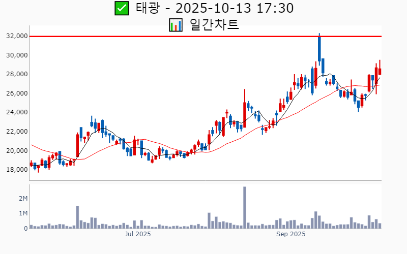 2025년 10월 13일 기준 52주/역사적 신고가에 근접한 종목 리스트를 한눈에 볼 수 있도록 정리했습니다. 더욱 자세한 정보는 AWAKE 신고가 모니터링 채널(https://t.me/awake_realtimeCheck)에서 확인하세요. 🔥 🚀 시장에서 강하고 수급이 집중되는 종목을 가장 빠르게 확인하고 싶다면, ⭐️⭐️신고가 플러스 소개(아래 링크를 클릭하세요)⭐️⭐️ https://fishy-trampoline-79b.notion.site/1-1bd75164780f8043a665e84ea5e17548 ![]() ✅ 삼성생명 🔍 역사적 최고가 6.9% 남음 거래대금 : 396억 시가총액 : 31.4조 현재주가 : 157,000원 - 역사적 최고가 : 167,800원(+6.9%) --------------------------------------------------- ![]() ✅ 삼성중공업 🔍 역사적 최고가 2.3% 남음 거래대금 : 887억 시가총액 : 19.5조 현재주가 : 22,200원 - 역사적 최고가 : 22,700원(+2.3%) --------------------------------------------------- ![]() ✅ SK 🔍 52주 최고가 6.1% 남음 거래대금 : 650억 시가총액 : 16.0조 현재주가 : 221,000원 - 52주 최고가 : 234,500원(+6.1%) - 사상 최고가 : 358,500원(+336.1%) --------------------------------------------------- ![]() ✅ 에이피알 🔍 역사적 최고가 1.0% 남음 거래대금 : 694억 시가총액 : 9.7조 현재주가 : 258,500원 - 역사적 최고가 : 261,000원(+1.0%) --------------------------------------------------- ![]() ✅ 리가켐바이오 🔍 역사적 최고가 5.9% 남음 거래대금 : 488억 시가총액 : 5.5조 현재주가 : 151,300원 - 역사적 최고가 : 160,300원(+5.9%) --------------------------------------------------- ![]() ✅ 두산로보틱스 🔍 52주 최고가 9.5% 남음 거래대금 : 314억 시가총액 : 4.5조 현재주가 : 69,700원 - 52주 최고가 : 76,300원(+9.5%) - 사상 최고가 : 121,800원(+48.2%) --------------------------------------------------- ![]() ✅ HPSP 🔍 52주 최고가 0.4% 남음 거래대금 : 348억 시가총액 : 3.1조 현재주가 : 36,850원 - 52주 최고가 : 37,000원(+0.4%) - 사상 최고가 : 63,100원(-23.2%) --------------------------------------------------- ![]() ✅ HD현대마린엔진 🔍 52주 최고가 7.7% 남음 거래대금 : 332억 시가총액 : 3.0조 현재주가 : 88,200원 - 52주 최고가 : 95,000원(+7.7%) - 사상 최고가 : 962,783원(+1071.3%) --------------------------------------------------- ![]() ✅ DB하이텍 🔍 52주 최고가 1.5% 남음 거래대금 : 304억 시가총액 : 2.6조 현재주가 : 58,900원 - 52주 최고가 : 59,800원(+1.5%) - 사상 최고가 : 84,900원(+3.3%) --------------------------------------------------- ![]() ✅ 솔브레인 🔍 52주 최고가 2.1% 남음 거래대금 : 119억 시가총액 : 2.3조 현재주가 : 291,500원 - 52주 최고가 : 297,500원(+2.1%) - 사상 최고가 : 367,700원(+347.3%) --------------------------------------------------- ![]() ✅ 두산퓨얼셀 🔍 52주 최고가 6.0% 남음 거래대금 : 361억 시가총액 : 2.1조 현재주가 : 31,550원 - 52주 최고가 : 33,450원(+6.0%) - 사상 최고가 : 63,800원(-22.4%) --------------------------------------------------- ![]() ✅ 와이지엔터테인먼트 🔍 역사적 최고가 1.9% 남음 거래대금 : 274억 시가총액 : 2.0조 현재주가 : 105,400원 - 역사적 최고가 : 107,400원(+1.9%) --------------------------------------------------- ![]() ✅ 한국카본 🔍 역사적 최고가 2.2% 남음 거래대금 : 232억 시가총액 : 1.8조 현재주가 : 34,850원 - 역사적 최고가 : 35,600원(+2.2%) --------------------------------------------------- ![]() ✅ 효성 🔍 52주 최고가 6.5% 남음 거래대금 : 18억 시가총액 : 1.5조 현재주가 : 88,700원 - 52주 최고가 : 94,500원(+6.5%) - 사상 최고가 : 97,832원(+19.0%) --------------------------------------------------- ![]() ✅ 파두 🔍 52주 최고가 5.7% 남음 거래대금 : 291억 시가총액 : 1.2조 현재주가 : 23,600원 - 52주 최고가 : 24,950원(+5.7%) - 사상 최고가 : 45,000원(-45.3%) --------------------------------------------------- ![]() ✅ 피에스케이홀딩스 🔍 52주 최고가 13.4% 남음 거래대금 : 122억 시가총액 : 1.2조 현재주가 : 53,600원 - 52주 최고가 : 60,800원(+13.4%) - 사상 최고가 : 81,500원(-0.9%) --------------------------------------------------- ![]() ✅ SNT에너지 🔍 역사적 최고가 16.3% 남음 거래대금 : 139억 시가총액 : 1.1조 현재주가 : 55,100원 - 역사적 최고가 : 64,100원(+16.3%) --------------------------------------------------- ![]() ✅ 삼양홀딩스 🔍 52주 최고가 2.8% 남음 거래대금 : 19억 시가총액 : 8,494억 현재주가 : 98,900원 - 52주 최고가 : 101,700원(+2.8%) - 사상 최고가 : 300,000원(+265.0%) --------------------------------------------------- ![]() ✅ 쎄트렉아이 🔍 52주 최고가 6.9% 남음 거래대금 : 64억 시가총액 : 7,578억 현재주가 : 69,200원 - 52주 최고가 : 74,000원(+6.9%) - 사상 최고가 : 78,400원(-4.6%) --------------------------------------------------- ![]() ✅ 태광 🔍 역사적 최고가 11.9% 남음 거래대금 : 102억 시가총액 : 7,566억 현재주가 : 28,550원 - 역사적 최고가 : 31,950원(+11.9%) --------------------------------------------------- ![]() ✅ 파미셀 🔍 52주 최고가 15.8% 남음 거래대금 : 84억 시가총액 : 7,454억 현재주가 : 12,420원 - 52주 최고가 : 14,380원(+15.8%) - 사상 최고가 : 25,600원(-68.9%) --------------------------------------------------- ![]() ✅ 오름테라퓨틱 🔍 159일 최고가 11.1% 남음 거래대금 : 46억 시가총액 : 7,427억 현재주가 : 35,100원 - 159일 최고가 : 39,000원(+11.1%) --------------------------------------------------- ![]() ✅ 제이에스링크 🔍 52주 최고가 8.4% 남음 거래대금 : 201억 시가총액 : 6,870억 현재주가 : 23,150원 -