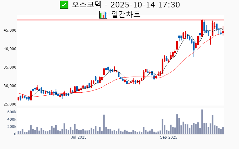 2025년 10월 14일 기준 52주/역사적 신고가에 근접한 종목 리스트를 한눈에 볼 수 있도록 정리했습니다. 더욱 자세한 정보는 AWAKE 신고가 모니터링 채널(https://t.me/awake_realtimeCheck)에서 확인하세요. 🔥 🚀 시장에서 강하고 수급이 집중되는 종목을 가장 빠르게 확인하고 싶다면, ⭐️⭐️신고가 플러스 소개(아래 링크를 클릭하세요)⭐️⭐️ https://fishy-trampoline-79b.notion.site/1-1bd75164780f8043a665e84ea5e17548 ![]() ✅ SK 🔍 52주 최고가 5.6% 남음 거래대금 : 377억 시가총액 : 16.1조 현재주가 : 222,000원 - 52주 최고가 : 234,500원(+5.6%) - 사상 최고가 : 358,500원(+336.1%) --------------------------------------------------- ![]() ✅ 효성중공업 🔍 역사적 최고가 2.3% 남음 거래대금 : 846억 시가총액 : 13.7조 현재주가 : 1,465,000원 - 역사적 최고가 : 1,498,000원(+2.3%) --------------------------------------------------- ![]() ✅ 이수페타시스 🔍 역사적 최고가 8.6% 남음 거래대금 : 2,260억 시가총액 : 5.5조 현재주가 : 74,300원 - 역사적 최고가 : 80,700원(+8.6%) --------------------------------------------------- ![]() ✅ 두산로보틱스 🔍 52주 최고가 11.5% 남음 거래대금 : 676억 시가총액 : 4.4조 현재주가 : 68,400원 - 52주 최고가 : 76,300원(+11.5%) - 사상 최고가 : 121,800원(+48.2%) --------------------------------------------------- ![]() ✅ 보로노이 🔍 역사적 최고가 2.0% 남음 거래대금 : 271억 시가총액 : 3.1조 현재주가 : 167,900원 - 역사적 최고가 : 171,200원(+2.0%) --------------------------------------------------- ![]() ✅ HPSP 🔍 52주 최고가 4.7% 남음 거래대금 : 616억 시가총액 : 3.0조 현재주가 : 35,350원 - 52주 최고가 : 38,300원(+4.7%) - 사상 최고가 : 63,100원(-23.2%) --------------------------------------------------- ![]() ✅ 두산퓨얼셀 🔍 52주 최고가 7.7% 남음 거래대금 : 746억 시가총액 : 2.0조 현재주가 : 31,050원 - 52주 최고가 : 33,500원(+7.7%) - 사상 최고가 : 63,800원(-22.4%) --------------------------------------------------- ![]() ✅ 올릭스 🔍 역사적 최고가 6.2% 남음 거래대금 : 1,543억 시가총액 : 2.0조 현재주가 : 99,500원 - 역사적 최고가 : 105,700원(+6.2%) --------------------------------------------------- ![]() ✅ 한국카본 🔍 역사적 최고가 5.0% 남음 거래대금 : 170억 시가총액 : 1.8조 현재주가 : 33,900원 - 역사적 최고가 : 35,600원(+5.0%) --------------------------------------------------- ![]() ✅ 오스코텍 🔍 52주 최고가 7.1% 남음 거래대금 : 84억 시가총액 : 1.7조 현재주가 : 44,650원 - 52주 최고가 : 47,800원(+7.1%) - 사상 최고가 : 67,676원(-17.7%) --------------------------------------------------- ![]() ✅ 파두 🔍 52주 최고가 11.1% 남음 거래대금 : 189억 시가총액 : 1.1조 현재주가 : 22,450원 - 52주 최고가 : 24,950원(+11.1%) - 사상 최고가 : 45,000원(-45.3%) --------------------------------------------------- ![]() ✅ 영풍 🔍 52주 최고가 2.0% 남음 거래대금 : 74억 시가총액 : 9,277억 현재주가 : 48,550원 - 52주 최고가 : 49,500원(+2.0%) - 사상 최고가 : 154,297원(+87.7%) --------------------------------------------------- ![]() ✅ 파미셀 🔍 52주 최고가 16.5% 남음 거래대금 : 226억 시가총액 : 7,406억 현재주가 : 12,340원 - 52주 최고가 : 14,380원(+16.5%) - 사상 최고가 : 25,600원(-68.9%) --------------------------------------------------- ![]() ✅ 오름테라퓨틱 🔍 160일 최고가 12.4% 남음 거래대금 : 69억 시가총액 : 7,342억 현재주가 : 34,700원 - 160일 최고가 : 39,000원(+12.4%) --------------------------------------------------- ![]() ✅ 제이에스링크 🔍 52주 최고가 12.3% 남음 거래대금 : 96억 시가총액 : 6,632억 현재주가 : 22,350원 - 52주 최고가 : 25,100원(+12.3%) - 사상 최고가 : 29,294원(-64.4%) --------------------------------------------------- ![]() ✅ 후성 🔍 52주 최고가 11.2% 남음 거래대금 : 34억 시가총액 : 6,489억 현재주가 : 6,050원 - 52주 최고가 : 6,730원(+11.2%) - 사상 최고가 : 26,027원(-68.3%) --------------------------------------------------- ![]() ✅ 인투셀 🔍 94일 최고가 13.0% 남음 거래대금 : 236억 시가총액 : 6,258억 현재주가 : 42,150원 - 94일 최고가 : 47,650원(+13.0%) --------------------------------------------------- ![]() ✅ 인텔리안테크 🔍 52주 최고가 10.2% 남음 거래대금 : 41억 시가총액 : 5,388억 현재주가 : 50,200원 - 52주 최고가 : 55,300원(+10.2%) - 사상 최고가 : 91,774원(+11.6%) --------------------------------------------------- ![]() ✅ 나이벡 🔍 52주 최고가 1.1% 남음 거래대금 : 390억 시가총액 : 4,749억 현재주가 : 42,000원 - 52주 최고가 : 42,450원(+1.1%) - 사상 최고가 : 55,200원(-32.8%) --------------------------------------------------- ![]() ✅ 아이티켐 🔍 42일 최고가 14.6% 남음 거래대금 : 92억 시가총액 : 4,259억 현재주가 : 33,850원 - 42일 최고가 : 38,800원(+14.6%) --------------------------------------------------- ![]() ✅ 하이록코리아 🔍 역사적 최고가 9.6% 남음 거래대금 : 37억 시가총액 : 4,225억 현재주가 : 35,900원 - 역사적 최고가 : 39,350원(+9.6%) --------------------------------------------------- ![]() ✅ 큐렉소 🔍 52주 최고가 6.7% 남음 거래대금 : 60억 시가총액 : 4,043억 현재주가 : 9,840원 - 52주 최고가 : 10,500원(+6.7%) - 사상 최고가 : 25,000원(-69.6%) --------------------------------------------------- ![]() ✅ 한국철강 🔍 52주 최고가 3.0% 남음 거래대금 : 2억 시가총액 : 3,696억 현재주가 : 10,140원 - 52주 최고가 : 10,440원(+3.0%) - 사상 