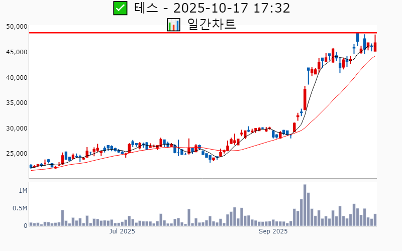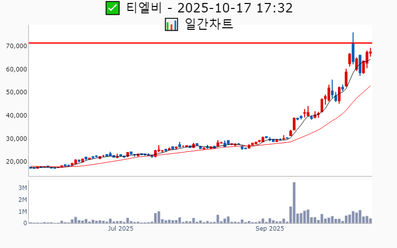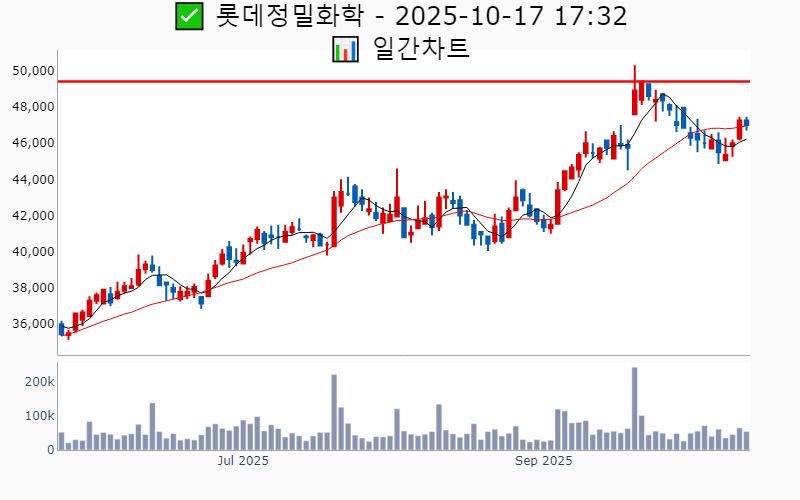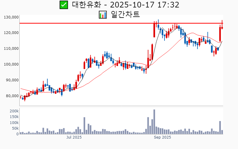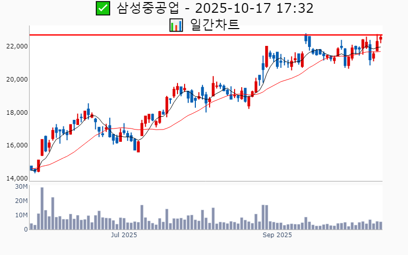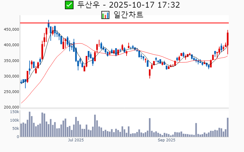 2025년 10월 17일 기준 52주/역사적 신고가에 근접한 종목 리스트를 한눈에 볼 수 있도록 정리했습니다. 더욱 자세한 정보는 AWAKE 신고가 모니터링 채널(https://t.me/awake_realtimeCheck)에서 확인하세요. 🔥 🚀 시장에서 강하고 수급이 집중되는 종목을 가장 빠르게 확인하고 싶다면, ⭐️⭐️신고가 플러스 소개(아래 링크를 클릭하세요)⭐️⭐️ https://fishy-trampoline-79b.notion.site/1-1bd75164780f8043a665e84ea5e17548 ![]() ✅ HD현대중공업 🔍 역사적 최고가 3.9% 남음 거래대금 : 681억 시가총액 : 45.2조 현재주가 : 509,000원 - 역사적 최고가 : 529,000원(+3.9%) --------------------------------------------------- ![]() ✅ 삼성중공업 🔍 역사적 최고가 0.7% 남음 거래대금 : 1,225억 시가총액 : 19.8조 현재주가 : 22,550원 - 역사적 최고가 : 22,700원(+0.7%) --------------------------------------------------- ![]() ✅ 에코프로비엠 🔍 52주 최고가 13.1% 남음 거래대금 : 7,883억 시가총액 : 15.7조 현재주가 : 161,000원 - 52주 최고가 : 182,100원(+13.1%) - 사상 최고가 : 483,000원(+487.6%) --------------------------------------------------- ![]() ✅ 삼성전기 🔍 52주 최고가 1.7% 남음 거래대금 : 1,154억 시가총액 : 15.5조 현재주가 : 207,000원 - 52주 최고가 : 210,500원(+1.7%) - 사상 최고가 : 218,000원(+165.2%) --------------------------------------------------- ![]() ✅ 한국금융지주 🔍 역사적 최고가 6.2% 남음 거래대금 : 432억 시가총액 : 8.6조 현재주가 : 154,100원 - 역사적 최고가 : 163,600원(+6.2%) --------------------------------------------------- ![]() ✅ 엘앤에프 🔍 52주 최고가 9.2% 남음 거래대금 : 2,723억 시가총액 : 4.0조 현재주가 : 111,000원 - 52주 최고가 : 121,200원(+9.2%) - 사상 최고가 : 340,000원(+313.6%) --------------------------------------------------- ![]() ✅ 한화엔진 🔍 역사적 최고가 6.7% 남음 거래대금 : 657억 시가총액 : 3.9조 현재주가 : 46,450원 - 역사적 최고가 : 49,550원(+6.7%) --------------------------------------------------- ![]() ✅ KCC 🔍 52주 최고가 11.3% 남음 거래대금 : 145억 시가총액 : 3.5조 현재주가 : 395,500원 - 52주 최고가 : 440,000원(+11.3%) - 사상 최고가 : 520,620원(+533.4%) --------------------------------------------------- ![]() ✅ SK아이이테크놀로지 🔍 52주 최고가 1.3% 남음 거래대금 : 233억 시가총액 : 2.8조 현재주가 : 33,950원 - 52주 최고가 : 34,400원(+1.3%) - 사상 최고가 : 237,500원(+188.9%) --------------------------------------------------- ![]() ✅ 더존비즈온 🔍 52주 최고가 4.9% 남음 거래대금 : 134억 시가총액 : 2.7조 현재주가 : 90,000원 - 52주 최고가 : 94,400원(+4.9%) - 사상 최고가 : 127,500원(+55.1%) --------------------------------------------------- ![]() ✅ 일진전기 🔍 역사적 최고가 4.2% 남음 거래대금 : 440억 시가총액 : 2.0조 현재주가 : 42,050원 - 역사적 최고가 : 43,800원(+4.2%) --------------------------------------------------- ![]() ✅ 유진테크 🔍 역사적 최고가 2.3% 남음 거래대금 : 266억 시가총액 : 1.9조 현재주가 : 81,200원 - 역사적 최고가 : 83,100원(+2.3%) --------------------------------------------------- ![]() ✅ 두산우 🔍 역사적 최고가 7.3% 남음 거래대금 : 494억 시가총액 : 1.8조 현재주가 : 439,000원 - 역사적 최고가 : 471,000원(+7.3%) --------------------------------------------------- ![]() ✅ 원익홀딩스 🔍 역사적 최고가 2.2% 남음 거래대금 : 466억 시가총액 : 1.7조 현재주가 : 22,350원 - 역사적 최고가 : 22,850원(+2.2%) --------------------------------------------------- ![]() ✅ 대덕전자 🔍 52주 최고가 9.6% 남음 거래대금 : 389억 시가총액 : 1.6조 현재주가 : 32,300원 - 52주 최고가 : 35,400원(+9.6%) - 사상 최고가 : 38,800원(-52.8%) --------------------------------------------------- ![]() ✅ 제이앤티씨 🔍 52주 최고가 9.8% 남음 거래대금 : 145억 시가총액 : 1.5조 현재주가 : 26,150원 - 52주 최고가 : 28,700원(+9.8%) - 사상 최고가 : 31,250원(-62.0%) --------------------------------------------------- ![]() ✅ 롯데관광개발 🔍 52주 최고가 11.6% 남음 거래대금 : 220억 시가총액 : 1.4조 현재주가 : 18,140원 - 52주 최고가 : 20,250원(+11.6%) - 사상 최고가 : 23,150원(-71.8%) --------------------------------------------------- ![]() ✅ 롯데정밀화학 🔍 52주 최고가 5.1% 남음 거래대금 : 25억 시가총액 : 1.2조 현재주가 : 47,000원 - 52주 최고가 : 49,400원(+5.1%) - 사상 최고가 : 98,700원(+20.1%) --------------------------------------------------- ![]() ✅ 파두 🔍 52주 최고가 12.1% 남음 거래대금 : 240억 시가총액 : 1.1조 현재주가 : 22,250원 - 52주 최고가 : 24,950원(+12.1%) - 사상 최고가 : 45,000원(-45.3%) --------------------------------------------------- ![]() ✅ GKL 🔍 52주 최고가 4.6% 남음 거래대금 : 61억 시가총액 : 1.0조 현재주가 : 16,910원 - 52주 최고가 : 17,680원(+4.6%) - 사상 최고가 : 43,000원(-47.7%) --------------------------------------------------- ![]() ✅ 솔브레인홀딩스 🔍 52주 최고가 13.0% 남음 거래대금 : 52억 시가총액 : 9,518억 현재주가 : 45,400원 - 52주 최고가 : 51,300원(+13.0%) - 사상 최고가 : 90,600원(+10.2%) --------------------------------------------------- ![]() ✅ 피에스케이 🔍 52주 최고가 10.1% 남음 거래대금 : 132억 시가총액 : 9,487억 현재주가 : 32,750원 - 52주 최고가 : 36,050원(+10.1%) - 사상 최고가 : 38,600원(-53.0%) --------------------------------------------------- ![]() ✅ 테스 🔍 역사적 최고가 4.3% 남음 거래대금 : 1