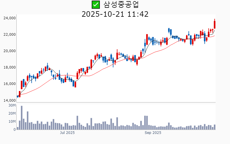 2025년 10월 21일 기준 장중 잠정수급 외국인 순매수 상위 20종목의 정보를 한눈에 볼 수 있도록 정리했습니다. 더욱 자세한 정보는 AWAKE 신고가 모니터링 채널(https://t.me/awake_realtimeCheck)에서 확인하세요. 🔥 🚀 훨씬 깊이있는 장중 수급 정보(매수/매도 전환, 신규유입, 업종별 강도 등)을 확인하고 싶다면, ⭐️⭐️신고가 플러스 소개(아래 링크를 클릭하세요)⭐️⭐️ https://fishy-trampoline-79b.notion.site/1-1bd75164780f8043a665e84ea5e17548 ![]() ✅ 파미셀(시총 : 8,312억) +6.3% - 외국인 매수 - 연기금, 투신 매수 --------------------------------------------------- ![]() ✅ 삼성중공업(시총 : 20.8조) +4.5% - 외국인 매수 - 투신, 보험 매수 --------------------------------------------------- ![]() ✅ 현대건설(시총 : 6.6조) +4.1% - 외국인 매수 - 보험, 투신 매수 --------------------------------------------------- ![]() ✅ HD현대인프라코어(시총 : 3.0조) +5.7% - 외국인 매수 - 은행, 보험 매수 --------------------------------------------------- ![]() ✅ 동일스틸럭스(시총 : 693억) +8.4% - 외국인 매수 --------------------------------------------------- ![]() ✅ 에스티팜(시총 : 2.0조) -9.8% - 외국인 매수 - 투신 매도 --------------------------------------------------- ![]() ✅ 한전기술(시총 : 4.1조) +12.5% - 외국인 매수 - 연기금, 투신 매수 --------------------------------------------------- ![]() ✅ 삼성전자(시총 : 586.0조) +0.9% - 외국인 매수 - 보험, 연기금 매수 --------------------------------------------------- ![]() ✅ 현대차(시총 : 54.0조) +6.2% - 외국인 매수 - 보험, 연기금 매수 --------------------------------------------------- ![]() ✅ 퍼스텍(시총 : 2,343억) +4.5% - 외국인 매수 --------------------------------------------------- ![]() ✅ HD현대미포(시총 : 8.9조) +10.9% - 외국인 매수 - 투신 매수 --------------------------------------------------- ![]() ✅ 카카오페이(시총 : 7.2조) +4.1% - 외국인 매수 - 연기금, 투신 매수 --------------------------------------------------- ![]() ✅ 넥스틴(시총 : 6,307억) +7.7% - 외국인 매수 - 연기금, 투신 매수 --------------------------------------------------- ![]() ✅ HD현대중공업(시총 : 49.8조) +9.6% - 외국인 매수 - 투신, 연기금 매수 --------------------------------------------------- ![]() ✅ 현대차우(시총 : 4.4조) +4.8% - 외국인 매수 - 투신 매수 --------------------------------------------------- ![]() ✅ PS일렉트로닉스(시총 : 2,763억) +8.4% - 외국인 매수 --------------------------------------------------- ![]() ✅ HD현대마린엔진(시총 : 3.1조) +4.6% - 외국인 매수 - 투신 매수 --------------------------------------------------- ![]() ✅ TCC스틸(시총 : 5,151억) +4.2% - 외국인 매수 --------------------------------------------------- ![]() ✅ 한전산업(시총 : 4,189억) +5.2% - 외국인 매수 - 연기금, 투신 매수 --------------------------------------------------- ![]() ✅ 한스바이오메드(시총 : 3,530억) +12.0% - 외국인 매수 --------------------------------------------------- |