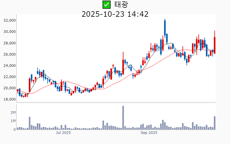 2025년 10월 23일 기준 장중 잠정수급 외국인 순매수 상위 20종목의 정보를 한눈에 볼 수 있도록 정리했습니다. 더욱 자세한 정보는 AWAKE 신고가 모니터링 채널(https://t.me/awake_realtimeCheck)에서 확인하세요. 🔥 🚀 훨씬 깊이있는 장중 수급 정보(매수/매도 전환, 신규유입, 업종별 강도 등)을 확인하고 싶다면, ⭐️⭐️신고가 플러스 소개(아래 링크를 클릭하세요)⭐️⭐️ https://fishy-trampoline-79b.notion.site/1-1bd75164780f8043a665e84ea5e17548 ![]() ✅ 파미셀(시총 : 8,546억) +6.3% - 외국인 매수 - 투신 매수 --------------------------------------------------- ![]() ✅ 재영솔루텍(시총 : 1,164억) +25.4% - 외국인 매수 --------------------------------------------------- ![]() ✅ JYP Ent.(시총 : 2.7조) +2.8% - 외국인 매수 - 연기금, 투신 매수 --------------------------------------------------- ![]() ✅ 범한퓨얼셀(시총 : 2,676억) +6.8% - 외국인 매수 --------------------------------------------------- ![]() ✅ 태광(시총 : 7,672억) +9.2% - 외국인 매수 - 보험, 투신 매수 --------------------------------------------------- ![]() ✅ 세명전기(시총 : 1,720억) +14.2% - 외국인 매수 --------------------------------------------------- ![]() ✅ 티엘비(시총 : 6,922억) +7.5% - 외국인 매수 - 보험, 투신 매수 --------------------------------------------------- ![]() ✅ 동일스틸럭스(시총 : 880억) +29.9% - 외국인 매수 --------------------------------------------------- ![]() ✅ 성광벤드(시총 : 8,538억) +1.9% - 외국인 매수 - 연기금, 투신 매수 --------------------------------------------------- ![]() ✅ 한중엔시에스(시총 : 4,165억) -7.9% - 외국인 매수 - 투신, 보험 매도 --------------------------------------------------- ![]() ✅ 실리콘투(시총 : 2.8조) +5.3% - 외국인 매수 - 연기금, 투신 매수 --------------------------------------------------- ![]() ✅ 에이아이코리아(시총 : 990억) +5.4% - 외국인 매수 - 투신 매수 --------------------------------------------------- ![]() ✅ 삼성E&A(시총 : 6.0조) +7.2% - 외국인 매수 - 보험, 연기금 매수 --------------------------------------------------- ![]() ✅ 지투지바이오(시총 : 9,723억) +5.2% - 외국인 매수 - 투신 매도 --------------------------------------------------- ![]() ✅ LS ELECTRIC(시총 : 10.9조) +13.5% - 외국인 매수 - 연기금, 투신 매수 --------------------------------------------------- ![]() ✅ 코리아써키트(시총 : 4,568억) +3.3% - 외국인 매수 --------------------------------------------------- ![]() ✅ 심텍(시총 : 1.9조) +7.7% - 외국인 매수 - 투신, 은행 매도 --------------------------------------------------- ![]() ✅ 휴스틸(시총 : 2,531억) +5.0% - 외국인 매수 - 보험, 연기금 매수 --------------------------------------------------- ![]() ✅ 팬스타엔터프라이즈(시총 : 1,052억) +10.2% - 외국인 매수 --------------------------------------------------- ![]() ✅ 켐트로닉스(시총 : 5,202억) +3.3% - 외국인 매수 --------------------------------------------------- |