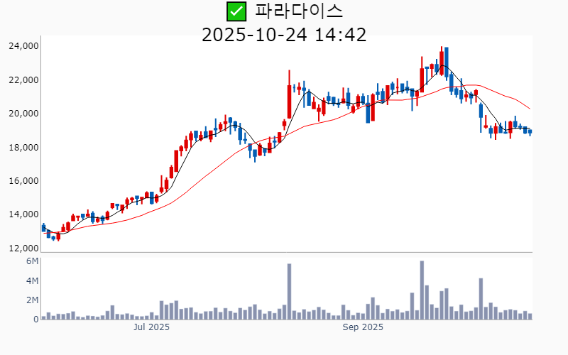 ✅ 파라다이스(시총 : 1.7조) +0.1%