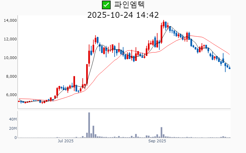 ✅ 파인엠텍(시총 : 3,320억) -2.1%