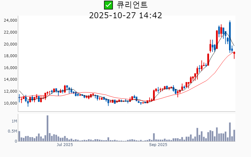 ✅ 큐리언트(시총 : 6,479억) -1.6%