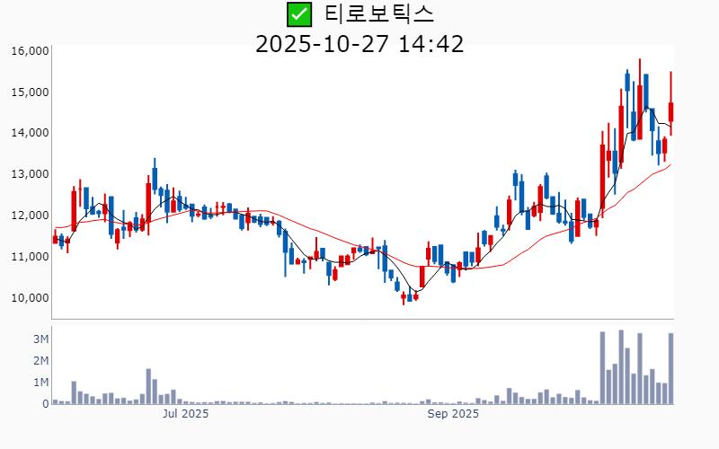 ✅ 티로보틱스(시총 : 2,925억) +6.4%