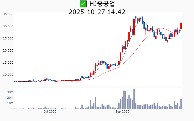 ✅ HJ중공업(시총 : 2.6조) +10.8%