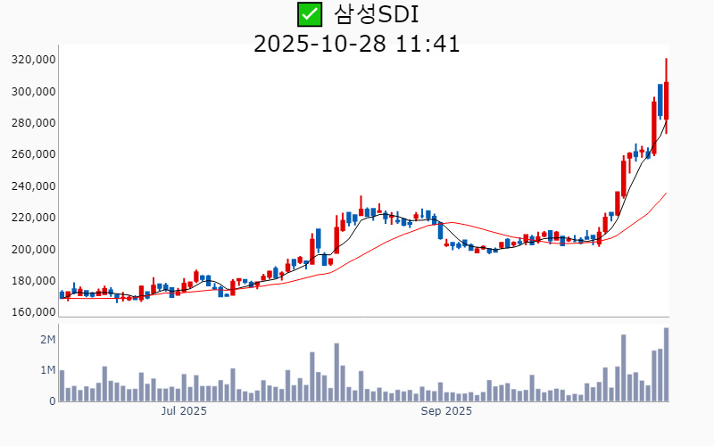 ✅ 삼성SDI(시총 : 24.7조) +7.5%