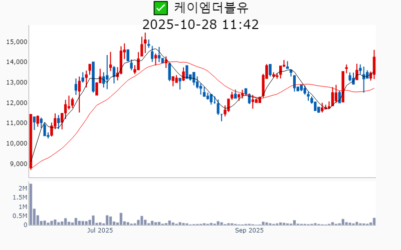 ✅ 케이엠더블유(시총 : 5,802억) +5.9%