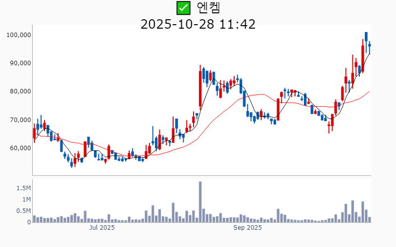 ✅ 엔켐(시총 : 2.1조) -1.8%