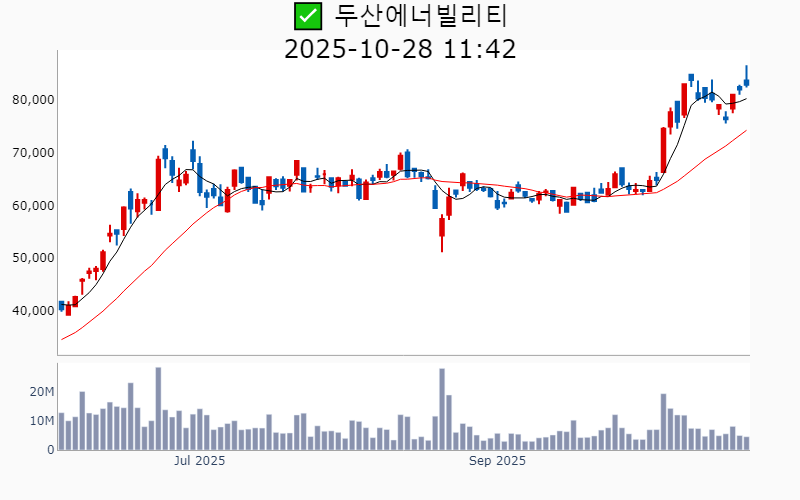 ✅ 두산에너빌리티(시총 : 53.1조) +1.2%