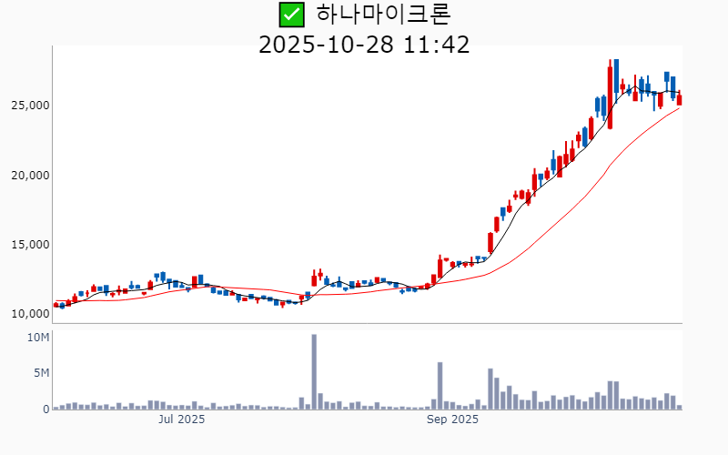 ✅ 하나마이크론(시총 : 1.7조) +0.4%