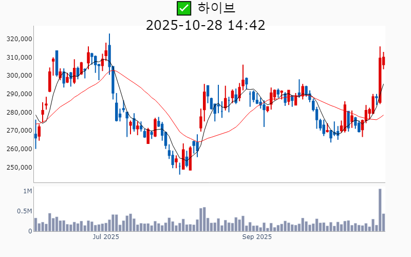 ✅ 하이브(시총 : 12.9조) +0.2%