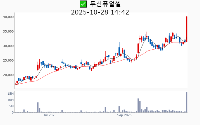 ✅ 두산퓨얼셀(시총 : 2.6조) +27.7%