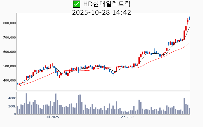 ✅ HD현대일렉트릭(시총 : 29.8조) +0.7%