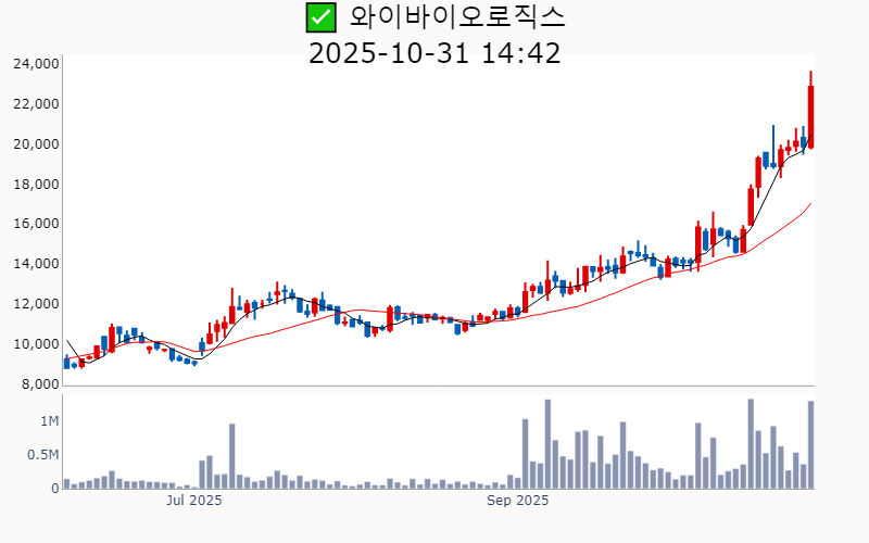 2025년 10월 31일 기준 장중 잠정수급 외국인 순매수 상위 20종목의 정보를 한눈에 볼 수 있도록 정리했습니다. 더욱 자세한 정보는 AWAKE 신고가 모니터링 채널(https://t.me/awake_realtimeCheck)에서 확인하세요. 🔥 🚀 훨씬 깊이있는 장중 수급 정보(매수/매도 전환, 신규유입, 업종별 강도 등)을 확인하고 싶다면, ⭐️⭐️신고가 플러스 소개(아래 링크를 클릭하세요)⭐️⭐️ https://fishy-trampoline-79b.notion.site/1-1bd75164780f8043a665e84ea5e17548 ![]() ✅ 대한전선(시총 : 4.5조) +14.7% - 외국인 매수 - 투신, 연기금 매수 --------------------------------------------------- ![]() ✅ 뉴로메카(시총 : 3,575억) +18.6% - 외국인 매수 - 보험 매도 --------------------------------------------------- ![]() ✅ 레인보우로보틱스(시총 : 8.4조) +23.7% - 외국인 매수 - 투신, 보험 매도 --------------------------------------------------- ![]() ✅ NAVER(시총 : 42.1조) +5.1% - 외국인 매수 - 은행, 연기금 매수 --------------------------------------------------- ![]() ✅ MDS테크(시총 : 1,416억) +9.9% - 외국인 매수 --------------------------------------------------- ![]() ✅ 현대차(시총 : 59.1조) +9.0% - 외국인 매수 - 보험, 투신 매수 --------------------------------------------------- ![]() ✅ 제닉스로보틱스(시총 : 2,435억) +17.1% - 외국인 매수 --------------------------------------------------- ![]() ✅ 한올바이오파마(시총 : 2.2조) +25.0% - 외국인 매수 - 보험, 연기금 매수 --------------------------------------------------- ![]() ✅ 오르비텍(시총 : 1,178억) +9.3% - 외국인 매수 --------------------------------------------------- ![]() ✅ 두산로보틱스(시총 : 5.0조) +9.4% - 외국인 매수 --------------------------------------------------- ![]() ✅ 하이브(시총 : 14.3조) +4.8% - 외국인 매수 - 보험, 연기금 매수 --------------------------------------------------- ![]() ✅ 에프에스티(시총 : 8,080억) +2.8% - 외국인 매수 --------------------------------------------------- ![]() ✅ LS머트리얼즈(시총 : 9,065억) +11.3% - 외국인 매수 - 투신 매도 --------------------------------------------------- ![]() ✅ LS(시총 : 6.6조) -4.1% - 외국인 매수 - 투신, 연기금 매도 --------------------------------------------------- ![]() ✅ 솔트룩스(시총 : 4,017억) +6.3% - 외국인 매수 --------------------------------------------------- ![]() ✅ 루닛(시총 : 1.3조) +6.6% - 외국인 매수 --------------------------------------------------- ![]() ✅ 에스오에스랩(시총 : 2,063억) +12.8% - 외국인 매수 - 투신 매도 --------------------------------------------------- ![]() ✅ 와이바이오로직스(시총 : 3,423억) +15.2% - 외국인 매수 - 투신 매수 --------------------------------------------------- ![]() ✅ 달바글로벌(시총 : 1.8조) +0.1% - 외국인 매수 - 투신 매수 --------------------------------------------------- ![]() ✅ LG씨엔에스(시총 : 6.4조) +5.6% - 외국인 매수 - 투신 매수 --------------------------------------------------- |