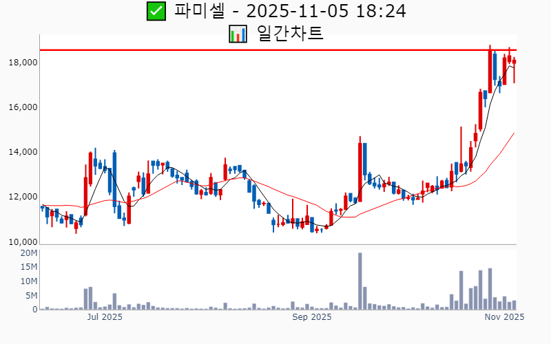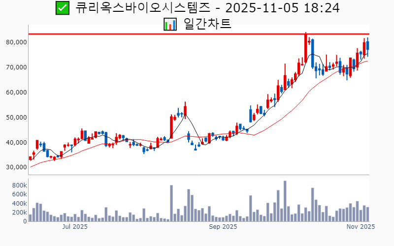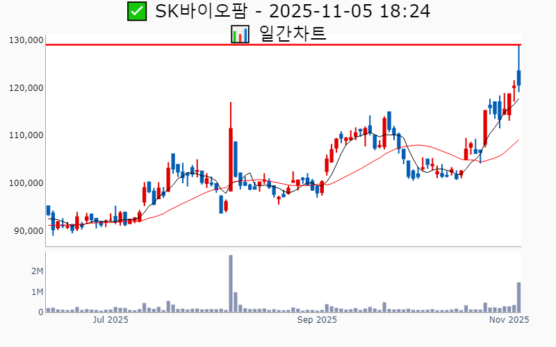 2025년 11월 5일 기준 52주/역사적 신고가에 근접한 종목 리스트를 한눈에 볼 수 있도록 정리했습니다. 더욱 자세한 정보는 AWAKE 신고가 모니터링 채널(https://t.me/awake_realtimeCheck)에서 확인하세요. 🔥 🚀 시장에서 강하고 수급이 집중되는 종목을 가장 빠르게 확인하고 싶다면, ⭐️⭐️신고가 플러스 소개(아래 링크를 클릭하세요)⭐️⭐️ https://fishy-trampoline-79b.notion.site/1-1bd75164780f8043a665e84ea5e17548 ![]() ✅ KB금융 🔍 역사적 최고가 0.3% 남음 거래대금 : 1,607억 시가총액 : 46.4조 현재주가 : 121,600원 - 역사적 최고가 : 124,600원(+0.3%) --------------------------------------------------- ![]() ✅ NAVER 🔍 52주 최고가 4.3% 남음 거래대금 : 9,320억 시가총액 : 43.7조 현재주가 : 278,500원 - 52주 최고가 : 290,500원(+4.3%) - 사상 최고가 : 460,000원(+459.6%) --------------------------------------------------- ![]() ✅ 한국전력 🔍 52주 최고가 4.6% 남음 거래대금 : 2,046억 시가총액 : 27.9조 현재주가 : 43,500원 - 52주 최고가 : 45,500원(+4.6%) - 사상 최고가 : 63,100원(-23.2%) --------------------------------------------------- ![]() ✅ SK바이오팜 🔍 52주 최고가 7.0% 남음 거래대금 : 1,801억 시가총액 : 9.4조 현재주가 : 120,600원 - 52주 최고가 : 129,000원(+7.0%) - 사상 최고가 : 219,000원(+166.4%) --------------------------------------------------- ![]() ✅ LG유플러스 🔍 52주 최고가 3.5% 남음 거래대금 : 321억 시가총액 : 6.4조 현재주가 : 14,970원 - 52주 최고가 : 15,500원(+3.5%) - 사상 최고가 : 18,400원(-77.6%) --------------------------------------------------- ![]() ✅ 엘앤에프 🔍 52주 최고가 17.0% 남음 거래대금 : 1,817억 시가총액 : 4.6조 현재주가 : 125,600원 - 52주 최고가 : 147,000원(+17.0%) - 사상 최고가 : 340,000원(+313.6%) --------------------------------------------------- ![]() ✅ 한온시스템 🔍 52주 최고가 10.0% 남음 거래대금 : 353억 시가총액 : 3.1조 현재주가 : 4,500원 - 52주 최고가 : 4,950원(+10.0%) - 사상 최고가 : 18,950원(-76.9%) --------------------------------------------------- ![]() ✅ 셀트리온제약 🔍 52주 최고가 3.1% 남음 거래대금 : 236억 시가총액 : 2.8조 현재주가 : 64,200원 - 52주 최고가 : 67,200원(+3.1%) - 사상 최고가 : 218,619원(+166.0%) --------------------------------------------------- ![]() ✅ 한올바이오파마 🔍 52주 최고가 4.4% 남음 거래대금 : 1,271억 시가총액 : 2.3조 현재주가 : 44,400원 - 52주 최고가 : 46,350원(+4.4%) - 사상 최고가 : 49,800원(-39.4%) --------------------------------------------------- ![]() ✅ 에스티팜 🔍 52주 최고가 7.8% 남음 거래대금 : 213억 시가총액 : 2.1조 현재주가 : 99,700원 - 52주 최고가 : 107,500원(+7.8%) - 사상 최고가 : 147,800원(+79.8%) --------------------------------------------------- ![]() ✅ 메지온 🔍 52주 최고가 9.3% 남음 거래대금 : 116억 시가총액 : 2.0조 현재주가 : 66,700원 - 52주 최고가 : 72,900원(+9.3%) - 사상 최고가 : 83,314원(+1.4%) --------------------------------------------------- ![]() ✅ 다우기술 🔍 역사적 최고가 4.1% 남음 거래대금 : 48억 시가총액 : 1.8조 현재주가 : 40,450원 - 역사적 최고가 : 42,100원(+4.1%) --------------------------------------------------- ![]() ✅ 오스코텍 🔍 52주 최고가 2.4% 남음 거래대금 : 271억 시가총액 : 1.8조 현재주가 : 46,700원 - 52주 최고가 : 48,550원(+2.4%) - 사상 최고가 : 67,676원(-17.7%) --------------------------------------------------- ![]() ✅ 큐리옥스바이오시스템즈 🔍 역사적 최고가 7.9% 남음 거래대금 : 245억 시가총액 : 1.3조 현재주가 : 77,200원 - 역사적 최고가 : 83,300원(+7.9%) --------------------------------------------------- ![]() ✅ 에스앤에스텍 🔍 역사적 최고가 10.0% 남음 거래대금 : 223억 시가총액 : 1.2조 현재주가 : 57,000원 - 역사적 최고가 : 62,700원(+10.0%) --------------------------------------------------- ![]() ✅ SK케미칼 🔍 52주 최고가 13.8% 남음 거래대금 : 58억 시가총액 : 1.2조 현재주가 : 67,500원 - 52주 최고가 : 76,800원(+13.8%) - 사상 최고가 : 308,580원(+275.4%) --------------------------------------------------- ![]() ✅ 파미셀 🔍 52주 최고가 2.5% 남음 거래대금 : 579억 시가총액 : 1.1조 현재주가 : 18,100원 - 52주 최고가 : 18,560원(+2.5%) - 사상 최고가 : 25,600원(-68.9%) --------------------------------------------------- ![]() ✅ 후성 🔍 52주 최고가 6.7% 남음 거래대금 : 487억 시가총액 : 1.0조 현재주가 : 9,360원 - 52주 최고가 : 9,990원(+6.7%) - 사상 최고가 : 26,027원(-68.3%) --------------------------------------------------- ![]() ✅ 영풍 🔍 52주 최고가 2.0% 남음 거래대금 : 32억 시가총액 : 9,344억 현재주가 : 48,900원 - 52주 최고가 : 49,900원(+2.0%) - 사상 최고가 : 154,297원(+87.7%) --------------------------------------------------- ![]() ✅ 큐리언트 🔍 52주 최고가 13.4% 남음 거래대금 : 64억 시가총액 : 7,472억 현재주가 : 20,850원 - 52주 최고가 : 23,650원(+13.4%) - 사상 최고가 : 25,145원(-69.4%) --------------------------------------------------- ![]() ✅ 케이엠더블유 🔍 52주 최고가 5.9% 남음 거래대금 : 65억 시가총액 : 7,195억 현재주가 : 17,660원 - 52주 최고가 : 18,700원(+5.9%) - 사상 최고가 : 88,500원(+7.7%) --------------------------------------------------- ![]() ✅ 넥스틴 🔍 52주 최고가 1.4% 남음 거래대금 : 108억 시가총액 : 6,915억 현재주가 : 66,000원 - 52주 최고가 : 66,900원(+1.4%) - 사상 최고가 : 90,200원(+9.7%) -------------------------