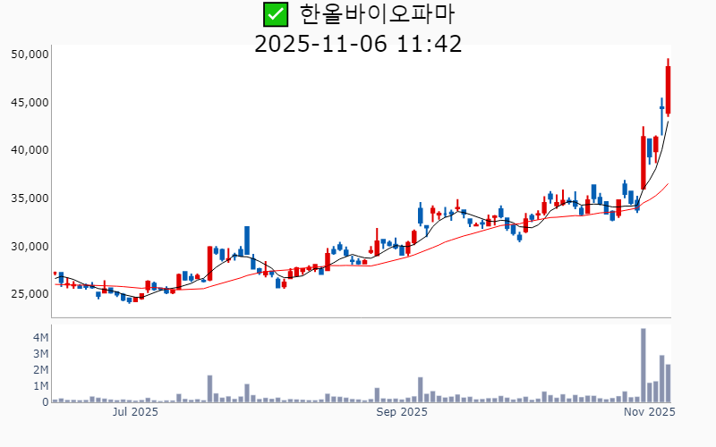 2025년 11월 6일 기준 장중 잠정수급 외국인 순매수 상위 20종목의 정보를 한눈에 볼 수 있도록 정리했습니다. 더욱 자세한 정보는 AWAKE 신고가 모니터링 채널(https://t.me/awake_realtimeCheck)에서 확인하세요. 🔥 🚀 훨씬 깊이있는 장중 수급 정보(매수/매도 전환, 신규유입, 업종별 강도 등)을 확인하고 싶다면, ⭐️⭐️신고가 플러스 소개(아래 링크를 클릭하세요)⭐️⭐️ https://fishy-trampoline-79b.notion.site/1-1bd75164780f8043a665e84ea5e17548 ![]() ✅ 달바글로벌(시총 : 1.7조) -16.0% - 외국인 매수 - 투신, 보험 매도 --------------------------------------------------- ![]() ✅ 고영(시총 : 1.4조) +21.7% - 외국인 매수 - 보험, 투신 매수 --------------------------------------------------- ![]() ✅ 로보티즈(시총 : 3.0조) -7.4% - 외국인 매수 - 투신 매도 --------------------------------------------------- ![]() ✅ 티엘비(시총 : 6,273억) -2.9% - 외국인 매수 - 투신 매도 --------------------------------------------------- ![]() ✅ HB테크놀러지(시총 : 1,998억) +6.2% - 외국인 매수 --------------------------------------------------- ![]() ✅ 푸른기술(시총 : 710억) +4.3% - 외국인 매수 --------------------------------------------------- ![]() ✅ 한국첨단소재(시총 : 872억) +6.0% - 외국인 매수 --------------------------------------------------- ![]() ✅ 한국전력(시총 : 29.8조) +6.5% - 외국인 매수 - 은행, 투신 매수 --------------------------------------------------- ![]() ✅ HK이노엔(시총 : 1.5조) +6.7% - 외국인 매수 - 투신 매도 --------------------------------------------------- ![]() ✅ 한올바이오파마(시총 : 2.5조) +9.6% - 외국인 매수 - 연기금, 투신 매수 --------------------------------------------------- ![]() ✅ 루닛(시총 : 1.3조) +8.8% - 외국인 매수 - 연기금 매수 --------------------------------------------------- ![]() ✅ KB금융(시총 : 48.6조) +4.7% - 외국인 매수 - 보험, 투신 매수 --------------------------------------------------- ![]() ✅ 덕산하이메탈(시총 : 3,103억) +7.4% - 외국인 매수 --------------------------------------------------- ![]() ✅ 코리아써키트(시총 : 5,055억) -5.7% - 외국인 매수 --------------------------------------------------- ![]() ✅ 툴젠(시총 : 6,114억) +7.1% - 외국인 매수 --------------------------------------------------- ![]() ✅ 엑시콘(시총 : 2,002억) +4.8% - 외국인 매수 --------------------------------------------------- ![]() ✅ 롯데관광개발(시총 : 1.4조) +5.0% - 외국인 매수 - 연기금, 보험 매수 --------------------------------------------------- ![]() ✅ 씨앤지하이테크(시총 : 1,540억) +2.5% - 외국인 매수 --------------------------------------------------- ![]() ✅ ISC(시총 : 1.7조) +7.4% - 외국인 매수 - 연기금, 투신 매수 --------------------------------------------------- ![]() ✅ 두산(시총 : 16.3조) +5.9% - 외국인 매수 - 투신, 연기금 매수 --------------------------------------------------- |