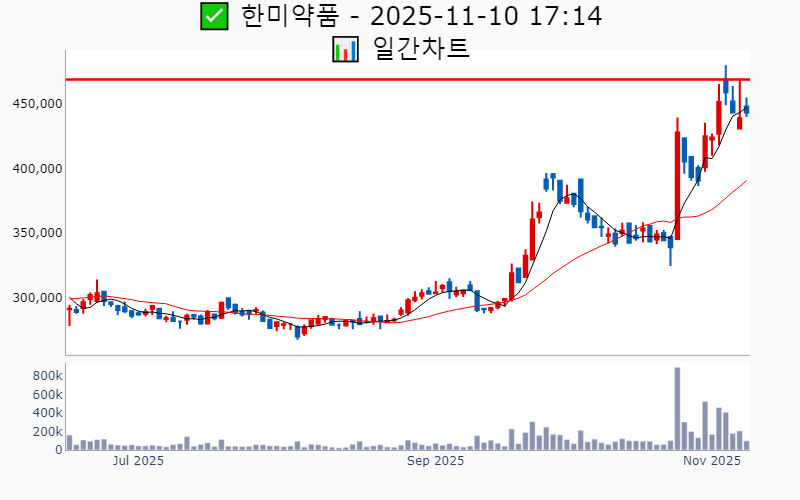 2025년 11월 10일 기준 52주/역사적 신고가에 근접한 종목 리스트를 한눈에 볼 수 있도록 정리했습니다. 더욱 자세한 정보는 AWAKE 신고가 모니터링 채널(https://t.me/awake_realtimeCheck)에서 확인하세요. 🔥 🚀 시장에서 강하고 수급이 집중되는 종목을 가장 빠르게 확인하고 싶다면, ⭐️⭐️신고가 플러스 소개(아래 링크를 클릭하세요)⭐️⭐️ https://fishy-trampoline-79b.notion.site/1-1bd75164780f8043a665e84ea5e17548 ![]() ✅ 삼성전자 🔍 역사적 최고가 11.1% 남음 거래대금 : 2.3조 시가총액 : 595.5조 현재주가 : 100,600원 - 역사적 최고가 : 111,800원(+11.1%) --------------------------------------------------- ![]() ✅ SK하이닉스 🔍 역사적 최고가 2.3% 남음 거래대금 : 2.9조 시가총액 : 441.2조 현재주가 : 606,000원 - 역사적 최고가 : 620,000원(+2.3%) --------------------------------------------------- ![]() ✅ 현대차 🔍 52주 최고가 10.0% 남음 거래대금 : 1,875억 시가총액 : 55.4조 현재주가 : 270,500원 - 52주 최고가 : 297,500원(+10.0%) - 사상 최고가 : 299,500원(+264.4%) --------------------------------------------------- ![]() ✅ 기아 🔍 52주 최고가 10.9% 남음 거래대금 : 794억 시가총액 : 44.8조 현재주가 : 113,700원 - 52주 최고가 : 126,100원(+10.9%) - 사상 최고가 : 132,300원(+60.9%) --------------------------------------------------- ![]() ✅ 한화오션 🔍 역사적 최고가 15.4% 남음 거래대금 : 2,373억 시가총액 : 39.7조 현재주가 : 129,600원 - 역사적 최고가 : 149,600원(+15.4%) --------------------------------------------------- ![]() ✅ 삼성물산 🔍 역사적 최고가 2.9% 남음 거래대금 : 893억 시가총액 : 38.2조 현재주가 : 224,500원 - 역사적 최고가 : 231,000원(+2.9%) --------------------------------------------------- ![]() ✅ LG화학 🔍 52주 최고가 5.0% 남음 거래대금 : 1,139억 시가총액 : 28.0조 현재주가 : 397,000원 - 52주 최고가 : 417,000원(+5.0%) - 사상 최고가 : 1,028,000원(+1150.6%) --------------------------------------------------- ![]() ✅ 효성중공업 🔍 역사적 최고가 9.1% 남음 거래대금 : 1,150억 시가총액 : 21.0조 현재주가 : 2,254,000원 - 역사적 최고가 : 2,458,000원(+9.1%) --------------------------------------------------- ![]() ✅ 우리금융지주 🔍 역사적 최고가 3.1% 남음 거래대금 : 883억 시가총액 : 19.2조 현재주가 : 26,200원 - 역사적 최고가 : 27,000원(+3.1%) --------------------------------------------------- ![]() ✅ HD현대 🔍 역사적 최고가 4.5% 남음 거래대금 : 544억 시가총액 : 17.5조 현재주가 : 221,000원 - 역사적 최고가 : 231,000원(+4.5%) --------------------------------------------------- ![]() ✅ LG전자 🔍 52주 최고가 6.2% 남음 거래대금 : 620억 시가총액 : 14.6조 현재주가 : 89,600원 - 52주 최고가 : 95,200원(+6.2%) - 사상 최고가 : 185,000원(+125.1%) --------------------------------------------------- ![]() ✅ LS ELECTRIC 🔍 역사적 최고가 5.2% 남음 거래대금 : 1,648억 시가총액 : 14.3조 현재주가 : 478,000원 - 역사적 최고가 : 503,000원(+5.2%) --------------------------------------------------- ![]() ✅ 한국금융지주 🔍 역사적 최고가 6.4% 남음 거래대금 : 598억 시가총액 : 9.6조 현재주가 : 171,600원 - 역사적 최고가 : 182,600원(+6.4%) --------------------------------------------------- ![]() ✅ SK바이오팜 🔍 52주 최고가 7.9% 남음 거래대금 : 235억 시가총액 : 9.4조 현재주가 : 119,500원 - 52주 최고가 : 129,000원(+7.9%) - 사상 최고가 : 219,000원(+166.4%) --------------------------------------------------- ![]() ✅ 삼성증권 🔍 역사적 최고가 2.8% 남음 거래대금 : 433억 시가총액 : 7.0조 현재주가 : 78,400원 - 역사적 최고가 : 80,600원(+2.8%) --------------------------------------------------- ![]() ✅ LS 🔍 역사적 최고가 5.8% 남음 거래대금 : 446억 시가총액 : 6.8조 현재주가 : 214,500원 - 역사적 최고가 : 227,000원(+5.8%) --------------------------------------------------- ![]() ✅ 한미약품 🔍 52주 최고가 5.7% 남음 거래대금 : 442억 시가총액 : 5.7조 현재주가 : 443,500원 - 52주 최고가 : 469,000원(+5.7%) - 사상 최고가 : 696,469원(+747.3%) --------------------------------------------------- ![]() ✅ 엔씨소프트 🔍 52주 최고가 8.6% 남음 거래대금 : 296억 시가총액 : 4.9조 현재주가 : 227,000원 - 52주 최고가 : 246,500원(+8.6%) - 사상 최고가 : 1,038,000원(+1162.8%) --------------------------------------------------- ![]() ✅ 현대차우 🔍 역사적 최고가 10.4% 남음 거래대금 : 277억 시가총액 : 4.6조 현재주가 : 198,400원 - 역사적 최고가 : 219,000원(+10.4%) --------------------------------------------------- ![]() ✅ 포스코DX 🔍 52주 최고가 19.8% 남음 거래대금 : 155억 시가총액 : 4.0조 현재주가 : 26,050원 - 52주 최고가 : 31,200원(+19.8%) - 사상 최고가 : 75,600원(-8.0%) --------------------------------------------------- ![]() ✅ KCC 🔍 52주 최고가 5.8% 남음 거래대금 : 156억 시가총액 : 3.8조 현재주가 : 428,000원 - 52주 최고가 : 453,000원(+5.8%) - 사상 최고가 : 520,620원(+533.4%) --------------------------------------------------- ![]() ✅ 이오테크닉스 🔍 역사적 최고가 5.0% 남음 거래대금 : 395억 시가총액 : 3.4조 현재주가 : 279,500원 - 역사적 최고가 : 293,500원(+5.0%) --------------------------------------------------- ![]() ✅ 원익IPS 🔍 역사적 최고가 2.6% 남음 거래대금 : 583억 시가총액 : 3.4조 현재주가 : 69,900원 - 역사적 최고가 : 71,700원(+2.6%) --------------------------------------------------- ![]() ✅ 롯