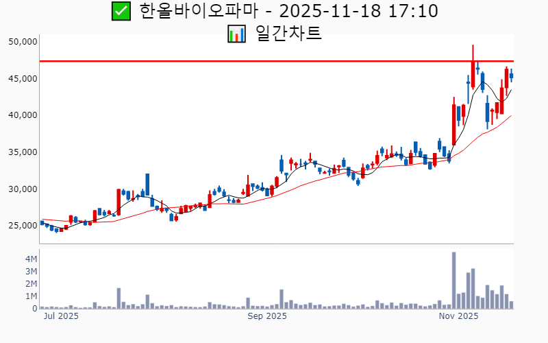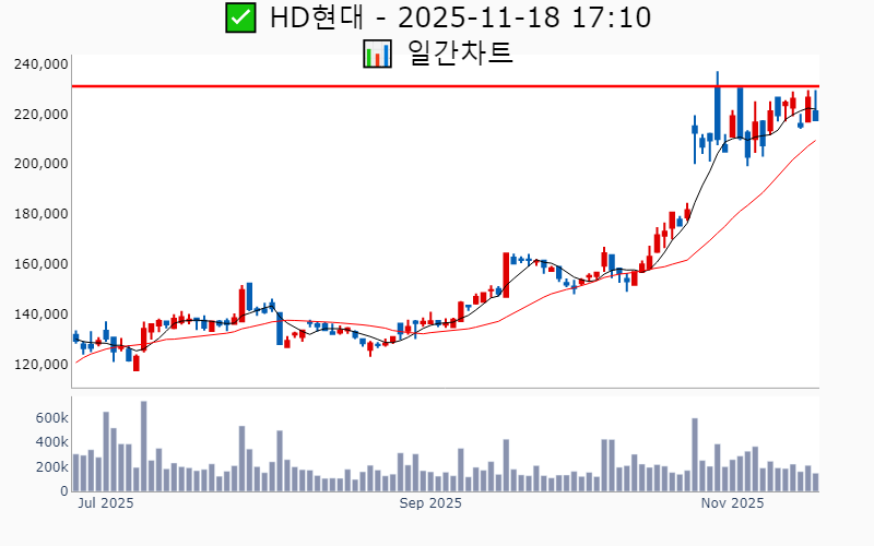 2025년 11월 18일 기준 52주/역사적 신고가에 근접한 종목 리스트를 한눈에 볼 수 있도록 정리했습니다. 더욱 자세한 정보는 AWAKE 신고가 모니터링 채널(https://t.me/awake_realtimeCheck)에서 확인하세요. 🔥 🚀 시장에서 강하고 수급이 집중되는 종목을 가장 빠르게 확인하고 싶다면, ⭐️⭐️신고가 플러스 소개(아래 링크를 클릭하세요)⭐️⭐️ https://fishy-trampoline-79b.notion.site/1-1bd75164780f8043a665e84ea5e17548 ![]() ✅ HD현대중공업 🔍 역사적 최고가 4.3% 남음 거래대금 : 2,247억 시가총액 : 53.5조 현재주가 : 603,000원 - 역사적 최고가 : 629,000원(+4.3%) --------------------------------------------------- ![]() ✅ 한국전력 🔍 52주 최고가 1.0% 남음 거래대금 : 4,947억 시가총액 : 31.8조 현재주가 : 49,500원 - 52주 최고가 : 50,000원(+1.0%) - 사상 최고가 : 63,100원(-23.2%) --------------------------------------------------- ![]() ✅ SK 🔍 52주 최고가 6.1% 남음 거래대금 : 486억 시가총액 : 19.1조 현재주가 : 263,500원 - 52주 최고가 : 279,500원(+6.1%) - 사상 최고가 : 358,500원(+336.1%) --------------------------------------------------- ![]() ✅ HD현대 🔍 역사적 최고가 6.2% 남음 거래대금 : 328억 시가총액 : 17.2조 현재주가 : 217,500원 - 역사적 최고가 : 231,000원(+6.2%) --------------------------------------------------- ![]() ✅ LS ELECTRIC 🔍 역사적 최고가 9.6% 남음 거래대금 : 864억 시가총액 : 13.8조 현재주가 : 459,000원 - 역사적 최고가 : 503,000원(+9.6%) --------------------------------------------------- ![]() ✅ HD현대미포 🔍 역사적 최고가 3.8% 남음 거래대금 : 1,116억 시가총액 : 9.6조 현재주가 : 240,000원 - 역사적 최고가 : 249,000원(+3.8%) --------------------------------------------------- ![]() ✅ GS 🔍 52주 최고가 2.9% 남음 거래대금 : 184억 시가총액 : 5.5조 현재주가 : 58,900원 - 52주 최고가 : 60,600원(+2.9%) - 사상 최고가 : 76,700원(-6.7%) --------------------------------------------------- ![]() ✅ 코오롱티슈진 🔍 52주 최고가 0.7% 남음 거래대금 : 468억 시가총액 : 4.7조 현재주가 : 56,800원 - 52주 최고가 : 57,200원(+0.7%) - 사상 최고가 : 139,260원(+69.4%) --------------------------------------------------- ![]() ✅ 더존비즈온 🔍 52주 최고가 2.8% 남음 거래대금 : 123억 시가총액 : 2.8조 현재주가 : 92,500원 - 52주 최고가 : 95,100원(+2.8%) - 사상 최고가 : 127,500원(+55.1%) --------------------------------------------------- ![]() ✅ 대덕전자 🔍 역사적 최고가 3.0% 남음 거래대금 : 622억 시가총액 : 2.5조 현재주가 : 50,800원 - 역사적 최고가 : 52,300원(+3.0%) --------------------------------------------------- ![]() ✅ 한올바이오파마 🔍 52주 최고가 4.9% 남음 거래대금 : 276억 시가총액 : 2.4조 현재주가 : 45,150원 - 52주 최고가 : 47,350원(+4.9%) - 사상 최고가 : 49,800원(-39.4%) --------------------------------------------------- ![]() ✅ 두산우 🔍 역사적 최고가 6.5% 남음 거래대금 : 221억 시가총액 : 2.3조 현재주가 : 586,000원 - 역사적 최고가 : 624,000원(+6.5%) --------------------------------------------------- ![]() ✅ 에스티팜 🔍 52주 최고가 5.7% 남음 거래대금 : 139억 시가총액 : 2.1조 현재주가 : 101,700원 - 52주 최고가 : 107,500원(+5.7%) - 사상 최고가 : 147,800원(+79.8%) --------------------------------------------------- ![]() ✅ 하나마이크론 🔍 역사적 최고가 18.9% 남음 거래대금 : 805억 시가총액 : 1.7조 현재주가 : 25,900원 - 역사적 최고가 : 30,800원(+18.9%) --------------------------------------------------- ![]() ✅ 파두 🔍 52주 최고가 10.1% 남음 거래대금 : 115억 시가총액 : 1.2조 현재주가 : 24,700원 - 52주 최고가 : 27,200원(+10.1%) - 사상 최고가 : 45,000원(-45.3%) --------------------------------------------------- ![]() ✅ 코오롱인더 🔍 52주 최고가 7.3% 남음 거래대금 : 131억 시가총액 : 1.2조 현재주가 : 43,950원 - 52주 최고가 : 47,150원(+7.3%) - 사상 최고가 : 113,000원(+37.5%) --------------------------------------------------- ![]() ✅ 태성 🔍 52주 최고가 6.7% 남음 거래대금 : 223억 시가총액 : 1.2조 현재주가 : 38,600원 - 52주 최고가 : 41,200원(+6.7%) - 사상 최고가 : 42,443원(-48.4%) --------------------------------------------------- ![]() ✅ 해성디에스 🔍 52주 최고가 6.2% 남음 거래대금 : 120억 시가총액 : 9,078억 현재주가 : 53,400원 - 52주 최고가 : 56,700원(+6.2%) - 사상 최고가 : 78,500원(-4.5%) --------------------------------------------------- ![]() ✅ 인투셀 🔍 119일 최고가 9.3% 남음 거래대금 : 339억 시가총액 : 8,612억 현재주가 : 58,000원 - 119일 최고가 : 63,400원(+9.3%) --------------------------------------------------- ![]() ✅ 디아이 🔍 52주 최고가 1.3% 남음 거래대금 : 536억 시가총액 : 7,372억 현재주가 : 26,050원 - 52주 최고가 : 26,400원(+1.3%) - 사상 최고가 : 28,700원(-65.1%) --------------------------------------------------- ![]() ✅ 프로티나 🔍 74일 최고가 7.4% 남음 거래대금 : 519억 시가총액 : 7,186억 현재주가 : 66,100원 - 74일 최고가 : 71,000원(+7.4%) --------------------------------------------------- ![]() ✅ 서부T&D 🔍 52주 최고가 4.9% 남음 거래대금 : 357억 시가총액 : 7,060억 현재주가 : 10,790원 - 52주 최고가 : 11,320원(+4.9%) - 사상 최고가 : 16,496원(-79.9%) --------------------------------------------------- ![]() ✅ 넥스틴 🔍 52주 최고가 4.5% 남음 거래대금 : 45억 시가총액 : 6,747억 현재주가 : 64,400원 - 52주 최고가 : 67,300원(+4.5%) - 사상 최