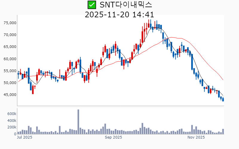2025년 11월 20일 기준 장중 잠정수급 기관 순매도 상위 20종목의 정보를 한눈에 볼 수 있도록 정리했습니다. 더욱 자세한 정보는 AWAKE 신고가 모니터링 채널(https://t.me/awake_realtimeCheck)에서 확인하세요. 🔥 🚀 훨씬 깊이있는 장중수급 정보(매수/매도 전환, 신규유입, 업종별 강도 등)을 확인하고 싶다면, ⭐️⭐️신고가 플러스 소개(아래 링크를 클릭하세요)⭐️⭐️ https://fishy-trampoline-79b.notion.site/1-1bd75164780f8043a665e84ea5e17548 ![]() ✅ 엔씨소프트(시총 : 4.0조) -2.4% - 투신, 연기금 매도 - 외국인 매수 --------------------------------------------------- ![]() ✅ 코아스템켐온(시총 : 349억) -22.0% - 투신 매도 - 외국인 매도 --------------------------------------------------- ![]() ✅ HPSP(시총 : 2.5조) +3.4% - 투신 매도 - 외국인 매수 --------------------------------------------------- ![]() ✅ 테크윙(시총 : 1.8조) -1.1% - 투신, 보험 매도 - 외국인 매도 --------------------------------------------------- ![]() ✅ SNT다이내믹스(시총 : 1.4조) -2.5% - 연기금, 투신 매도 - 외국인 매수 --------------------------------------------------- ![]() ✅ 씨엠티엑스(시총 : 1.2조) +109.3% - 보험, 연기금 매도 - 외국인 매도 --------------------------------------------------- ![]() ✅ 올릭스(시총 : 2.8조) +3.2% - 투신 매도 - 외국인 매도 --------------------------------------------------- ![]() ✅ 현대로템(시총 : 20.8조) +2.1% - 연기금, 투신 매도 - 외국인 매수 --------------------------------------------------- ![]() ✅ 헥토파이낸셜(시총 : 2,163억) +4.6% - 투신 매도 - 외국인 매수 --------------------------------------------------- ![]() ✅ 하나마이크론(시총 : 1.7조) -1.6% - 투신, 보험 매도 - 외국인 매도 --------------------------------------------------- ![]() ✅ 브이티(시총 : 7,146억) +1.2% - 연기금, 투신 매도 - 외국인 매도 --------------------------------------------------- ![]() ✅ 이엔에프테크놀로지(시총 : 6,315억) -3.4% - 투신, 연기금 매도 - 외국인 매도 --------------------------------------------------- ![]() ✅ 코미코(시총 : 9,289억) +0.2% - 연기금, 투신 매도 --------------------------------------------------- ![]() ✅ 제일기획(시총 : 2.5조) +0.7% - 투신 매도 - 외국인 매수 --------------------------------------------------- ![]() ✅ LG이노텍(시총 : 5.7조) +0.2% - 투신, 은행 매도 - 외국인 매도 --------------------------------------------------- ![]() ✅ 프로티나(시총 : 7,306억) +0.6% - 보험 매도 - 외국인 매도 --------------------------------------------------- ![]() ✅ 태웅(시총 : 4,832억) +1.5% - 연기금 매도 - 외국인 매수 --------------------------------------------------- ![]() ✅ 그린광학(시총 : 2,902억) -2.5% - 보험 매도 - 외국인 매도 --------------------------------------------------- ![]() ✅ 심텍(시총 : 1.9조) -3.2% - 연기금, 투신 매도 - 외국인 매도 --------------------------------------------------- ![]() ✅ 엠앤씨솔루션(시총 : 1.4조) -1.3% - 연기금 매도 - 외국인 매도 --------------------------------------------------- |