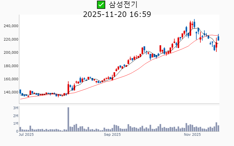 2025년 11월 20일 기준 기관 매수 상위 20종목의 정보를 한눈에 볼 수 있도록 정리했습니다. 더욱 자세한 정보는 AWAKE 신고가 모니터링 채널(https://t.me/awake_realtimeCheck)에서 확인하세요. 🔥 🚀 시장에서 강하고 수급이 집중되는 종목을 가장 빠르게 확인하고 싶다면, ⭐️⭐️신고가 플러스 소개(아래 링크를 클릭하세요)⭐️⭐️ https://fishy-trampoline-79b.notion.site/1-1bd75164780f8043a665e84ea5e17548 https://fishy-trampoline-79b.notion.site/1-1bd75164780f8043a665e84ea5e17548 ![]() ✅ 삼성전자(시총 : 571.2조) 기관매수 : +1,779억 - 금융투자 : +2,026억 - 보험 : +24억 - 은행 : +10억 - 기타금융 : +2억 외인매매 : +5,320억 --------------------------------------------------- ![]() ✅ SK하이닉스(시총 : 409.1조) 기관매수 : +868억 - 금융투자 : +1,463억 - 은행 : +13억 - 기타금융 : +1억 외인매매 : -1,326억 --------------------------------------------------- ![]() ✅ 삼성전자우(시총 : 571.2조) 기관매수 : +652억 - 연기금 : +376억 - 투신 : +230억 - 사모 : +77억 - 보험 : +10억 - 기타금융 : +3억 외인매매 : -407억 --------------------------------------------------- ![]() ✅ POSCO홀딩스(시총 : 25.4조) 기관매수 : +364억 - 연기금 : +174억 - 금융투자 : +132억 - 투신 : +34억 - 보험 : +14억 - 기타금융 : +3억 외인매매 : +234억 --------------------------------------------------- ![]() ✅ 삼양식품(시총 : 10.4조) 기관매수 : +337억 - 사모 : +116억 - 투신 : +100억 - 연기금 : +54억 - 금융투자 : +48억 - 보험 : +17억 외인매매 : -275억 --------------------------------------------------- ![]() ✅ 아모레퍼시픽(시총 : 7.5조) 기관매수 : +331억 - 연기금 : +174억 - 투신 : +78억 - 금융투자 : +41억 - 보험 : +26억 - 사모 : +11억 외인매매 : +217억 --------------------------------------------------- ![]() ✅ 두산에너빌리티(시총 : 47.7조) 기관매수 : +308억 - 금융투자 : +176억 - 사모 : +63억 - 연기금 : +49억 - 투신 : +15억 - 기타금융 : +2억 외인매매 : -128억 --------------------------------------------------- ![]() ✅ NAVER(시총 : 39.0조) 기관매수 : +292억 - 사모 : +147억 - 금융투자 : +142억 - 연기금 : +9억 - 은행 : +1억 - 기타금융 : +0억 외인매매 : -9억 --------------------------------------------------- ![]() ✅ 에이피알(시총 : 8.4조) 기관매수 : +239억 - 사모 : +97억 - 연기금 : +62억 - 금융투자 : +43억 - 투신 : +23억 - 보험 : +8억 외인매매 : +211억 --------------------------------------------------- ![]() ✅ 삼성전기(시총 : 16.1조) 기관매수 : +228억 - 금융투자 : +86억 - 투신 : +81억 - 사모 : +35억 - 연기금 : +28억 - 은행 : +6억 외인매매 : -508억 --------------------------------------------------- ![]() ✅ 파마리서치(시총 : 4.6조) 기관매수 : +204억 - 사모 : +68억 - 금융투자 : +58억 - 연기금 : +43억 - 투신 : +25억 - 보험 : +8억 외인매매 : -99억 --------------------------------------------------- ![]() ✅ KB금융(시총 : 46.6조) 기관매수 : +204억 - 금융투자 : +249억 - 사모 : +0억 - 기타금융 : +0억 외인매매 : -373억 --------------------------------------------------- ![]() ✅ CJ(시총 : 5.1조) 기관매수 : +203억 - 투신 : +74억 - 연기금 : +69억 - 사모 : +52억 - 보험 : +15억 - 은행 : +0억 외인매매 : -81억 --------------------------------------------------- ![]() ✅ 두산(시총 : 15.0조) 기관매수 : +199억 - 연기금 : +114억 - 투신 : +71억 - 사모 : +39억 - 보험 : +22억 - 기타금융 : +0억 외인매매 : +63억 --------------------------------------------------- ![]() ✅ 파라다이스(시총 : 1.5조) 기관매수 : +196억 - 연기금 : +74억 - 사모 : +46억 - 투신 : +30억 - 보험 : +23억 - 금융투자 : +22억 외인매매 : +14억 --------------------------------------------------- ![]() ✅ 셀트리온(시총 : 42.8조) 기관매수 : +174억 - 금융투자 : +105억 - 연기금 : +97억 - 사모 : +2억 - 은행 : +0억 외인매매 : -49억 --------------------------------------------------- ![]() ✅ 에이비엘바이오(시총 : 9.4조) 기관매수 : +174억 - 투신 : +106억 - 사모 : +71억 - 기타금융 : +0억 외인매매 : +75억 --------------------------------------------------- ![]() ✅ 신한지주(시총 : 37.2조) 기관매수 : +152억 - 금융투자 : +189억 - 기타금융 : +0억 외인매매 : -126억 --------------------------------------------------- ![]() ✅ 오스코텍(시총 : 1.9조) 기관매수 : +141억 - 연기금 : +82억 - 투신 : +47억 - 사모 : +24억 외인매매 : -37억 --------------------------------------------------- ![]() ✅ 롯데에너지머티리얼즈(시총 : 1.7조) 기관매수 : +124억 - 사모 : +66억 - 투신 : +43억 - 연기금 : +15억 - 보험 : +2억 - 기타금융 : +0억 외인매매 : -32억 🚀 시장에서 강하고 수급이 집중되는 종목을 가장 빠르게 확인하고 싶다면, ⭐️⭐️신고가 플러스 소개(아래 링크를 클릭하세요)⭐️⭐️ https://fishy-trampoline-79b.notion.site/1-1bd75164780f8043a665e84ea5e17548 https://fishy-trampoline-79b.notion.site/1-1bd75164780f8043a665e84ea5e17548 --------------------------------------------------- |