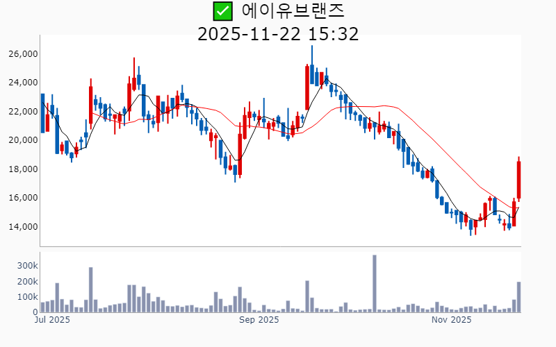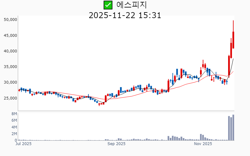 2025년 11월 21일 기준 주간 상승률 상위 15종목의 정보를 한눈에 볼 수 있도록 정리했습니다. 더욱 자세한 정보는 AWAKE 마켓브리핑 채널(https://t.me/awake_realtimeCheck)에서 확인하세요. 🔥 🚀 시장에서 강하고 수급이 집중되는 종목을 가장 빠르게 확인하고 싶다면, ⭐️⭐️신고가 플러스 소개(아래 링크를 클릭하세요)⭐️⭐️ https://fishy-trampoline-79b.notion.site/1-1bd75164780f8043a665e84ea5e17548 https://fishy-trampoline-79b.notion.site/1-1bd75164780f8043a665e84ea5e17548 ![]() ✅ 에스피지(시총 : 1.0조) 상승률(5D) : +49.2% 종목섹터 : (로봇) - LG와의 로봇용 액추에이터 협력 소식에 따른 기대감. - 휴머노이드 액추에이터 본격 양산 기대감. --------------------------------------------------- ![]() ✅ 에이플러스에셋(시총 : 1,811억) 상승률(5D) : +35.8% 종목섹터 : (밸류업) - 행동주의 펀드 얼라인의 에이플러스에셋 지분 20% 공개매수 소식에 따른 주가 상승 기대감 - 얼라인의 경영 참여 목적 공개매수로 인한 경영 개선 가능성 호재 --------------------------------------------------- ![]() ✅ 한국피아이엠(시총 : 2,879억) 상승률(5D) : +30.3% 종목섹터 : (로봇) - 휴머노이드 로봇 손 소재 상용화 논의 진행에 따른 기대감 - 휴머노이드 로봇 수요 확대에 따른 중장기 모멘텀 확장 전망 --------------------------------------------------- ![]() ✅ 에이유브랜즈(시총 : 2,618억) 상승률(5D) : +27.8% 종목섹터 : - 중국 시장 본격 진출과 상하이 플래그십 매장 오픈에 따른 성장 기대감 - K-패션의 글로벌 도약과 '락피쉬웨더웨어'의 인기 상승 전망 --------------------------------------------------- ![]() ✅ 에스비비테크(시총 : 1,964억) 상승률(5D) : +27.0% 종목섹터 : (로봇) - '피지컬AI 시대' 로봇 핵심 부품주로 부각되며 급등 - 액추에이터 기술 고도화와 매출 증가 기대감 --------------------------------------------------- ![]() ✅ 케어젠(시총 : 4.2조) 상승률(5D) : +22.8% 종목섹터 : (건기식/ 바이오/헬스케어) - MEDICA 2025 전시회에서 펩타이드 기반 체중조절 제품 'Korglutide'가 글로벌 시장의 주목을 받으며 기술력 입증 호재. - 건강기능식품 테마의 전반적인 강세 속에서 펩타이드 기술의 혁신적 발전 기대감. --------------------------------------------------- ![]() ✅ 서부T&D(시총 : 8,224억) 상승률(5D) : +22.0% 종목섹터 : (여행/카지노/ 여행/레져) - 엠와이에이치의 지분율 증가와 함께 신한서부티엔디리츠의 호텔 자산 실적 호조 기대감. - 신한서부티엔디리츠의 나인트리 호텔 동대문 매각 추진에 따른 차익 실현 기대감. --------------------------------------------------- ![]() ✅ GS피앤엘(시총 : 1.1조) 상승률(5D) : +21.2% 종목섹터 : (여행/카지노/ 여행/레져) - 중·일 갈등으로 인한 일본 여행 금지 조치 속 반사이익 기대감 - 3분기 영업이익 전분기 대비 72.3% 증가에 따른 실적 호조 전망 --------------------------------------------------- ![]() ✅ 아이티켐(시총 : 3,813억) 상승률(5D) : +18.8% 종목섹터 : (바이오/헬스케어) - 첨단소재 CDMO 기업으로서의 코스닥 신규 상장 기대감 - OLED 중수 재활용설비 9배 확대 계획 발표 호재 --------------------------------------------------- ![]() ✅ 에이치이엠파마(시총 : 2,690억) 상승률(5D) : +18.8% 종목섹터 : (바이오/헬스케어) - 세종공장 준공 및 글로벌 헬스케어 전략 허브로의 도약 기대감 - 개인 맞춤형 마이크로바이옴 연구 성과와 사업 확장 호재 --------------------------------------------------- ![]() ✅ 로킷헬스케어(시총 : 1.0조) 상승률(5D) : +18.5% 종목섹터 : (바이오/헬스케어) - 자가혈 활성 주사 플랫폼 출시와 관련한 기대감. - AI 기반 장기 재생 플랫폼 'AI-FRESH' 출시 소식에 따른 긍정적 전망. --------------------------------------------------- ![]() ✅ 대원산업(시총 : 2,839억) 상승률(5D) : +18.1% 종목섹터 : (밸류업) - 러시아 법인의 견조한 수익성 및 카니발·EV3 모델의 생산 호조에 따른 실적 개선 기대감. - 현저한 저평가 상태에서의 투자 매력 부각과 어닝 서프라이즈에 따른 긍정적 시장 반응. --------------------------------------------------- ![]() ✅ 온코닉테라퓨틱스(시총 : 7,626억) 상승률(5D) : +18.0% 종목섹터 : (바이오/헬스케어) - 췌장암 신약 후보 '네수파립'의 임상 2상 승인 및 무상증자 권리락 기대감 - 신약 '자큐보'의 성공적인 시장 진입으로 인한 분기 최대 실적 달성 --------------------------------------------------- ![]() ✅ 펩트론(시총 : 8.6조) 상승률(5D) : +17.9% 종목섹터 : (비만 치료제/ 바이오/헬스케어) - 글로벌 빅파마와의 '오토인젝터' 연구 논의 및 추가 계약 기대감 - 카무루스의 긍정적 임상 결과에 따른 기술평가 기대감 --------------------------------------------------- ![]() ✅ 제이에스링크(시총 : 6,387억) 상승률(5D) : +17.3% 종목섹터 : (희토류) - 주요주주와 이사의 지속적인 주식 매수로 인한 지분율 증가 기대감 - 비 중국산 네오디뮴 활용 영구자석 시험생산 성공 및 전기차용 공장 건설 호재 --------------------------------------------------- |