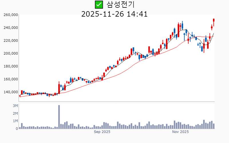 2025년 11월 26일 기준 장중 잠정수급 기관 순매수 상위 20종목의 정보를 한눈에 볼 수 있도록 정리했습니다. 더욱 자세한 정보는 AWAKE 신고가 모니터링 채널(https://t.me/awake_realtimeCheck)에서 확인하세요. 🔥 🚀 훨씬 깊이있는 장중수급 정보(매수/매도 전환, 신규유입, 업종별 강도 등)을 확인하고 싶다면, ⭐️⭐️신고가 플러스 소개(아래 링크를 클릭하세요)⭐️⭐️ https://fishy-trampoline-79b.notion.site/1-1bd75164780f8043a665e84ea5e17548 ![]() ✅ SK하이닉스(시총 : 381.8조) +1.1% - 투신, 연기금 매수 - 외국인 매도 --------------------------------------------------- ![]() ✅ 삼성전자(시총 : 605.0조) +2.9% - 투신, 연기금 매수 - 외국인 매수 --------------------------------------------------- ![]() ✅ 케이아이엔엑스(시총 : 5,388억) +16.8% - 투신 매수 - 외국인 매수 --------------------------------------------------- ![]() ✅ 삼성전기(시총 : 18.9조) +4.8% - 투신, 연기금 매수 - 외국인 매도 --------------------------------------------------- ![]() ✅ 오스코텍(시총 : 2.2조) +8.8% - 투신, 연기금 매수 - 외국인 매도 --------------------------------------------------- ![]() ✅ 두산에너빌리티(시총 : 49.7조) +5.6% - 투신, 연기금 매수 - 외국인 매수 --------------------------------------------------- ![]() ✅ 롯데에너지머티리얼즈(시총 : 2.2조) 0% - 투신, 연기금 매수 - 외국인 매도 --------------------------------------------------- ![]() ✅ 리가켐바이오(시총 : 6.8조) +6.7% - 투신, 연기금 매수 - 외국인 매수 --------------------------------------------------- ![]() ✅ 엘앤에프(시총 : 4.9조) +8.7% - 연기금, 투신 매수 - 외국인 매수 --------------------------------------------------- ![]() ✅ 한국전력(시총 : 33.6조) +1.6% - 투신, 연기금 매수 - 외국인 매수 --------------------------------------------------- ![]() ✅ NAVER(시총 : 40.6조) +2.3% - 투신, 연기금 매수 - 외국인 매수 --------------------------------------------------- ![]() ✅ 보로노이(시총 : 4.5조) +6.3% - 투신, 연기금 매수 - 외국인 매수 --------------------------------------------------- ![]() ✅ 현대건설(시총 : 7.3조) +7.2% - 투신, 보험 매수 - 외국인 매수 --------------------------------------------------- ![]() ✅ KB금융(시총 : 47.8조) +2.9% - 투신, 연기금 매수 - 외국인 매도 --------------------------------------------------- ![]() ✅ 엔씨소프트(시총 : 4.6조) +2.9% - 투신 매수 - 외국인 매수 --------------------------------------------------- ![]() ✅ 에스앤에스텍(시총 : 1.0조) +6.0% - 투신 매수 - 외국인 매도 --------------------------------------------------- ![]() ✅ 삼성SDI(시총 : 24.4조) +6.6% - 투신, 연기금 매수 - 외국인 매수 --------------------------------------------------- ![]() ✅ LG화학(시총 : 27.8조) +8.4% - 투신, 연기금 매수 - 외국인 매도 --------------------------------------------------- ![]() ✅ DB손해보험(시총 : 8.9조) +4.4% - 연기금, 보험 매수 - 외국인 매도 --------------------------------------------------- ![]() ✅ STX엔진(시총 : 1.3조) +6.4% - 투신, 보험 매수 - 외국인 매도 --------------------------------------------------- |