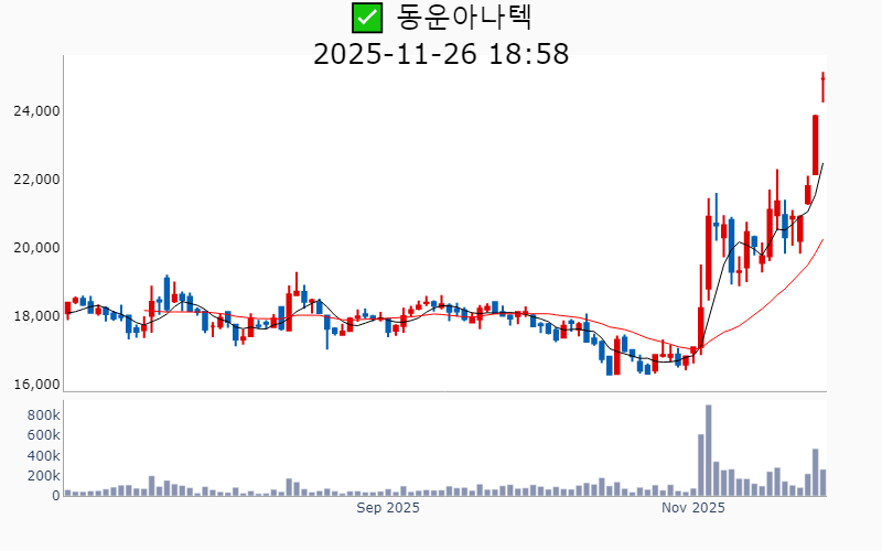 2025년 11월 26일 기준 주간 상승률 상위 15종목의 정보를 한눈에 볼 수 있도록 정리했습니다. 더욱 자세한 정보는 AWAKE 마켓브리핑 채널(https://t.me/awake_realtimeCheck)에서 확인하세요. 🔥 🚀 시장에서 강하고 수급이 집중되는 종목을 가장 빠르게 확인하고 싶다면, ⭐️⭐️신고가 플러스 소개(아래 링크를 클릭하세요)⭐️⭐️ https://fishy-trampoline-79b.notion.site/1d175164780f803e93abc1e53c38b42c ![]() ✅ 노타(시총 : 8,179억) 상승률(5D) : +48.1% 종목섹터 : AI S/W - 삼성전자와 엑시노스 AI 최적화 기술 공급 계약 체결 소식에 따른 기대감. - 온디바이스 생성형 AI 대중화 선도 전망. --------------------------------------------------- ![]() ✅ 그래피(시총 : 1,491억) 상승률(5D) : +38.2% 종목섹터 : 의료기기 - 투명교정장치의 미국 FDA 승인으로 60조 원 규모의 글로벌 시장 선점 기대감. - 치과산업 내 혁신 제품 출시로 인한 시장 경쟁력 강화 전망. --------------------------------------------------- ![]() ✅ 케이아이엔엑스(시총 : 4,612억) 상승률(5D) : +30.7% 종목섹터 : 데이터센터 - 행동주의 펀드 '가비아'의 공개매수 소식에 따른 기대감 - 글로벌 클라우드 네트워크 구성 전략 발표에 따른 성장 전망 --------------------------------------------------- ![]() ✅ 로킷헬스케어(시총 : 1.1조) 상승률(5D) : +28.0% 종목섹터 : 바이오/헬스케어 - 당뇨발 AI 재생치료 임상시험 승인으로 혁신의료기술 기대감 - 이스라엘 공보험 최종 파일럿 스터디 승인에 따른 글로벌 시장 진입 전망 --------------------------------------------------- ![]() ✅ 코오롱생명과학(시총 : 5,783억) 상승률(5D) : +26.5% 종목섹터 : 바이오/헬스케어 - RNA 치료제 핵심 원료 '포스포아미다이트' 확보로 인한 글로벌 시장 확장 기대감 - RNA 핵심 원료 포트폴리오 구축에 따른 바이오 산업 내 경쟁력 강화 전망 --------------------------------------------------- ![]() ✅ 큐리오시스(시총 : 5,377억) 상승률(5D) : +25.4% 종목섹터 : 바이오/헬스케어 - 상장 첫날 '따따블' 기록과 높은 청약 경쟁률로 인한 기대감. - 바이오 실험실 자동화 분야에서의 경쟁력 강화 전망. --------------------------------------------------- ![]() ✅ 스맥(시총 : 3,323억) 상승률(5D) : +24.9% 종목섹터 : 로봇/ 드론/UAM - SNT홀딩스의 경영 참여 선언과 지분 확대 소식에 따른 기대감 - 스마트 팩토리 및 공작기계 분야에서의 성장 가능성 부각 --------------------------------------------------- ![]() ✅ 대동기어(시총 : 1,705억) 상승률(5D) : +24.4% 종목섹터 : 재건/ 자동차 - 러시아와 우크라이나의 종전 합의 소식에 따른 우크라이나와의 300억 규모 계약 부각 기대감. - 고정밀·고부가 부품으로 미래 시장 진출을 정조준하는 사업 전략 호재. --------------------------------------------------- ![]() ✅ 삼성전기우(시총 : 18.0조) 상승률(5D) : +22.0% 종목섹터 : - 주주환원 정책 강화에 따른 배당 수익률 매력 증가 - 증권가의 업황 개선 전망과 전장용 MLCC 사업 기대감 --------------------------------------------------- ![]() ✅ 이뮨온시아(시총 : 5,562억) 상승률(5D) : +21.1% 종목섹터 : 바이오/헬스케어 - 면역항암제 후보물질 '댄버스토투그'의 한국 희귀의약품 지정 신청으로 인한 기대감 - 유한양행 자회사로서 차세대 항암 포트폴리오 주자로 부상하는 호재 --------------------------------------------------- ![]() ✅ 가비아(시총 : 4,419억) 상승률(5D) : +19.6% 종목섹터 : 데이터센터/ 클라우드/보안 - 행동주의 펀드 얼라인파트너스의 450억 원 규모 공개매수 추진 소식에 주가 상승 기대감 - AI 시대에 '픽 앤 쇼벨' 대표 기업으로서의 경쟁력 부각 --------------------------------------------------- ![]() ✅ 프로티나(시총 : 7,589억) 상승률(5D) : +18.3% 종목섹터 : 바이오/헬스케어/ 의료AI - 삼성바이오에피스와의 'AI 항체 설계' 협력 및 국책과제 선정 등으로 인한 기대감. - AI 신약 개발 플랫폼의 혁신 추구와 글로벌 빅파마의 관심 속 급등세. --------------------------------------------------- ![]() ✅ ISC(시총 : 2.2조) 상승률(5D) : +18.2% 종목섹터 : 반도체 - 트럼프 행정부의 엔비디아 칩 수출 검토 소식에 따른 반도체 관련주 상승. - 주문형반도체 시장 확대와 대면적 소켓 공급 증가에 따른 성장 기대감. --------------------------------------------------- ![]() ✅ 넥써쓰(시총 : 1,353억) 상승률(5D) : +18.0% 종목섹터 : 가상자산/STO/핀테크 - 방치형 RPG '어메이징 컬티베이션'의 크로쓰 플랫폼 온보딩에 따른 기대감. - 인앱 결제 수수료 인하에 따른 수익개선 기대감. --------------------------------------------------- ![]() ✅ 동운아나텍(시총 : 4,987억) 상승률(5D) : +17.7% 종목섹터 : - 글로벌 최초 침 혈당측정기 상용화 기대감 - 삼성전자 신제품 출시 수혜로 하반기 실적 성장 전망 --------------------------------------------------- |