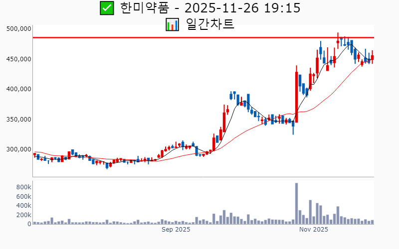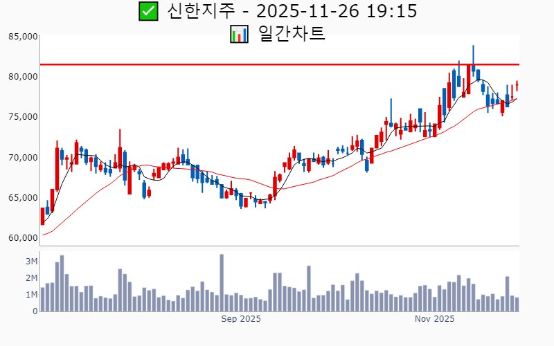 2025년 11월 26일 기준 52주/역사적 신고가에 근접한 종목 리스트를 한눈에 볼 수 있도록 정리했습니다. 더욱 자세한 정보는 AWAKE 신고가 모니터링 채널(https://t.me/awake_realtimeCheck)에서 확인하세요. 🔥 🚀 시장에서 강하고 수급이 집중되는 종목을 가장 빠르게 확인하고 싶다면, ⭐️⭐️신고가 플러스 소개(아래 링크를 클릭하세요)⭐️⭐️ https://fishy-trampoline-79b.notion.site/1-1bd75164780f8043a665e84ea5e17548 ![]() ✅ 삼성전자 🔍 역사적 최고가 8.8% 남음 거래대금 : 2.2조 시가총액 : 608.5조 현재주가 : 102,800원 - 역사적 최고가 : 111,800원(+8.8%) --------------------------------------------------- ![]() ✅ KB금융 🔍 역사적 최고가 10.2% 남음 거래대금 : 1,221억 시가총액 : 47.6조 현재주가 : 124,700원 - 역사적 최고가 : 137,400원(+10.2%) --------------------------------------------------- ![]() ✅ 셀트리온 🔍 52주 최고가 6.2% 남음 거래대금 : 1,291억 시가총액 : 43.3조 현재주가 : 187,400원 - 52주 최고가 : 199,100원(+6.2%) - 사상 최고가 : 344,634원(+319.3%) --------------------------------------------------- ![]() ✅ SK스퀘어 🔍 역사적 최고가 11.2% 남음 거래대금 : 1,550억 시가총액 : 38.6조 현재주가 : 291,000원 - 역사적 최고가 : 323,500원(+11.2%) --------------------------------------------------- ![]() ✅ 신한지주 🔍 역사적 최고가 3.2% 남음 거래대금 : 668억 시가총액 : 38.4조 현재주가 : 79,000원 - 역사적 최고가 : 81,500원(+3.2%) --------------------------------------------------- ![]() ✅ LG화학 🔍 52주 최고가 5.7% 남음 거래대금 : 1,962억 시가총액 : 28.0조 현재주가 : 397,000원 - 52주 최고가 : 419,500원(+5.7%) - 사상 최고가 : 1,028,000원(+1150.6%) --------------------------------------------------- ![]() ✅ 하나금융지주 🔍 역사적 최고가 3.9% 남음 거래대금 : 467억 시가총액 : 25.9조 현재주가 : 92,900원 - 역사적 최고가 : 96,500원(+3.9%) --------------------------------------------------- ![]() ✅ POSCO홀딩스 🔍 52주 최고가 5.5% 남음 거래대금 : 1,195억 시가총액 : 25.7조 현재주가 : 317,500원 - 52주 최고가 : 335,000원(+5.5%) - 사상 최고가 : 666,000원(+710.2%) --------------------------------------------------- ![]() ✅ 삼성화재 🔍 역사적 최고가 7.4% 남음 거래대금 : 233억 시가총액 : 22.4조 현재주가 : 486,000원 - 역사적 최고가 : 522,000원(+7.4%) --------------------------------------------------- ![]() ✅ 우리금융지주 🔍 역사적 최고가 3.6% 남음 거래대금 : 332억 시가총액 : 19.2조 현재주가 : 26,150원 - 역사적 최고가 : 27,100원(+3.6%) --------------------------------------------------- ![]() ✅ 한국항공우주 🔍 역사적 최고가 4.3% 남음 거래대금 : 683억 시가총액 : 10.8조 현재주가 : 110,300원 - 역사적 최고가 : 115,000원(+4.3%) --------------------------------------------------- ![]() ✅ 에이비엘바이오 🔍 역사적 최고가 4.9% 남음 거래대금 : 1,444억 시가총액 : 9.6조 현재주가 : 173,400원 - 역사적 최고가 : 181,900원(+4.9%) --------------------------------------------------- ![]() ✅ 에이피알 🔍 역사적 최고가 10.4% 남음 거래대금 : 1,041억 시가총액 : 9.4조 현재주가 : 250,000원 - 역사적 최고가 : 276,000원(+10.4%) --------------------------------------------------- ![]() ✅ 한국타이어앤테크놀로지 🔍 52주 최고가 0.7% 남음 거래대금 : 162억 시가총액 : 7.3조 현재주가 : 59,300원 - 52주 최고가 : 59,700원(+0.7%) - 사상 최고가 : 66,900원(-18.6%) --------------------------------------------------- ![]() ✅ 삼성증권 🔍 역사적 최고가 3.6% 남음 거래대금 : 224억 시가총액 : 7.2조 현재주가 : 80,400원 - 역사적 최고가 : 83,300원(+3.6%) --------------------------------------------------- ![]() ✅ 한미약품 🔍 52주 최고가 6.6% 남음 거래대금 : 409억 시가총액 : 5.8조 현재주가 : 455,500원 - 52주 최고가 : 485,500원(+6.6%) - 사상 최고가 : 696,469원(+747.3%) --------------------------------------------------- ![]() ✅ LG이노텍 🔍 52주 최고가 6.6% 남음 거래대금 : 214억 시가총액 : 5.7조 현재주가 : 242,500원 - 52주 최고가 : 258,500원(+6.6%) - 사상 최고가 : 414,500원(+404.3%) --------------------------------------------------- ![]() ✅ SK바이오사이언스 🔍 52주 최고가 14.0% 남음 거래대금 : 101억 시가총액 : 4.1조 현재주가 : 52,700원 - 52주 최고가 : 60,100원(+14.0%) - 사상 최고가 : 335,500원(+308.2%) --------------------------------------------------- ![]() ✅ KCC 🔍 52주 최고가 9.2% 남음 거래대금 : 90억 시가총액 : 3.7조 현재주가 : 415,000원 - 52주 최고가 : 453,000원(+9.2%) - 사상 최고가 : 520,620원(+533.4%) --------------------------------------------------- ![]() ✅ 더존비즈온 🔍 52주 최고가 1.9% 남음 거래대금 : 105억 시가총액 : 2.8조 현재주가 : 93,300원 - 52주 최고가 : 95,100원(+1.9%) - 사상 최고가 : 127,500원(+55.1%) --------------------------------------------------- ![]() ✅ HD현대인프라코어 🔍 역사적 최고가 18.7% 남음 거래대금 : 225억 시가총액 : 2.8조 현재주가 : 14,960원 - 역사적 최고가 : 17,760원(+18.7%) --------------------------------------------------- ![]() ✅ 현대해상 🔍 52주 최고가 2.5% 남음 거래대금 : 128억 시가총액 : 2.7조 현재주가 : 29,750원 - 52주 최고가 : 30,500원(+2.5%) - 사상 최고가 : 49,200원(-40.1%) --------------------------------------------------- ![]() ✅ 올릭스 🔍 역사적 최고가 8.0% 남음 거래대금 : 853억 시가총액 : 2.6조 현재주가 : 131,000원 - 역사적 최고가 