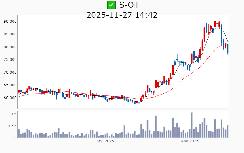 2025년 11월 27일 기준 장중 잠정수급 기관 순매도 상위 20종목의 정보를 한눈에 볼 수 있도록 정리했습니다. 더욱 자세한 정보는 AWAKE 신고가 모니터링 채널(https://t.me/awake_realtimeCheck)에서 확인하세요. 🔥 🚀 훨씬 깊이있는 장중수급 정보(매수/매도 전환, 신규유입, 업종별 강도 등)을 확인하고 싶다면, ⭐️⭐️신고가 플러스 소개(아래 링크를 클릭하세요)⭐️⭐️ https://fishy-trampoline-79b.notion.site/1-1bd75164780f8043a665e84ea5e17548 ![]() ✅ 미래에셋비전기업스팩8호(시총 : 127억) -0.7% - 투신, 보험 매도 - 외국인 매도 --------------------------------------------------- ![]() ✅ 아로마티카(시총 : 2,677억) +163.1% - 투신, 보험 매도 - 외국인 매도 --------------------------------------------------- ![]() ✅ NAVER(시총 : 39.4조) -4.5% - 투신, 연기금 매도 - 외국인 매도 --------------------------------------------------- ![]() ✅ 지투지바이오(시총 : 1.2조) -5.9% - 연기금, 보험 매도 - 외국인 매도 --------------------------------------------------- ![]() ✅ 올릭스(시총 : 2.4조) -8.1% - 투신, 보험 매도 - 외국인 매도 --------------------------------------------------- ![]() ✅ 로킷헬스케어(시총 : 1.2조) +0.1% - 투신 매도 - 외국인 매도 --------------------------------------------------- ![]() ✅ 씨엠티엑스(시총 : 8,791억) +2.7% - 연기금 매도 - 외국인 매도 --------------------------------------------------- ![]() ✅ 디앤디파마텍(시총 : 1.0조) -4.9% - 투신 매도 - 외국인 매도 --------------------------------------------------- ![]() ✅ 두산테스나(시총 : 8,465억) -1.7% - 투신, 보험 매도 - 외국인 매수 --------------------------------------------------- ![]() ✅ 온코크로스(시총 : 1,354억) -2.1% - 투신 매도 --------------------------------------------------- ![]() ✅ 롯데지주(시총 : 2.9조) -2.0% - 투신, 연기금 매도 - 외국인 매도 --------------------------------------------------- ![]() ✅ 코미코(시총 : 9,059억) -1.2% - 투신, 연기금 매도 - 외국인 매도 --------------------------------------------------- ![]() ✅ GS피앤엘(시총 : 9,192억) -2.3% - 투신 매도 - 외국인 매수 --------------------------------------------------- ![]() ✅ 현대차우(시총 : 4.5조) -1.3% - 연기금 매도 - 외국인 매도 --------------------------------------------------- ![]() ✅ 롯데관광개발(시총 : 1.6조) -3.7% - 투신, 연기금 매도 - 외국인 매도 --------------------------------------------------- ![]() ✅ 한화투자증권(시총 : 1.1조) -1.9% - 투신 매도 - 외국인 매도 --------------------------------------------------- ![]() ✅ S-Oil(시총 : 8.7조) -4.2% - 연기금, 투신 매도 - 외국인 매수 --------------------------------------------------- ![]() ✅ 롯데에너지머티리얼즈(시총 : 2.1조) -7.2% - 연기금, 투신 매도 - 외국인 매도 --------------------------------------------------- ![]() ✅ 동성화인텍(시총 : 7,452억) -2.9% - 투신 매도 - 외국인 매수 --------------------------------------------------- ![]() ✅ 펩트론(시총 : 7.2조) -3.3% - 연기금, 투신 매도 - 외국인 매수 --------------------------------------------------- |