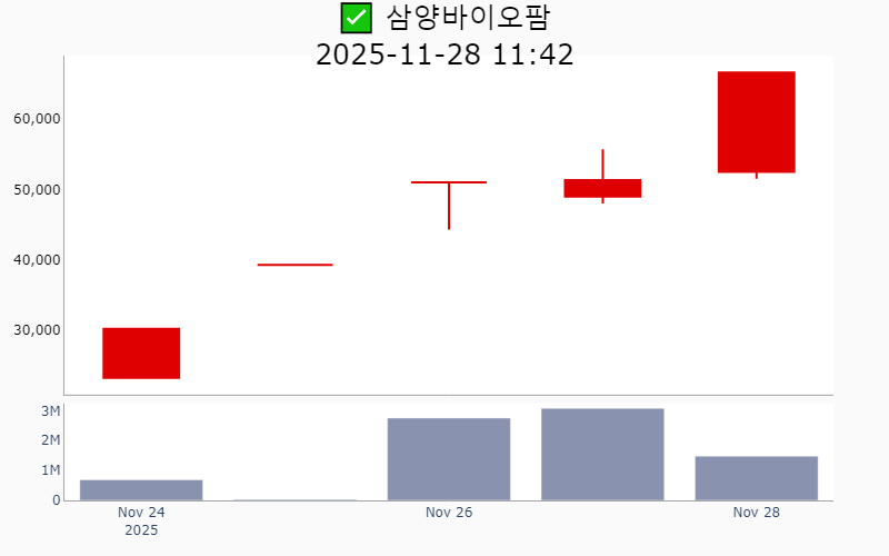 2025년 11월 28일 기준 장중 잠정수급 외국인 순매수 상위 20종목의 정보를 한눈에 볼 수 있도록 정리했습니다. 더욱 자세한 정보는 AWAKE 신고가 모니터링 채널(https://t.me/awake_realtimeCheck)에서 확인하세요. 🔥 🚀 훨씬 깊이있는 장중 수급 정보(매수/매도 전환, 신규유입, 업종별 강도 등)을 확인하고 싶다면, ⭐️⭐️신고가 플러스 소개(아래 링크를 클릭하세요)⭐️⭐️ https://fishy-trampoline-79b.notion.site/1-1bd75164780f8043a665e84ea5e17548 ![]() ✅ 고영(시총 : 1.6조) +18.8% - 외국인 매수 - 연기금, 보험 매수 --------------------------------------------------- ![]() ✅ 뉴로핏(시총 : 2,781억) +13.0% - 외국인 매수 - 연기금 매수 --------------------------------------------------- ![]() ✅ 펩트론(시총 : 8.4조) +17.1% - 외국인 매수 - 연기금, 투신 매수 --------------------------------------------------- ![]() ✅ 뷰노(시총 : 3,780억) +14.7% - 외국인 매수 - 투신 매도 --------------------------------------------------- ![]() ✅ 삼양바이오팜(시총 : 4,952억) +29.8% - 외국인 매수 - 보험, 투신 매수 --------------------------------------------------- ![]() ✅ 지투지바이오(시총 : 1.4조) +12.8% - 외국인 매수 - 투신, 연기금 매수 --------------------------------------------------- ![]() ✅ 온코닉테라퓨틱스(시총 : 9,454억) +19.7% - 외국인 매수 - 투신 매수 --------------------------------------------------- ![]() ✅ 에스피지(시총 : 1.3조) +15.9% - 외국인 매수 - 보험, 연기금 매수 --------------------------------------------------- ![]() ✅ 에이디테크놀로지(시총 : 3,716억) +15.0% - 외국인 매수 --------------------------------------------------- ![]() ✅ 링크솔루션(시총 : 1,780억) +5.3% - 외국인 매수 - 투신 매수 --------------------------------------------------- ![]() ✅ 한국피아이엠(시총 : 3,212억) +21.2% - 외국인 매수 - 보험, 투신 매수 --------------------------------------------------- ![]() ✅ 에스티팜(시총 : 2.3조) +4.3% - 외국인 매수 - 연기금, 투신 매수 --------------------------------------------------- ![]() ✅ 에스투더블유(시총 : 2,864억) +5.0% - 외국인 매수 - 연기금 매수 --------------------------------------------------- ![]() ✅ 나우로보틱스(시총 : 2,867억) +5.5% - 외국인 매수 --------------------------------------------------- ![]() ✅ 올릭스(시총 : 2.6조) +4.3% - 외국인 매수 - 투신 매수 --------------------------------------------------- ![]() ✅ 리가켐바이오(시총 : 7.0조) +6.1% - 외국인 매수 - 연기금, 투신 매수 --------------------------------------------------- ![]() ✅ 씨메스(시총 : 3,751억) +13.6% - 외국인 매수 - 투신 매수 --------------------------------------------------- ![]() ✅ 미래에셋벤처투자(시총 : 4,882억) +11.7% - 외국인 매수 - 투신, 보험 매수 --------------------------------------------------- ![]() ✅ 레인보우로보틱스(시총 : 7.9조) +6.3% - 외국인 매수 - 투신 매수 --------------------------------------------------- ![]() ✅ 한국비엔씨(시총 : 3,885억) +3.6% - 외국인 매수 --------------------------------------------------- |