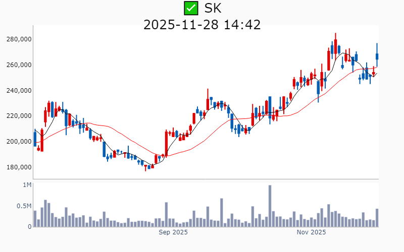 2025년 11월 28일 기준 장중 잠정수급 기관 순매수 상위 20종목의 정보를 한눈에 볼 수 있도록 정리했습니다. 더욱 자세한 정보는 AWAKE 신고가 모니터링 채널(https://t.me/awake_realtimeCheck)에서 확인하세요. 🔥 🚀 훨씬 깊이있는 장중수급 정보(매수/매도 전환, 신규유입, 업종별 강도 등)을 확인하고 싶다면, ⭐️⭐️신고가 플러스 소개(아래 링크를 클릭하세요)⭐️⭐️ https://fishy-trampoline-79b.notion.site/1-1bd75164780f8043a665e84ea5e17548 ![]() ✅ 에이비엘바이오(시총 : 10.4조) +7.6% - 투신 매수 - 외국인 매수 --------------------------------------------------- ![]() ✅ 에스피지(시총 : 1.4조) +25.1% - 투신, 연기금 매수 - 외국인 매수 --------------------------------------------------- ![]() ✅ 로보티즈(시총 : 3.1조) +11.3% - 투신, 연기금 매수 - 외국인 매수 --------------------------------------------------- ![]() ✅ 펩트론(시총 : 7.9조) +10.6% - 투신, 연기금 매수 - 외국인 매수 --------------------------------------------------- ![]() ✅ 인투셀(시총 : 9,725억) +7.9% - 투신, 보험 매수 - 외국인 매수 --------------------------------------------------- ![]() ✅ 파마리서치(시총 : 4.9조) +7.0% - 투신, 연기금 매수 - 외국인 매도 --------------------------------------------------- ![]() ✅ 리가켐바이오(시총 : 7.0조) +6.5% - 투신, 연기금 매수 - 외국인 매수 --------------------------------------------------- ![]() ✅ 오스코텍(시총 : 2.4조) +5.0% - 투신, 연기금 매수 - 외국인 매도 --------------------------------------------------- ![]() ✅ SK하이닉스(시총 : 388.0조) -2.0% - 투신, 연기금 매수 - 외국인 매도 --------------------------------------------------- ![]() ✅ 고영(시총 : 1.6조) +21.6% - 투신, 연기금 매수 - 외국인 매수 --------------------------------------------------- ![]() ✅ 넥스트바이오메디컬(시총 : 7,031억) +3.5% - 투신 매수 - 외국인 매도 --------------------------------------------------- ![]() ✅ 온코닉테라퓨틱스(시총 : 9,298억) +17.8% - 투신, 연기금 매수 - 외국인 매수 --------------------------------------------------- ![]() ✅ 현대엘리베이터(시총 : 3.4조) +6.5% - 연기금, 투신 매수 - 외국인 매도 --------------------------------------------------- ![]() ✅ 에스티팜(시총 : 2.4조) +7.8% - 투신, 연기금 매수 - 외국인 매수 --------------------------------------------------- ![]() ✅ SK(시총 : 19.2조) +4.1% - 연기금, 투신 매수 - 외국인 매도 --------------------------------------------------- ![]() ✅ 한국피아이엠(시총 : 3,212억) +21.2% - 투신, 보험 매수 - 외국인 매수 --------------------------------------------------- ![]() ✅ 삼양바이오팜(시총 : 4,952억) +29.8% - 투신, 보험 매수 - 외국인 매수 --------------------------------------------------- ![]() ✅ 지투지바이오(시총 : 1.4조) +13.0% - 연기금, 투신 매수 - 외국인 매수 --------------------------------------------------- ![]() ✅ 뉴로핏(시총 : 2,863억) +16.3% - 연기금, 투신 매수 - 외국인 매수 --------------------------------------------------- ![]() ✅ 덕산네오룩스(시총 : 1.0조) +2.2% - 투신, 보험 매수 - 외국인 매도 --------------------------------------------------- |