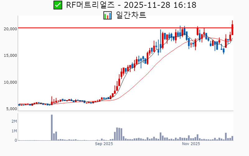 2025년 11월 28일 기준 최근 3일간 52주/역사적 신고가를 돌파한 종목 리스트를 한눈에 볼 수 있도록 정리했습니다. 돌파 이후 주가 흐름 및 돌파 후 조정(눌림) 종목 확인 가능합니다. 더욱 자세한 정보는 AWAKE 신고가 모니터링 채널(https://t.me/awake_realtimeCheck)에서 확인하세요. 🔥 🚀 시장에서 강하고 수급이 집중되는 종목을 가장 빠르게 확인하고 싶다면, ⭐️⭐️신고가 플러스 소개(아래 링크를 클릭하세요)⭐️⭐️ https://fishy-trampoline-79b.notion.site/1-1bd75164780f8043a665e84ea5e17548 ![]() ✅ HL만도 ❗️ 당일 52주 최고가 돌파 (🔍 최고가 대비 : 0.9% 조정 상태) 거래대금 : 132억(최근 20일 평균) 시가총액 : 2.2조 현재주가 : 46,600원 - 52주 최고가 : 46,650원(52주) - 사상 최고가 : 81,000원(+0.7%) --------------------------------------------------- ![]() ✅ 에스엘 ❗️ 당일 52주 최고가 돌파 (🔍 최고가 대비 : 0.1% 조정 상태) 거래대금 : 58억(최근 20일 평균) 시가총액 : 1.9조 현재주가 : 41,400원 - 52주 최고가 : 41,400원(52주) - 사상 최고가 : 46,000원(-42.8%) --------------------------------------------------- ![]() ✅ 고영 ❗️ 당일 52주 최고가 돌파 (🔍 최고가 대비 : -6.5% 조정 상태) 거래대금 : 2,269억(최근 20일 평균) 시가총액 : 1.6조 현재주가 : 23,700원 - 52주 최고가 : 23,700원(52주) - 사상 최고가 : 29,550원(-63.2%) --------------------------------------------------- ![]() ✅ 한라캐스트 ❗️ 당일 67일 최고가 돌파 (🔍 최고가 대비 : 1.6% 조정 상태) 거래대금 : 640억(최근 20일 평균) 시가총액 : 5,099억 현재주가 : 13,970원 - 67일 최고가 : 13,970원(52주) --------------------------------------------------- ![]() ✅ BGF에코머티리얼즈 ❗️ 당일 52주 최고가 돌파 (🔍 최고가 대비 : -3.7% 조정 상태) 거래대금 : 2억(최근 20일 평균) 시가총액 : 2,118억 현재주가 : 3,375원 - 52주 최고가 : 3,375원(52주) - 사상 최고가 : 12,546원(-84.4%) --------------------------------------------------- ![]() ✅ 코리아에프티 ❗️ 당일 52주 최고가 돌파 (🔍 최고가 대비 : -1.4% 조정 상태) 거래대금 : 37억(최근 20일 평균) 시가총액 : 2,080억 현재주가 : 7,470원 - 52주 최고가 : 7,470원(52주) - 사상 최고가 : 7,870원(-90.2%) --------------------------------------------------- ![]() ✅ RF머트리얼즈 ❗️ 당일 역사적 최고가 돌파 (🔍 최고가 대비 : -1.0% 조정 상태) 거래대금 : 47억(최근 20일 평균) 시가총액 : 1,754억 현재주가 : 20,800원 - 역사적 최고가 : 20,800원(52주) --------------------------------------------------- ![]() ✅ 동구바이오제약 ❗️ 당일 52주 최고가 돌파 (🔍 최고가 대비 : 4.9% 조정 상태) 거래대금 : 13억(최근 20일 평균) 시가총액 : 1,731억 현재주가 : 6,080원 - 52주 최고가 : 6,080원(52주) - 사상 최고가 : 17,157원(-78.7%) --------------------------------------------------- ![]() ✅ 아바텍 ❗️ 당일 52주 최고가 돌파 (🔍 최고가 대비 : 13.1% 조정 상태) 거래대금 : 2억(최근 20일 평균) 시가총액 : 1,462억 현재주가 : 10,700원 - 52주 최고가 : 10,700원(52주) - 사상 최고가 : 26,600원(-66.9%) --------------------------------------------------- ![]() ✅ 우림피티에스 ❗️ 당일 52주 최고가 돌파 (🔍 최고가 대비 : 4.5% 조정 상태) 거래대금 : 35억(최근 20일 평균) 시가총액 : 1,115억 현재주가 : 8,260원 - 52주 최고가 : 8,260원(52주) - 사상 최고가 : 11,750원(-85.4%) --------------------------------------------------- ![]() ✅ 미스토홀딩스 ❗️ 1일전 52주 최고가 돌파 (🔍 최고가 대비 : 3.3% 조정 상태) 거래대금 : 47억(최근 20일 평균) 시가총액 : 2.6조 현재주가 : 42,750원 - 52주 최고가 : 43,950원(52주) - 사상 최고가 : 87,000원(+8.2%) --------------------------------------------------- ![]() ✅ 에스티팜 ❗️ 1일전 52주 최고가 돌파 (🔍 최고가 대비 : -6.8% 조정 상태) 거래대금 : 173억(최근 20일 평균) 시가총액 : 2.4조 현재주가 : 117,000원 - 52주 최고가 : 117,000원(52주) - 사상 최고가 : 147,800원(+83.8%) --------------------------------------------------- ![]() ✅ 넥스트바이오메디컬 ❗️ 1일전 역사적 최고가 돌파 (🔍 최고가 대비 : 4.7% 조정 상태) 거래대금 : 112억(최근 20일 평균) 시가총액 : 7,006억 현재주가 : 85,400원 - 역사적 최고가 : 85,400원(52주) --------------------------------------------------- ![]() ✅ 에프엔에스테크 ❗️ 1일전 52주 최고가 돌파 (🔍 최고가 대비 : 5.4% 조정 상태) 거래대금 : 31억(최근 20일 평균) 시가총액 : 1,419억 현재주가 : 16,550원 - 52주 최고가 : 16,900원(52주) - 사상 최고가 : 17,600원(-78.1%) --------------------------------------------------- ![]() ✅ 신영와코루 ❗️ 1일전 52주 최고가 돌파 (🔍 최고가 대비 : 17.9% 조정 상태) 거래대금 : 6억(최근 20일 평균) 시가총액 : 1,368억 현재주가 : 15,200원 - 52주 최고가 : 18,050원(52주) - 사상 최고가 : 19,450원(-75.8%) --------------------------------------------------- ![]() ✅ 이뮨온시아 ❗️ 2일전 131일 최고가 돌파 (🔍 최고가 대비 : 4.0% 조정 상태) 거래대금 : 821억(최근 20일 평균) 시가총액 : 8,032억 현재주가 : 10,830원 - 131일 최고가 : 10,840원(52주) --------------------------------------------------- ![]() ✅ 인카금융서비스 ❗️ 2일전 역사적 최고가 돌파 (🔍 최고가 대비 : 3.6% 조정 상태) 거래대금 : 19억(최근 20일 평균) 시가총액 : 8,031억 현재주가 : 15,630원 - 역사적 최고가 : 15,630원(52주) ----------------