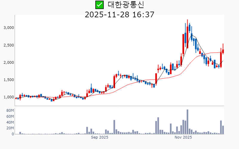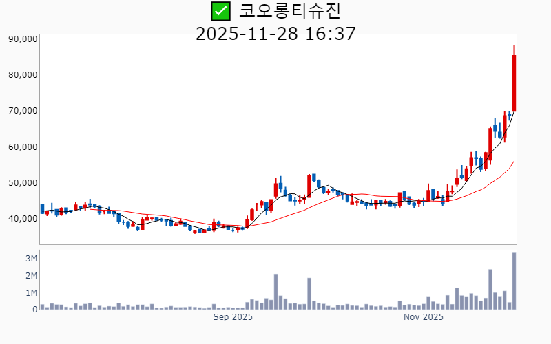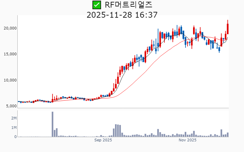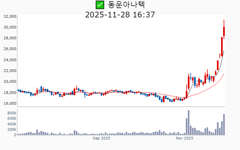 2025년 11월 28일 기준 주간 상승률 상위 15종목의 정보를 한눈에 볼 수 있도록 정리했습니다. 더욱 자세한 정보는 AWAKE 마켓브리핑 채널(https://t.me/awake_realtimeCheck)에서 확인하세요. 🔥 🚀 시장에서 강하고 수급이 집중되는 종목을 가장 빠르게 확인하고 싶다면, ⭐️⭐️신고가 플러스 소개(아래 링크를 클릭하세요)⭐️⭐️ https://fishy-trampoline-79b.notion.site/1d175164780f803e93abc1e53c38b42c ![]() ✅ 그래피(시총 : 2,153억) 상승률(5D) : +53.9% 종목섹터 : 의료기기 - 투명교정장치의 미국 FDA 승인으로 글로벌 시장 진출 본격화 기대감 - 유럽 시장 공략을 위한 'Graphy Lab Germany' 론칭 소식에 따른 호재 --------------------------------------------------- ![]() ✅ 이뮨온시아(시총 : 8,039억) 상승률(5D) : +49.4% 종목섹터 : 바이오/헬스케어 - 면역항암제 후보물질 '댄버스토투그'의 한국 희귀의약품 지정 신청 기대감. - CD47 항체 후보물질 임상 1상 착수와 면역항암제 개발 가속화 모멘텀. --------------------------------------------------- ![]() ✅ 삼현(시총 : 1.3조) 상승률(5D) : +44.2% 종목섹터 : 방산/ 자동차/부품/ HEV/ 로봇 - 글로벌 빅테크 2곳과의 수주 임박 소식에 따른 기대감. - 로봇 관련주 전반적 강세 속 휴머노이드 관절 공급 전망. --------------------------------------------------- ![]() ✅ 코오롱모빌리티그룹(시총 : 7,351억) 상승률(5D) : +38.8% 종목섹터 : - 내년 1월 상장폐지 예정 소식에 따른 투자자들의 단기 매수세 증가 - 지배구조 재정비 및 경영 승계 이슈로 인한 기대감 --------------------------------------------------- ![]() ✅ 동운아나텍(시총 : 5,886억) 상승률(5D) : +38.1% 종목섹터 : 폴더블/모바일 - 글로벌 최초 침 혈당측정기의 상용화가 임박하며 기대감 상승 - 헬스케어 신사업 경쟁력 강화 및 의료기기 테마 상승세 --------------------------------------------------- ![]() ✅ 코오롱생명과학(시총 : 6,348억) 상승률(5D) : +37.1% 종목섹터 : 바이오/헬스케어 - RNA 치료제 핵심 원료인 '포스포아미다이트' 확보와 포트폴리오 확장 소식 - 바이오 사업 재편과 글로벌 시장 공략 기대감 --------------------------------------------------- ![]() ✅ 에스피지(시총 : 1.1조) 상승률(5D) : +36.0% 종목섹터 : 로봇 - 삼성·LG의 휴머노이드 로봇 확대 계획에 따른 감속기 핵심 공급사로의 부각 기대감 - LG사이언스파크와의 로봇용 고효율 액츄에이터 및 감속기 기술협력 MOU 체결 호재 --------------------------------------------------- ![]() ✅ 노타(시총 : 1.1조) 상승률(5D) : +34.3% 종목섹터 : AI S/W - 삼성전자에 엑시노스 AI 최적화 기술 공급 계약 체결 소식에 따른 기대감 - AI 기술 관련주 전반적 강세 속 삼성전자와의 협업 호재 --------------------------------------------------- ![]() ✅ RF머트리얼즈(시총 : 1,590억) 상승률(5D) : +32.9% 종목섹터 : 희토류 - 엔비디아향 방열 모듈 공급으로 인한 매출 증대 기대감. - 우주급 반도체용 패키지 기술 개발 소식에 따른 기술력 강화 호재. --------------------------------------------------- ![]() ✅ 코오롱티슈진(시총 : 5.7조) 상승률(5D) : +32.6% 종목섹터 : 바이오/헬스케어 - TG-C의 임상3상 성공 가능성 증가 및 상업화 기대감 - 증권가의 목표가 50% 상향과 긍정적 평가에 따른 주목 --------------------------------------------------- ![]() ✅ 디아이씨(시총 : 2,843억) 상승률(5D) : +31.0% 종목섹터 : 자율주행/ 자동차/부품 - 현대차 아틀라스 프로젝트 본격화와 감속기 공급 1차 기술협의 소식 - 로봇 및 전기차 관련주 상승세와 대미 관세 인하 소급 기대감 --------------------------------------------------- ![]() ✅ 이노테크(시총 : 3,524억) 상승률(5D) : +30.2% 종목섹터 : - 반도체·2차전지 신사업 확장 소식에 따른 기대감 - 성공적인 상장 및 공모주 시장에서의 높은 수요 전망 --------------------------------------------------- ![]() ✅ 엔켐(시총 : 1.4조) 상승률(5D) : +29.8% 종목섹터 : 2차전지 - 중국 CATL과의 1.5조원 규모 전해액 공급 계약 가능성에 따른 기대감. - 프랑스 SIB와의 전해액 공급권 획득 소식에 따른 글로벌 수주 호재. --------------------------------------------------- ![]() ✅ 사피엔반도체(시총 : 2,576억) 상승률(5D) : +28.6% 종목섹터 : 메타버스/XR/ 반도체 - AR 글라스 제품 출시와 관련한 실적 성장 기대감. - 마이크로 LED 디스플레이 엔진 제조기업과의 58억 계약 체결 호재. --------------------------------------------------- ![]() ✅ 대한광통신(시총 : 3,009억) 상승률(5D) : +28.5% 종목섹터 : 통신장비/6G/ 전력설비 - 북미향 광통신케이블 매출 221% 급증으로 인한 AI 인프라 확장 수혜 - 삼성전자·현대차와의 K-양자산업 연합 합류에 따른 성장 기대감 --------------------------------------------------- |