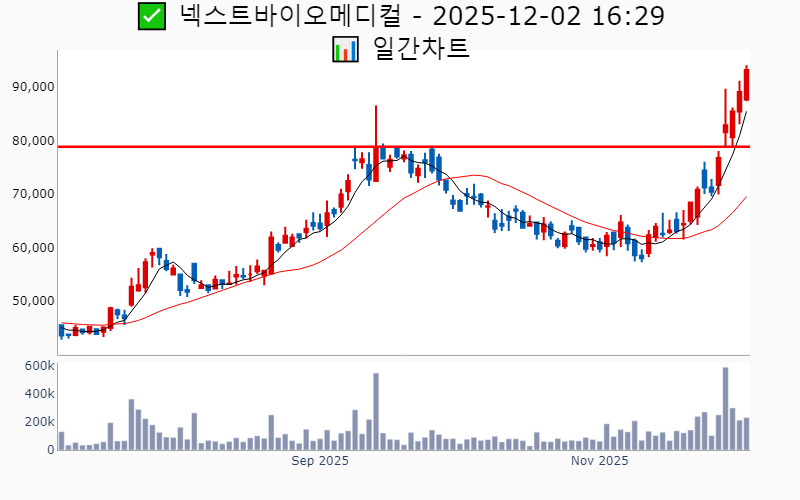 2025년 12월 2일 기준 최근 3일간 52주/역사적 신고가를 돌파한 종목 리스트를 한눈에 볼 수 있도록 정리했습니다. 돌파 이후 주가 흐름 및 돌파 후 조정(눌림) 종목 확인 가능합니다. 더욱 자세한 정보는 AWAKE 신고가 모니터링 채널(https://t.me/awake_realtimeCheck)에서 확인하세요. 🔥 🚀 시장에서 강하고 수급이 집중되는 종목을 가장 빠르게 확인하고 싶다면, ⭐️⭐️신고가 플러스 소개(아래 링크를 클릭하세요)⭐️⭐️ https://fishy-trampoline-79b.notion.site/1-1bd75164780f8043a665e84ea5e17548 ![]() ✅ JB금융지주 ❗️ 당일 역사적 최고가 돌파 (🔍 최고가 대비 : 2.7% 조정 상태) 거래대금 : 96억(최근 20일 평균) 시가총액 : 4.9조 현재주가 : 25,550원 - 역사적 최고가 : 25,550원(52주) --------------------------------------------------- ![]() ✅ 팬오션 ❗️ 당일 52주 최고가 돌파 (🔍 최고가 대비 : -0.1% 조정 상태) 거래대금 : 62억(최근 20일 평균) 시가총액 : 2.3조 현재주가 : 4,380원 - 52주 최고가 : 4,380원(52주) - 사상 최고가 : 8,770원(-89.7%) --------------------------------------------------- ![]() ✅ 차바이오텍 ❗️ 당일 52주 최고가 돌파 (🔍 최고가 대비 : 1.7% 조정 상태) 거래대금 : 74억(최근 20일 평균) 시가총액 : 1.1조 현재주가 : 14,540원 - 52주 최고가 : 14,677원(52주) - 사상 최고가 : 37,986원(-55.3%) --------------------------------------------------- ![]() ✅ 헬릭스미스 ❗️ 당일 52주 최고가 돌파 (🔍 최고가 대비 : -9.4% 조정 상태) 거래대금 : 24억(최근 20일 평균) 시가총액 : 3,918억 현재주가 : 8,500원 - 52주 최고가 : 8,500원(52주) - 사상 최고가 : 168,933원(+98.7%) --------------------------------------------------- ![]() ✅ 안트로젠 ❗️ 당일 52주 최고가 돌파 (🔍 최고가 대비 : 1.5% 조정 상태) 거래대금 : 8억(최근 20일 평균) 시가총액 : 2,922억 현재주가 : 29,200원 - 52주 최고가 : 29,200원(52주) - 사상 최고가 : 200,200원(+135.5%) --------------------------------------------------- ![]() ✅ BYC ❗️ 당일 52주 최고가 돌파 (🔍 최고가 대비 : 6.4% 조정 상태) 거래대금 : 2억(최근 20일 평균) 시가총액 : 2,633억 현재주가 : 42,150원 - 52주 최고가 : 44,200원(52주) - 사상 최고가 : 61,700원(-27.4%) --------------------------------------------------- ![]() ✅ 미원화학 ❗️ 당일 52주 최고가 돌파 (🔍 최고가 대비 : -0.8% 조정 상태) 거래대금 : 1억(최근 20일 평균) 시가총액 : 1,995억 현재주가 : 90,700원 - 52주 최고가 : 90,700원(52주) - 사상 최고가 : 106,000원(+24.7%) --------------------------------------------------- ![]() ✅ HS애드 ❗️ 당일 52주 최고가 돌파 (🔍 최고가 대비 : 2.5% 조정 상태) 거래대금 : 2억(최근 20일 평균) 시가총액 : 1,531억 현재주가 : 9,240원 - 52주 최고가 : 9,240원(52주) - 사상 최고가 : 11,700원(-86.2%) --------------------------------------------------- ![]() ✅ CJ CGV ❗️ 1일전 52주 최고가 돌파 (🔍 최고가 대비 : -8.2% 조정 상태) 거래대금 : 33억(최근 20일 평균) 시가총액 : 1.1조 현재주가 : 6,570원 - 52주 최고가 : 6,570원(52주) - 사상 최고가 : 87,779원(+3.3%) --------------------------------------------------- ![]() ✅ 아이티켐 ❗️ 1일전 77일 최고가 돌파 (🔍 최고가 대비 : 4.4% 조정 상태) 거래대금 : 95억(최근 20일 평균) 시가총액 : 5,681억 현재주가 : 45,150원 - 77일 최고가 : 46,850원(52주) --------------------------------------------------- ![]() ✅ 에이디테크놀로지 ❗️ 1일전 52주 최고가 돌파 (🔍 최고가 대비 : 2.9% 조정 상태) 거래대금 : 90억(최근 20일 평균) 시가총액 : 4,099억 현재주가 : 30,500원 - 52주 최고가 : 30,950원(52주) - 사상 최고가 : 48,500원(-42.9%) --------------------------------------------------- ![]() ✅ 사피엔반도체 ❗️ 1일전 52주 최고가 돌파 (🔍 최고가 대비 : 4.5% 조정 상태) 거래대금 : 23억(최근 20일 평균) 시가총액 : 2,704억 현재주가 : 32,900원 - 52주 최고가 : 33,800원(52주) - 사상 최고가 : 51,100원(-39.9%) --------------------------------------------------- ![]() ✅ 켐트로스 ❗️ 1일전 52주 최고가 돌파 (🔍 최고가 대비 : 4.8% 조정 상태) 거래대금 : 29억(최근 20일 평균) 시가총액 : 1,466억 현재주가 : 5,520원 - 52주 최고가 : 5,520원(52주) - 사상 최고가 : 17,600원(-79.3%) --------------------------------------------------- ![]() ✅ 에이티넘인베스트 ❗️ 1일전 52주 최고가 돌파 (🔍 최고가 대비 : 8.9% 조정 상태) 거래대금 : 11억(최근 20일 평균) 시가총액 : 1,433억 현재주가 : 2,985원 - 52주 최고가 : 3,020원(52주) - 사상 최고가 : 7,330원(-91.4%) --------------------------------------------------- ![]() ✅ 쎌바이오텍 ❗️ 1일전 52주 최고가 돌파 (🔍 최고가 대비 : 3.1% 조정 상태) 거래대금 : 3억(최근 20일 평균) 시가총액 : 1,347억 현재주가 : 14,330원 - 52주 최고가 : 14,550원(52주) - 사상 최고가 : 72,000원(-15.3%) --------------------------------------------------- ![]() ✅ 우림피티에스 ❗️ 1일전 52주 최고가 돌파 (🔍 최고가 대비 : 6.1% 조정 상태) 거래대금 : 132억(최근 20일 평균) 시가총액 : 1,327억 현재주가 : 9,830원 - 52주 최고가 : 10,100원(52주) - 사상 최고가 : 11,750원(-86.2%) --------------------------------------------------- ![]() ✅ 경인양행 ❗️ 1일전 52주 최고가 돌파 (🔍 최고가 대비 : 11.7% 조정 상태) 거래대금 : 16억(최근 20일 평균) 시가총액 : 1,315억 현재주가 : 3,160원 - 52주 최고가 : 3,505원(52주) - 사상 최고