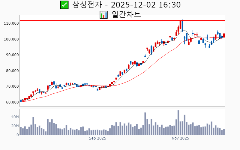 2025년 12월 2일 기준 52주/역사적 신고가에 근접한 종목 리스트를 한눈에 볼 수 있도록 정리했습니다. 더욱 자세한 정보는 AWAKE 신고가 모니터링 채널(https://t.me/awake_realtimeCheck)에서 확인하세요. 🔥 🚀 시장에서 강하고 수급이 집중되는 종목을 가장 빠르게 확인하고 싶다면, ⭐️⭐️신고가 플러스 소개(아래 링크를 클릭하세요)⭐️⭐️ https://fishy-trampoline-79b.notion.site/1-1bd75164780f8043a665e84ea5e17548 ![]() ✅ 삼성전자 🔍 역사적 최고가 8.1% 남음 거래대금 : 1.4조 시가총액 : 612.1조 현재주가 : 103,400원 - 역사적 최고가 : 111,800원(+8.1%) --------------------------------------------------- ![]() ✅ 삼성전자우 🔍 역사적 최고가 11.8% 남음 거래대금 : 1,679억 시가총액 : 63.6조 현재주가 : 77,900원 - 역사적 최고가 : 87,100원(+11.8%) --------------------------------------------------- ![]() ✅ KB금융 🔍 역사적 최고가 4.1% 남음 거래대금 : 1,755억 시가총액 : 50.4조 현재주가 : 132,000원 - 역사적 최고가 : 137,400원(+4.1%) --------------------------------------------------- ![]() ✅ 셀트리온 🔍 52주 최고가 8.1% 남음 거래대금 : 692억 시가총액 : 42.5조 현재주가 : 184,200원 - 52주 최고가 : 199,100원(+8.1%) - 사상 최고가 : 344,634원(+305.5%) --------------------------------------------------- ![]() ✅ SK스퀘어 🔍 역사적 최고가 4.9% 남음 거래대금 : 1,542억 시가총액 : 40.9조 현재주가 : 308,500원 - 역사적 최고가 : 323,500원(+4.9%) --------------------------------------------------- ![]() ✅ 삼성생명 🔍 역사적 최고가 8.4% 남음 거래대금 : 358억 시가총액 : 31.1조 현재주가 : 155,400원 - 역사적 최고가 : 168,400원(+8.4%) --------------------------------------------------- ![]() ✅ 현대모비스 🔍 52주 최고가 2.4% 남음 거래대금 : 912억 시가총액 : 28.8조 현재주가 : 317,000원 - 52주 최고가 : 324,500원(+2.4%) - 사상 최고가 : 368,500원(+333.5%) --------------------------------------------------- ![]() ✅ 삼성화재 🔍 역사적 최고가 5.0% 남음 거래대금 : 501억 시가총액 : 22.9조 현재주가 : 497,000원 - 역사적 최고가 : 522,000원(+5.0%) --------------------------------------------------- ![]() ✅ 삼성전기 🔍 역사적 최고가 2.0% 남음 거래대금 : 1,135억 시가총액 : 18.8조 현재주가 : 252,000원 - 역사적 최고가 : 257,000원(+2.0%) --------------------------------------------------- ![]() ✅ SK 🔍 52주 최고가 8.1% 남음 거래대금 : 372억 시가총액 : 18.7조 현재주가 : 258,500원 - 52주 최고가 : 279,500원(+8.1%) - 사상 최고가 : 358,500원(+321.8%) --------------------------------------------------- ![]() ✅ KT&G 🔍 역사적 최고가 1.7% 남음 거래대금 : 268억 시가총액 : 17.1조 현재주가 : 144,800원 - 역사적 최고가 : 147,200원(+1.7%) --------------------------------------------------- ![]() ✅ LS ELECTRIC 🔍 역사적 최고가 7.9% 남음 거래대금 : 856억 시가총액 : 14.2조 현재주가 : 472,500원 - 역사적 최고가 : 510,000원(+7.9%) --------------------------------------------------- ![]() ✅ 에코프로 🔍 52주 최고가 6.3% 남음 거래대금 : 4,258억 시가총액 : 12.8조 현재주가 : 94,100원 - 52주 최고가 : 100,000원(+6.3%) - 사상 최고가 : 255,653원(+200.8%) --------------------------------------------------- ![]() ✅ 에이피알 🔍 역사적 최고가 11.5% 남음 거래대금 : 902억 시가총액 : 9.3조 현재주가 : 247,500원 - 역사적 최고가 : 276,000원(+11.5%) --------------------------------------------------- ![]() ✅ 레인보우로보틱스 🔍 역사적 최고가 11.2% 남음 거래대금 : 1,046억 시가총액 : 8.6조 현재주가 : 444,500원 - 역사적 최고가 : 494,500원(+11.2%) --------------------------------------------------- ![]() ✅ 한국타이어앤테크놀로지 🔍 52주 최고가 0.3% 남음 거래대금 : 207억 시가총액 : 7.6조 현재주가 : 61,300원 - 52주 최고가 : 61,500원(+0.3%) - 사상 최고가 : 66,900원(-21.3%) --------------------------------------------------- ![]() ✅ 삼성증권 🔍 역사적 최고가 3.2% 남음 거래대금 : 261억 시가총액 : 7.2조 현재주가 : 80,700원 - 역사적 최고가 : 83,300원(+3.2%) --------------------------------------------------- ![]() ✅ LG이노텍 🔍 52주 최고가 4.2% 남음 거래대금 : 390억 시가총액 : 5.9조 현재주가 : 248,000원 - 52주 최고가 : 258,500원(+4.2%) - 사상 최고가 : 414,500원(+387.6%) --------------------------------------------------- ![]() ✅ GS 🔍 52주 최고가 6.9% 남음 거래대금 : 104억 시가총액 : 5.4조 현재주가 : 57,600원 - 52주 최고가 : 61,600원(+6.9%) - 사상 최고가 : 76,700원(-9.8%) --------------------------------------------------- ![]() ✅ BNK금융지주 🔍 역사적 최고가 2.5% 남음 거래대금 : 191억 시가총액 : 4.9조 현재주가 : 15,620원 - 역사적 최고가 : 16,010원(+2.5%) --------------------------------------------------- ![]() ✅ 산일전기 🔍 역사적 최고가 14.4% 남음 거래대금 : 1,135억 시가총액 : 4.5조 현재주가 : 148,800원 - 역사적 최고가 : 170,300원(+14.4%) --------------------------------------------------- ![]() ✅ 영원무역 🔍 역사적 최고가 0.6% 남음 거래대금 : 166억 시가총액 : 4.1조 현재주가 : 93,400원 - 역사적 최고가 : 94,000원(+0.6%) --------------------------------------------------- ![]() ✅ 현대엘리베이터 🔍 역사적 최고가 4.5% 남음 거래대금 : 297억 시가총액 : 3.4조 현재주가 : 87,300원 - 역사적 최고가 : 91,200원(+4.5%) --------------------------------------------------- ![]() ✅ 이오테크닉스 🔍 역사적 최고가 9.2% 남