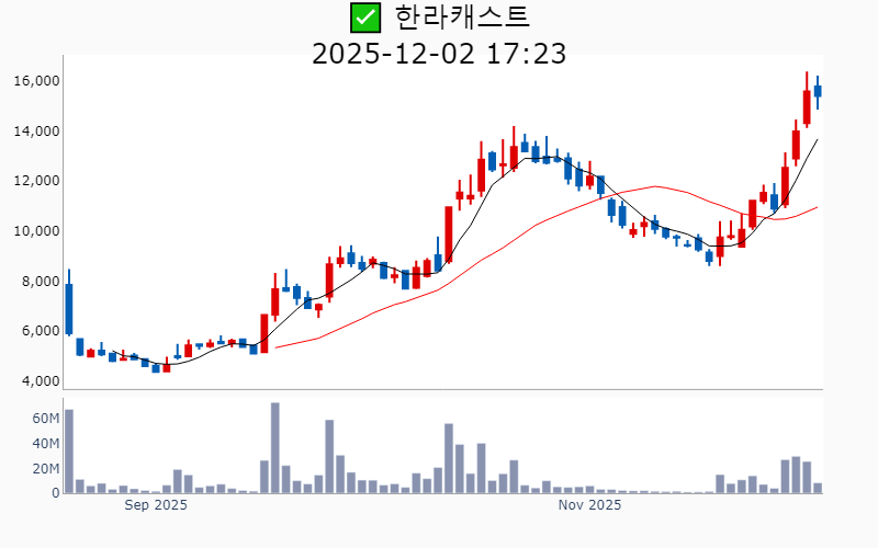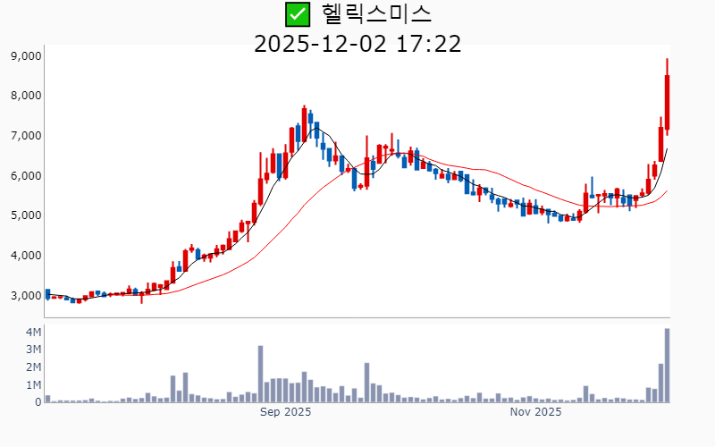 2025년 12월 2일 기준 주간 상승률 상위 15종목의 정보를 한눈에 볼 수 있도록 정리했습니다. 더욱 자세한 정보는 AWAKE 마켓브리핑 채널(https://t.me/awake_realtimeCheck)에서 확인하세요. 🔥 🚀 시장에서 강하고 수급이 집중되는 종목을 가장 빠르게 확인하고 싶다면, ⭐️⭐️신고가 플러스 소개(아래 링크를 클릭하세요)⭐️⭐️ https://fishy-trampoline-79b.notion.site/1d175164780f803e93abc1e53c38b42c ![]() ✅ 헬릭스미스(시총 : 3,319억) 상승률(5D) : +52.9% 종목섹터 : 바이오/헬스케어 - 하지허혈증 치료제 '엔젠시스'의 중국 허가 임박 기대감. - 중단된 엔젠시스 미국 임상 3상 재개 소식. --------------------------------------------------- ![]() ✅ 한국피아이엠(시총 : 3,603억) 상승률(5D) : +52.4% 종목섹터 : 로봇 - 휴머노이드 로봇 손 감속기 본격 진출로 인한 기대감. - 글로벌 휴머노이드사와의 납품 논의로 인한 기술력 부각. --------------------------------------------------- ![]() ✅ 디아이씨(시총 : 3,718억) 상승률(5D) : +49.6% 종목섹터 : 자율주행/ 자동차/부품 - 현대차와의 협력을 통한 로봇 아틀라스 관절 감속기 공급 논의 부각. - 테슬라 로봇 양산 본격화에 따른 부품 공급사로서의 주목. --------------------------------------------------- ![]() ✅ 에스피지(시총 : 1.4조) 상승률(5D) : +45.2% 종목섹터 : 로봇 - 엔비디아 젠슨 황의 AI·로봇 관련 발언 이후 로봇 핵심 부품 기업으로 부각된 점이 상승 요인. - 삼성·LG의 휴머노이드 확대에 따른 주요 부품 공급사로서의 기대감. --------------------------------------------------- ![]() ✅ 고영(시총 : 1.8조) 상승률(5D) : +44.5% 종목섹터 : 로봇/ 의료AI - 뇌수술용 의료 로봇의 미국 FDA 인증 및 첫 출하 소식에 따른 기대감. - 3분기 영업이익 급증과 미국 매출 사상 최대 기록에 따른 호재. --------------------------------------------------- ![]() ✅ 한라캐스트(시총 : 5,683억) 상승률(5D) : +41.3% 종목섹터 : 로봇 - 글로벌 AI 자동차 기업과의 협력으로 로봇 및 전장 통합 수주 1100억 돌파 호재 - 로봇 분야 고객사 확보로 인한 성장성 기대감 --------------------------------------------------- ![]() ✅ 피노(시총 : 3,599억) 상승률(5D) : +38.8% 종목섹터 : 2차전지 - 전구체 사업 본격화 및 글로벌 1위 CNGR의 전폭 지원 소식 - 엘앤에프와의 전구체 계약으로 작년 매출 추월 기대감 --------------------------------------------------- ![]() ✅ 대한광통신(시총 : 3,075억) 상승률(5D) : +37.9% 종목섹터 : 통신장비/6G/ 전력설비 - 삼성전자·현대차와의 K-양자산업 연합 합류 소식에 급등세. - 무기 신사업 기대감과 AI 데이터센터용 저손실 광섬유 상용화 추진 기대감. --------------------------------------------------- ![]() ✅ 삼현(시총 : 1.3조) 상승률(5D) : +37.5% 종목섹터 : 방산/ 자동차/부품/ HEV/ 로봇 - 고하중 자율주행로봇 양산형 모델 공개에 따른 기술력 부각. - 빅테크 2곳 수주 임박 소식에 따른 기대감. --------------------------------------------------- ![]() ✅ 아이티켐(시총 : 5,895억) 상승률(5D) : +36.6% 종목섹터 : 바이오/헬스케어 - OLED 중수 재활용설비 9배 확대 계획 발표 속 사업 성장 기대감 - 첨단 소재 CDMO 기업으로의 도약 목표 발표에 따른 투자자 관심 증가 --------------------------------------------------- ![]() ✅ 큐렉소(시총 : 5,071억) 상승률(5D) : +36.0% 종목섹터 : 로봇 - 인공고관절 수술로봇 국내 허가 획득에 따른 기대감. - 3분기 흑자전환과 의료로봇 매출국가 다변화에 힘입은 긍정적 전망. --------------------------------------------------- ![]() ✅ 에스비비테크(시총 : 2,157억) 상승률(5D) : +31.6% 종목섹터 : 로봇 - 일본 50년 독점을 깨고 휴머노이드 감속기 양산 돌입 소식에 따른 기대감. - 현대차 '모베드' 핵심부품 개발 협력에 따른 기술력 부각. --------------------------------------------------- ![]() ✅ 삼양엔씨켐(시총 : 2,408억) 상승률(5D) : +31.2% 종목섹터 : 유리기판 - 반도체 핵심 소재 국산화와 고마진 제품군 매출 비중 확대에 따른 성장 기대감. - 유리기판용 포토레지스트 글로벌 고객사와의 개발 성공에 따른 역대 최대 실적 달성 전망. --------------------------------------------------- ![]() ✅ YTN(시총 : 2,114억) 상승률(5D) : +29.9% 종목섹터 : 선거 - 법원의 방통위 YTN 최대주주 변경 승인 취소 판결로 민영화 원점 회귀 기대감 - 정부의 YTN 매각 전수조사 지시로 향후 경영 안정성 회복 전망 --------------------------------------------------- ![]() ✅ 안트로젠(시총 : 2,582억) 상승률(5D) : +28.6% 종목섹터 : - 일본 품목허가 기대감에 따른 주가 상승. - 국산 세포치료제의 일본 진출 계획 발표 호재. --------------------------------------------------- |