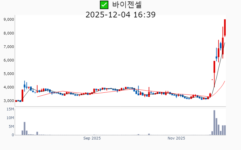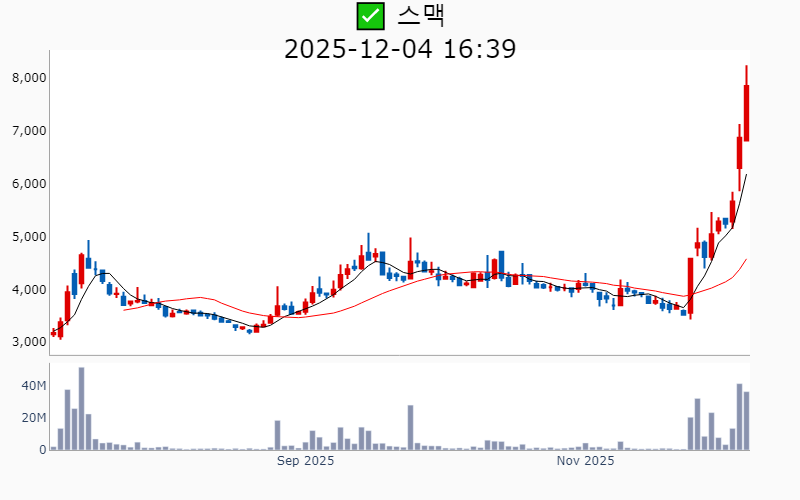 2025년 12월 4일 기준 주간 상승률 상위 15종목의 정보를 한눈에 볼 수 있도록 정리했습니다. 더욱 자세한 정보는 AWAKE 마켓브리핑 채널(https://t.me/awake_realtimeCheck)에서 확인하세요. 🔥 🚀 시장에서 강하고 수급이 집중되는 종목을 가장 빠르게 확인하고 싶다면, ⭐️⭐️신고가 플러스 소개(아래 링크를 클릭하세요)⭐️⭐️ https://fishy-trampoline-79b.notion.site/1d175164780f803e93abc1e53c38b42c ![]() ✅ 동신건설(시총 : 1,504억) 상승률(5D) : +68.6% 종목섹터 : 이재명/ 건설/주택/ 지하화 - 이재명 테마주로 묶이며 급등한 현상 - 정부의 주택공급 확대 정책에 따른 건설주 강세 --------------------------------------------------- ![]() ✅ 안트로젠(시총 : 2,997억) 상승률(5D) : +59.5% 종목섹터 : 바이오/헬스케어 - 일본에서 세포치료제 품목허가 기대감 - 줄기세포치료제 테마 강세 --------------------------------------------------- ![]() ✅ 천일고속(시총 : 5,703억) 상승률(5D) : +59.2% 종목섹터 : 밸류업 지수 - 서울고속버스터미널 재개발 기대감에 따른 주가 급등. - 강남 고속터미널 초고층 개발 소식에 따른 투자자 관심 증가. --------------------------------------------------- ![]() ✅ 인벤티지랩(시총 : 9,685억) 상승률(5D) : +57.8% 종목섹터 : 비만 치료제/ 바이오/헬스케어 - 베링거인겔하임과의 물질이전계약 및 연구 확장 기대감. - 장기지속형 비만치료제 원천 특허 등록 및 상업화 가능성 제시. --------------------------------------------------- ![]() ✅ 링크솔루션(시총 : 2,725억) 상승률(5D) : +49.2% 종목섹터 : 로봇 - 현대차와의 3D프린터 공급 계약 체결로 매출 확대 기대감. - 방산 및 로봇 분야에서의 신규 수주와 사업 다각화 기대감. --------------------------------------------------- ![]() ✅ 스맥(시총 : 4,681억) 상승률(5D) : +48.5% 종목섹터 : 로봇/ 드론/UAM - 현대위아 공작기계 사업부 인수 완료로 공작기계 선두권 도약 기대감 - SNT그룹의 최대주주 재등극 소식에 따른 경영권 안정화 전망 --------------------------------------------------- ![]() ✅ 바이젠셀(시총 : 1,562억) 상승률(5D) : +46.6% 종목섹터 : 바이오/헬스케어 - NK·T세포림프종 치료제 임상 2상 성공적 발표에 따른 기대감. - 첨생법 시행에 따른 세포치료제 기업들의 강세 전망. --------------------------------------------------- ![]() ✅ 오름테라퓨틱(시총 : 1.4조) 상승률(5D) : +44.2% 종목섹터 : 바이오/헬스케어 - 미국혈액학회에서 항암제 후보 'ORM-1153' 전임상 데이터 발표로 인한 긍정적 기대감. - 글로벌 4대 콘퍼런스에 국내 유일 초청받으며 세계적 기술력 인정받은 호재. --------------------------------------------------- ![]() ✅ 엘앤케이바이오(시총 : 2,968억) 상승률(5D) : +43.2% 종목섹터 : 의료기기/ 바이오/헬스케어 - 글로벌 메이저사와의 파트너십 추진 소식과 글로벌 공급체계 준비 완료 기대감 - 오목가슴 임플란트 ‘팩투스’의 미 FDA 승인과 동남아 시장 공략 본격화 전망 --------------------------------------------------- ![]() ✅ 현대오토에버(시총 : 6.1조) 상승률(5D) : +40.3% 종목섹터 : 로봇/ 자율주행 - 정의선-젠슨 황 회동에 따른 현대차 계열사와의 협력 기대감 - 엔비디아 AI 동맹 최대 수혜 기대에 따른 투자 심리 개선 --------------------------------------------------- ![]() ✅ 아이티켐(시총 : 6,254억) 상승률(5D) : +36.7% 종목섹터 : 바이오/헬스케어 - SMR에 사용되는 중수의 국내 최초 개발 및 재활용 상업화 성공 기대감 - OLED 중수 재활용설비 9배 확대 계획 발표에 따른 성장성 전망 --------------------------------------------------- ![]() ✅ 뉴로핏(시총 : 3,392억) 상승률(5D) : +33.6% 종목섹터 : 의료AI - '뉴로핏 아쿠아 AD 플러스'가 혁신의료기술로 선정되며 의료 현장 진입 가속화 기대감. - 일본 의료센터와의 '뉴로핏 아쿠아' 공급 계약 체결로 해외 시장 진출 본격화 전망. --------------------------------------------------- ![]() ✅ 와이투솔루션(시총 : 1,481억) 상승률(5D) : +33.3% 종목섹터 : 로봇 - HRT로보틱스 인수 및 신공장 준공 소식에 따른 로봇 신사업 기대감. - 황반변성 세포치료제의 FDA RMAT 지정 및 국제학술지 게재에 따른 기술수출 기대감. --------------------------------------------------- ![]() ✅ 프로티나(시총 : 1.0조) 상승률(5D) : +32.7% 종목섹터 : 바이오/헬스케어/ 의료AI - 삼성바이오에피스와의 AI 항체 신약 공동 개발 소식에 따른 기대감. - JP모건 투자 유치 소식에 따른 글로벌 제약업계 관심 증가. --------------------------------------------------- ![]() ✅ 토모큐브(시총 : 7,114억) 상승률(5D) : +31.3% 종목섹터 : 유리기판/ 바이오/헬스케어/ 의료AI - 차세대 소형 홀로토모그래피 'HT-X1 mini' 출시로 연구용 현미경 시장 본격 공략 기대감. - 세계 유일 오가노이드 측정 솔루션 보유로 빅파마와 3조 글로벌 시장 독점 전망. --------------------------------------------------- |