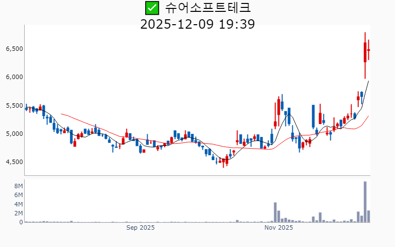 2025년 12월 9일 기준 주간 상승률 상위 15종목의 정보를 한눈에 볼 수 있도록 정리했습니다. 더욱 자세한 정보는 AWAKE 마켓브리핑 채널(https://t.me/awake_realtimeCheck)에서 확인하세요. 🔥 🚀 시장에서 강하고 수급이 집중되는 종목을 가장 빠르게 확인하고 싶다면, ⭐️⭐️신고가 플러스 소개(아래 링크를 클릭하세요)⭐️⭐️ https://fishy-trampoline-79b.notion.site/1d175164780f803e93abc1e53c38b42c ![]() ✅ 현대약품(시총 : 2,102억) 상승률(5D) : +90.4% 종목섹터 : 해리스 - 두피에 바르는 탈모약의 효과가 입증되면서 판권 확보 기대감. - 신약개발과 R&D 투자 확대에 대한 긍정적 전망. --------------------------------------------------- ![]() ✅ 성호전자(시총 : 2,738억) 상승률(5D) : +72.5% 종목섹터 : 냉각 - 에이디에스테크 인수로 신사업 진출 가속 기대감 - 엔비디아 협력업체 인수로 AI 밸류체인 진입 전망 --------------------------------------------------- ![]() ✅ 아우토크립트(시총 : 1,469억) 상승률(5D) : +50.7% 종목섹터 : - 현대차 및 엔비디아와의 협업 부각에 따른 자율주행 보안 기술 주목. - 유럽 보안 규제 대응 수주 확대와 중장비·로봇 산업으로의 영역 확장 기대감. --------------------------------------------------- ![]() ✅ 삼성제약(시총 : 1,669억) 상승률(5D) : +47.2% 종목섹터 : - 진행성핵상마비 치료제 판권 취득 소식에 따른 기대감. - 젬백스와의 기술이전 계약 체결로 인한 호재. --------------------------------------------------- ![]() ✅ 현대오토에버(시총 : 8.3조) 상승률(5D) : +37.5% 종목섹터 : 로봇/ 자율주행/ 자동차/부품 - 정의선-젠슨 황 회동 및 엔비디아 AI 동맹 최대 수혜 기대감. - 깜짝 실적 발표 및 IT아웃소싱 15% 성장 소식. --------------------------------------------------- ![]() ✅ 이지케어텍(시총 : 1,555억) 상승률(5D) : +34.6% 종목섹터 : 바이오/헬스케어/ 원격의료/의료대란 - 100% 무상증자 발표에 따른 주가 상승 기대감 - 사우디 국부펀드 산하 기업과의 협업으로 중동 시장 공략 가속화 전망 --------------------------------------------------- ![]() ✅ 이수스페셜티케미컬(시총 : 1.8조) 상승률(5D) : +29.2% 종목섹터 : 2차전지/ 전고체 배터리 - 황화리튬 상업화 설비 착공과 대량 생산 체제 구축 본격화 기대감. - 전고체 배터리 시장 선점을 위한 선제적 투자와 글로벌 공급망 확보 호재. --------------------------------------------------- ![]() ✅ 나노엔텍(시총 : 1,171억) 상승률(5D) : +27.0% 종목섹터 : 비만 치료제/ 바이오/헬스케어 - 로레알과의 협력으로 '셀 바이오프린트' 론칭 소식에 따른 뷰티테크 시장 진출 기대감. - 차세대 바이오 로봇 공개로 인한 기술 혁신 및 시장 확장 전망. --------------------------------------------------- ![]() ✅ 경인양행(시총 : 1,357억) 상승률(5D) : +26.4% 종목섹터 : 반도체 - 포토레지스트 핵심 원재료의 전 세계 공급망에서 30% 점유로 일본 수출제한에 따른 대체 공급망 부각. - 전자재료 사업의 체질 개선과 반도체 소재 국산화 추진 기대감. --------------------------------------------------- ![]() ✅ 에코프로(시총 : 16.0조) 상승률(5D) : +26.1% 종목섹터 : 2차전지 - 헝가리 양극재 공장 준공으로 유럽 시장 공략 본격화 기대감 - 이차전지 긍정 전망에 따른 주가 상승 전망 --------------------------------------------------- ![]() ✅ 쓰리빌리언(시총 : 4,869억) 상승률(5D) : +25.2% 종목섹터 : AI S/W/ 의료AI - 아스트라제네카와 희귀질환 신속진단 MOU 체결 소식 - 미국 시장 진출 본격화 및 글로벌 희귀질환 치료제 시장 진출 기대감 --------------------------------------------------- ![]() ✅ 오름테라퓨틱(시총 : 1.6조) 상승률(5D) : +24.1% 종목섹터 : 바이오/헬스케어 - 글로벌 암학회 연속 출격과 신약 기술이전 속도 기대감. - 'ORM-1153·1023' 개발 속도 증가에 따른 긍정적 전망. --------------------------------------------------- ![]() ✅ 슈어소프트테크(시총 : 3,473억) 상승률(5D) : +23.7% 종목섹터 : 자율주행 - 엔비디아·현대차와의 자율주행·SDV 기술 공동개발 소식에 따른 기대감. - AI 시장을 겨냥한 신무기 발표 및 AI-MASTER 인증제도 참여 호재. --------------------------------------------------- ![]() ✅ 예스티(시총 : 3,937억) 상승률(5D) : +23.2% 종목섹터 : - HPSP와의 특허 분쟁에서 연이어 승소하며 불확실성 해소. - 차세대 반도체 고압산화공정장비 국책과제 주관기관 선정 기대감. --------------------------------------------------- ![]() ✅ 원익홀딩스(시총 : 2.3조) 상승률(5D) : +22.2% 종목섹터 : 로봇 - 메타와의 로봇 손 개발 협업 소식과 AI 로봇 수요 확대 기대감. - K-휴머노이드 연합 참여를 통한 데이터 및 장비 공급 기대감. --------------------------------------------------- |