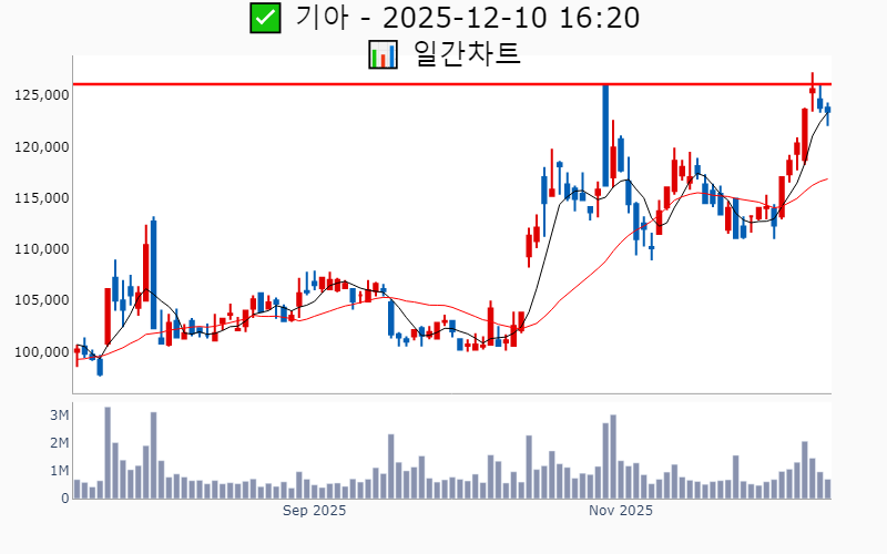 2025년 12월 10일 기준 52주/역사적 신고가에 근접한 종목 리스트를 한눈에 볼 수 있도록 정리했습니다. 더욱 자세한 정보는 AWAKE 신고가 모니터링 채널(https://t.me/awake_realtimeCheck)에서 확인하세요. 🔥 🚀 시장에서 강하고 수급이 집중되는 종목을 가장 빠르게 확인하고 싶다면, ⭐️⭐️신고가 플러스 소개(아래 링크를 클릭하세요)⭐️⭐️ https://fishy-trampoline-79b.notion.site/1-1bd75164780f8043a665e84ea5e17548 ![]() ✅ 삼성전자 🔍 역사적 최고가 3.5% 남음 거래대금 : 1.3조 시가총액 : 639.3조 현재주가 : 108,000원 - 역사적 최고가 : 111,800원(+3.5%) --------------------------------------------------- ![]() ✅ 기아 🔍 52주 최고가 2.2% 남음 거래대금 : 862억 시가총액 : 48.2조 현재주가 : 123,400원 - 52주 최고가 : 126,100원(+2.2%) - 사상 최고가 : 132,300원(+53.5%) --------------------------------------------------- ![]() ✅ 셀트리온 🔍 52주 최고가 7.2% 남음 거래대금 : 572억 시가총액 : 42.9조 현재주가 : 185,700원 - 52주 최고가 : 199,100원(+7.2%) - 사상 최고가 : 344,634원(+299.8%) --------------------------------------------------- ![]() ✅ 현대모비스 🔍 역사적 최고가 2.2% 남음 거래대금 : 1,101억 시가총액 : 32.8조 현재주가 : 362,000원 - 역사적 최고가 : 370,000원(+2.2%) --------------------------------------------------- ![]() ✅ 삼성생명 🔍 역사적 최고가 9.1% 남음 거래대금 : 267억 시가총액 : 30.9조 현재주가 : 154,400원 - 역사적 최고가 : 168,400원(+9.1%) --------------------------------------------------- ![]() ✅ 고려아연 🔍 52주 최고가 3.7% 남음 거래대금 : 298억 시가총액 : 28.6조 현재주가 : 1,480,000원 - 52주 최고가 : 1,535,000원(+3.7%) - 사상 최고가 : 2,124,000원(+2364.0%) --------------------------------------------------- ![]() ✅ SK 🔍 52주 최고가 5.5% 남음 거래대금 : 363억 시가총액 : 19.2조 현재주가 : 265,000원 - 52주 최고가 : 279,500원(+5.5%) - 사상 최고가 : 358,500원(+315.9%) --------------------------------------------------- ![]() ✅ LS ELECTRIC 🔍 역사적 최고가 3.4% 남음 거래대금 : 532억 시가총액 : 15.0조 현재주가 : 501,000원 - 역사적 최고가 : 518,000원(+3.4%) --------------------------------------------------- ![]() ✅ 에이비엘바이오 🔍 역사적 최고가 3.4% 남음 거래대금 : 3,101억 시가총액 : 11.2조 현재주가 : 203,000원 - 역사적 최고가 : 210,000원(+3.4%) --------------------------------------------------- ![]() ✅ SK바이오팜 🔍 52주 최고가 5.6% 남음 거래대금 : 205억 시가총액 : 10.7조 현재주가 : 136,100원 - 52주 최고가 : 143,700원(+5.6%) - 사상 최고가 : 219,000원(+154.1%) --------------------------------------------------- ![]() ✅ 레인보우로보틱스 🔍 역사적 최고가 4.9% 남음 거래대금 : 1,084억 시가총액 : 9.1조 현재주가 : 471,500원 - 역사적 최고가 : 494,500원(+4.9%) --------------------------------------------------- ![]() ✅ 리가켐바이오 🔍 역사적 최고가 4.0% 남음 거래대금 : 627억 시가총액 : 6.9조 현재주가 : 188,900원 - 역사적 최고가 : 196,500원(+4.0%) --------------------------------------------------- ![]() ✅ 코오롱티슈진 🔍 52주 최고가 5.7% 남음 거래대금 : 461억 시가총액 : 6.9조 현재주가 : 82,600원 - 52주 최고가 : 87,300원(+5.7%) - 사상 최고가 : 139,260원(+61.6%) --------------------------------------------------- ![]() ✅ 영원무역 🔍 역사적 최고가 6.1% 남음 거래대금 : 41억 시가총액 : 3.9조 현재주가 : 88,600원 - 역사적 최고가 : 94,000원(+6.1%) --------------------------------------------------- ![]() ✅ DB하이텍 🔍 52주 최고가 8.0% 남음 거래대금 : 306억 시가총액 : 2.9조 현재주가 : 66,200원 - 52주 최고가 : 71,500원(+8.0%) - 사상 최고가 : 84,900원(-1.5%) --------------------------------------------------- ![]() ✅ 올릭스 🔍 역사적 최고가 6.6% 남음 거래대금 : 1,232억 시가총액 : 2.7조 현재주가 : 132,700원 - 역사적 최고가 : 141,500원(+6.6%) --------------------------------------------------- ![]() ✅ 한솔케미칼 🔍 52주 최고가 7.3% 남음 거래대금 : 75억 시가총액 : 2.7조 현재주가 : 234,000원 - 52주 최고가 : 251,000원(+7.3%) - 사상 최고가 : 378,500원(+339.1%) --------------------------------------------------- ![]() ✅ 대덕전자 🔍 역사적 최고가 9.5% 남음 거래대금 : 1,039억 시가총액 : 2.4조 현재주가 : 49,500원 - 역사적 최고가 : 54,200원(+9.5%) --------------------------------------------------- ![]() ✅ 원익홀딩스 🔍 역사적 최고가 7.2% 남음 거래대금 : 1,969억 시가총액 : 2.4조 현재주가 : 30,750원 - 역사적 최고가 : 32,950원(+7.2%) --------------------------------------------------- ![]() ✅ 신세계 🔍 52주 최고가 3.9% 남음 거래대금 : 125억 시가총액 : 2.4조 현재주가 : 245,500원 - 52주 최고가 : 255,000원(+3.9%) - 사상 최고가 : 475,500원(+451.6%) --------------------------------------------------- ![]() ✅ 오스코텍 🔍 52주 최고가 9.1% 남음 거래대금 : 330억 시가총액 : 2.3조 현재주가 : 59,600원 - 52주 최고가 : 65,000원(+9.1%) - 사상 최고가 : 67,676원(-21.5%) --------------------------------------------------- ![]() ✅ 하이젠알앤엠 🔍 역사적 최고가 8.7% 남음 거래대금 : 118억 시가총액 : 2.0조 현재주가 : 63,500원 - 역사적 최고가 : 69,000원(+8.7%) --------------------------------------------------- ![]() ✅ 고영 🔍 52주 최고가 7.2% 남음 거래대금 : 1,262억 시가총액 : 1.9조 현재주가 : 26,950원 - 52주 최고가 : 28,900원(+7.2%) - 사상 최고가 : 29,550