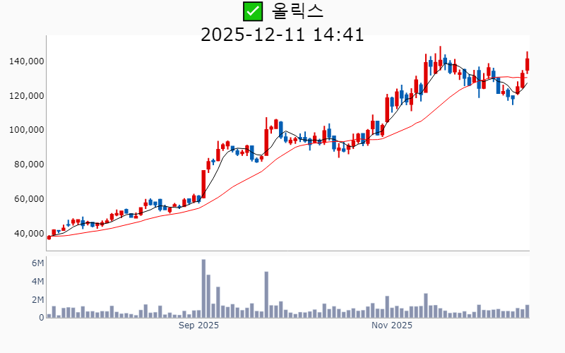 2025년 12월 11일 기준 장중 잠정수급 기관 순매수 상위 20종목의 정보를 한눈에 볼 수 있도록 정리했습니다. 더욱 자세한 정보는 AWAKE 신고가 모니터링 채널(https://t.me/awake_realtimeCheck)에서 확인하세요. 🔥 🚀 훨씬 깊이있는 장중수급 정보(매수/매도 전환, 신규유입, 업종별 강도 등)을 확인하고 싶다면, ⭐️⭐️신고가 플러스 소개(아래 링크를 클릭하세요)⭐️⭐️ https://fishy-trampoline-79b.notion.site/1-1bd75164780f8043a665e84ea5e17548 ![]() ✅ 일동제약(시총 : 1.3조) +28.0% - 투신, 연기금 매수 - 외국인 매도 --------------------------------------------------- ![]() ✅ 대한조선(시총 : 3.0조) +2.6% - 투신, 연기금 매수 - 외국인 매도 --------------------------------------------------- ![]() ✅ 올릭스(시총 : 2.8조) +6.3% - 투신, 연기금 매수 - 외국인 매수 --------------------------------------------------- ![]() ✅ 한화엔진(시총 : 3.8조) +0.2% - 투신, 보험 매수 - 외국인 매도 --------------------------------------------------- ![]() ✅ 이수페타시스(시총 : 11.0조) +1.4% - 투신, 보험 매수 - 외국인 매도 --------------------------------------------------- ![]() ✅ ESR켄달스퀘어리츠(시총 : 1.1조) +6.2% - 투신 매수 - 외국인 매수 --------------------------------------------------- ![]() ✅ 씨에스윈드(시총 : 1.9조) +4.4% - 투신, 보험 매수 - 외국인 매도 --------------------------------------------------- ![]() ✅ 에스티아이(시총 : 4,757억) +2.0% - 투신, 보험 매수 - 외국인 매도 --------------------------------------------------- ![]() ✅ 현대건설(시총 : 8.2조) +2.9% - 투신, 보험 매수 - 외국인 매수 --------------------------------------------------- ![]() ✅ 스피어(시총 : 3,617억) +13.8% - 투신, 보험 매수 - 외국인 매수 --------------------------------------------------- ![]() ✅ 나이벡(시총 : 5,783억) +5.3% - 투신 매수 - 외국인 매수 --------------------------------------------------- ![]() ✅ 이지스밸류플러스리츠(시총 : 3,014억) +2.1% - 투신 매수 - 외국인 매수 --------------------------------------------------- ![]() ✅ 일진전기(시총 : 2.7조) +3.8% - 연기금, 투신 매수 - 외국인 매도 --------------------------------------------------- ![]() ✅ 씨어스테크놀로지(시총 : 1.5조) +3.4% - 투신 매수 - 외국인 매도 --------------------------------------------------- ![]() ✅ 삼성전기(시총 : 20.4조) +1.5% - 투신, 연기금 매수 - 외국인 매도 --------------------------------------------------- ![]() ✅ 프로티나(시총 : 1.0조) +4.2% - 투신 매수 - 외국인 매수 --------------------------------------------------- ![]() ✅ 로보티즈(시총 : 4.4조) +6.2% - 연기금, 투신 매수 - 외국인 매수 --------------------------------------------------- ![]() ✅ 동서(시총 : 3.0조) +10.1% - 투신, 연기금 매수 - 외국인 매도 --------------------------------------------------- ![]() ✅ 파라다이스(시총 : 1.7조) +1.0% - 투신, 보험 매수 - 외국인 매도 --------------------------------------------------- ![]() ✅ 삼성에피스홀딩스(시총 : 14.3조) +1.8% - 투신 매수 - 외국인 매도 --------------------------------------------------- |