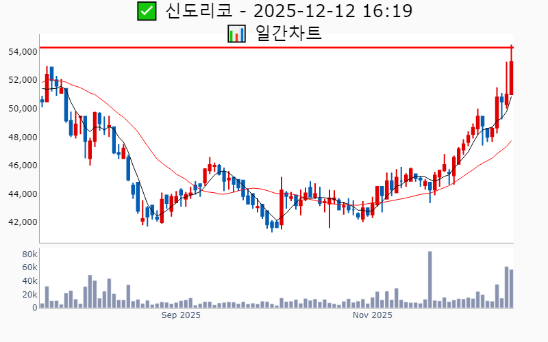2025년 12월 12일 기준 최근 3일간 52주/역사적 신고가를 돌파한 종목 리스트를 한눈에 볼 수 있도록 정리했습니다. 돌파 이후 주가 흐름 및 돌파 후 조정(눌림) 종목 확인 가능합니다. 더욱 자세한 정보는 AWAKE 신고가 모니터링 채널(https://t.me/awake_realtimeCheck)에서 확인하세요. 🔥 🚀 시장에서 강하고 수급이 집중되는 종목을 가장 빠르게 확인하고 싶다면, ⭐️⭐️신고가 플러스 소개(아래 링크를 클릭하세요)⭐️⭐️ https://fishy-trampoline-79b.notion.site/1-1bd75164780f8043a665e84ea5e17548 ![]() ✅ 삼성카드 ❗️ 당일 역사적 최고가 돌파 (🔍 최고가 대비 : 4.0% 조정 상태) 거래대금 : 39억(최근 20일 평균) 시가총액 : 6.6조 현재주가 : 57,300원 - 역사적 최고가 : 58,400원(52주) --------------------------------------------------- ![]() ✅ 비에이치아이 ❗️ 당일 역사적 최고가 돌파 (🔍 최고가 대비 : -3.7% 조정 상태) 거래대금 : 681억(최근 20일 평균) 시가총액 : 2.0조 현재주가 : 64,200원 - 역사적 최고가 : 64,200원(52주) --------------------------------------------------- ![]() ✅ LS마린솔루션 ❗️ 당일 역사적 최고가 돌파 (🔍 최고가 대비 : -8.0% 조정 상태) 거래대금 : 108억(최근 20일 평균) 시가총액 : 1.9조 현재주가 : 36,500원 - 역사적 최고가 : 36,500원(52주) --------------------------------------------------- ![]() ✅ 퍼시스 ❗️ 당일 52주 최고가 돌파 (🔍 최고가 대비 : 2.6% 조정 상태) 거래대금 : 0억(최근 20일 평균) 시가총액 : 5,520억 현재주가 : 48,000원 - 52주 최고가 : 48,850원(52주) - 사상 최고가 : 65,000원(-25.3%) --------------------------------------------------- ![]() ✅ 신도리코 ❗️ 당일 52주 최고가 돌파 (🔍 최고가 대비 : 3.1% 조정 상태) 거래대금 : 9억(최근 20일 평균) 시가총액 : 5,373억 현재주가 : 53,300원 - 52주 최고가 : 54,300원(52주) - 사상 최고가 : 75,700원(-13.0%) --------------------------------------------------- ![]() ✅ 에이스침대 ❗️ 당일 52주 최고가 돌파 (🔍 최고가 대비 : 4.0% 조정 상태) 거래대금 : 3억(최근 20일 평균) 시가총액 : 3,577억 현재주가 : 32,250원 - 52주 최고가 : 33,100원(52주) - 사상 최고가 : 65,100원(-25.2%) --------------------------------------------------- ![]() ✅ 경방 ❗️ 당일 52주 최고가 돌파 (🔍 최고가 대비 : -0.8% 조정 상태) 거래대금 : 8억(최근 20일 평균) 시가총액 : 3,018억 현재주가 : 11,010원 - 52주 최고가 : 11,010원(52주) - 사상 최고가 : 26,350원(-69.7%) --------------------------------------------------- ![]() ✅ 해성산업 ❗️ 당일 52주 최고가 돌파 (🔍 최고가 대비 : 0.5% 조정 상태) 거래대금 : 2억(최근 20일 평균) 시가총액 : 2,842억 현재주가 : 8,730원 - 52주 최고가 : 8,730원(52주) - 사상 최고가 : 33,116원(-61.9%) --------------------------------------------------- ![]() ✅ 고려아연 ❗️ 1일전 52주 최고가 돌파 (🔍 최고가 대비 : 3.9% 조정 상태) 거래대금 : 410억(최근 20일 평균) 시가총액 : 29.4조 현재주가 : 1,518,000원 - 52주 최고가 : 1,557,000원(52주) - 사상 최고가 : 2,124,000원(+2341.4%) --------------------------------------------------- ![]() ✅ 삼성화재 ❗️ 1일전 역사적 최고가 돌파 (🔍 최고가 대비 : 22.3% 조정 상태) 거래대금 : 424억(최근 20일 평균) 시가총액 : 22.5조 현재주가 : 489,500원 - 역사적 최고가 : 630,000원(52주) --------------------------------------------------- ![]() ✅ 하림지주 ❗️ 1일전 52주 최고가 돌파 (🔍 최고가 대비 : -8.8% 조정 상태) 거래대금 : 52억(최근 20일 평균) 시가총액 : 1.4조 현재주가 : 12,550원 - 52주 최고가 : 14,300원(52주) - 사상 최고가 : 19,200원(-77.9%) --------------------------------------------------- ![]() ✅ 일동제약 ❗️ 1일전 52주 최고가 돌파 (🔍 최고가 대비 : -5.5% 조정 상태) 거래대금 : 1,192억(최근 20일 평균) 시가총액 : 1.4조 현재주가 : 44,300원 - 52주 최고가 : 44,300원(52주) - 사상 최고가 : 76,400원(-12.2%) --------------------------------------------------- ![]() ✅ 롯데칠성 ❗️ 1일전 52주 최고가 돌파 (🔍 최고가 대비 : 6.4% 조정 상태) 거래대금 : 47억(최근 20일 평균) 시가총액 : 1.3조 현재주가 : 140,400원 - 52주 최고가 : 153,100원(52주) - 사상 최고가 : 275,524원(+216.7%) --------------------------------------------------- ![]() ✅ 코오롱인더 ❗️ 1일전 52주 최고가 돌파 (🔍 최고가 대비 : 5.1% 조정 상태) 거래대금 : 138억(최근 20일 평균) 시가총액 : 1.3조 현재주가 : 46,400원 - 52주 최고가 : 47,250원(52주) - 사상 최고가 : 113,000원(+29.9%) --------------------------------------------------- ![]() ✅ NICE평가정보 ❗️ 1일전 52주 최고가 돌파 (🔍 최고가 대비 : 0.3% 조정 상태) 거래대금 : 20억(최근 20일 평균) 시가총액 : 1.1조 현재주가 : 17,950원 - 52주 최고가 : 17,950원(52주) - 사상 최고가 : 25,850원(-70.3%) --------------------------------------------------- ![]() ✅ 다우데이타 ❗️ 1일전 52주 최고가 돌파 (🔍 최고가 대비 : 0.7% 조정 상태) 거래대금 : 26억(최근 20일 평균) 시가총액 : 8,043억 현재주가 : 21,000원 - 52주 최고가 : 21,000원(52주) - 사상 최고가 : 53,200원(-38.9%) --------------------------------------------------- ![]() ✅ 동아쏘시오홀딩스 ❗️ 1일전 52주 최고가 돌파 (🔍 최고가 대비 : 2.5% 조정 상태) 거래대금 : 18억(최근 20일 평균) 시가총액 : 7,988억 현재주가 : 122,200원 - 52주 최고가 : 124,400원(52주) - 사상 최고가 : 234,599원(+169