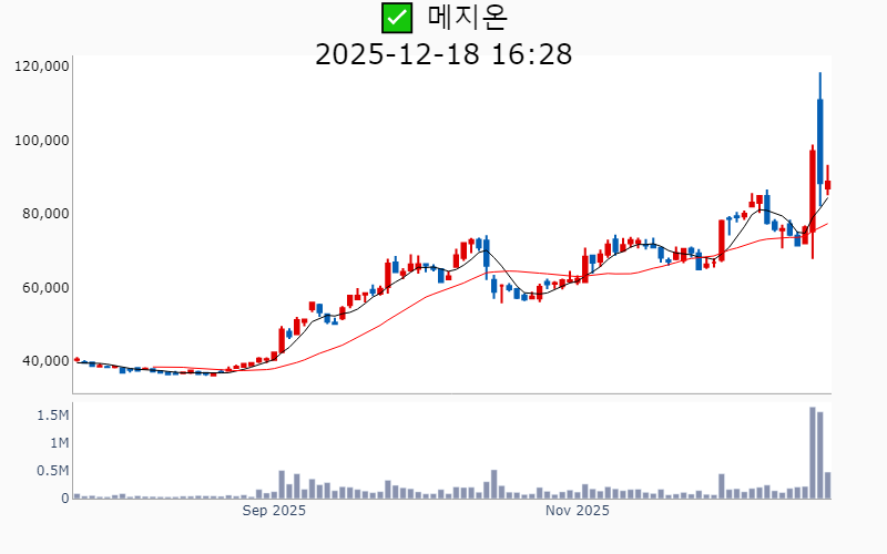 2025년 12월 18일 기준 주간 상승률 상위 15종목의 정보를 한눈에 볼 수 있도록 정리했습니다. 더욱 자세한 정보는 AWAKE 마켓브리핑 채널(https://t.me/awake_realtimeCheck)에서 확인하세요. 🔥 🚀 시장에서 강하고 수급이 집중되는 종목을 가장 빠르게 확인하고 싶다면, 마켓스타PRO⭐️ 소개(아래 링크를 클릭하세요)⭐️ https://fishy-trampoline-79b.notion.site/1d175164780f803e93abc1e53c38b42c ![]() ✅ 대성산업(시총 : 4,718억) 상승률(5D) : +45.8% 종목섹터 : 유가 - 강남고속버스터미널 인근 재개발 추진에 따른 대규모 부지 보유 부각 - 자본준비금 감액을 통한 배당 재원 확보 및 전력·에너지 연계 신사업 추진 기대감 --------------------------------------------------- ![]() ✅ 한화갤러리아(시총 : 2,797억) 상승률(5D) : +42.0% 종목섹터 : 밸류업 지수 - 갤러리아 명품관 리뉴얼 및 압구정 개발 호재로 인한 기대감. - 아이스크림 브랜드 '벤슨' 출시와 F&B 사업 확장에 따른 신사업 기대감. --------------------------------------------------- ![]() ✅ 아주IB투자(시총 : 3,271억) 상승률(5D) : +36.3% 종목섹터 : 우주항공/ 창투사 - AI·조선 분야에 3000억원 투자 발표로 인한 기대감 - 미국 AI·로보틱스 스타트업 투자 확대에 따른 성장 전망 --------------------------------------------------- ![]() ✅ 미래에셋벤처투자(시총 : 5,822억) 상승률(5D) : +34.3% 종목섹터 : 우주항공/ 창투사 - AI 유니콘 기업들의 IPO 일정 확정으로 인한 투자 회수 확대 전망. - 정부의 AI 투자 육성 정책에 따른 최대 수혜주로 부상 기대감. --------------------------------------------------- ![]() ✅ 삼화페인트(시총 : 1,659억) 상승률(5D) : +33.3% 종목섹터 : - 오너 2세 별세로 인한 승계 및 지배구조 변화 기대감 - 배터리 고속 충전 기술 개발로 차세대 배터리 사업 성장 동력 확보 기대감 --------------------------------------------------- ![]() ✅ 에이치브이엠(시총 : 4,213억) 상승률(5D) : +26.4% 종목섹터 : 우주항공/ 방산 - 스페이스X와의 협력 강화 및 공급 계약 확대에 따른 긍정적 전망. - 서산 제2공장 준공으로 인한 생산능력 확대 기대감. --------------------------------------------------- ![]() ✅ 에이블씨엔씨(시총 : 3,145억) 상승률(5D) : +26.2% 종목섹터 : 화장품 - 미샤 브랜드의 아마존 프라임데이와 틱톡샵에서의 성공적인 판매 성과로 미국 시장에서의 성장 기대감. - '어퓨' 브랜드의 분리 매각 추진으로 인한 기업 가치 재평가 기대감. --------------------------------------------------- ![]() ✅ 메지온(시총 : 2.7조) 상승률(5D) : +24.1% 종목섹터 : 바이오/헬스케어 - 유데나필의 미국 특허 취득 기대감과 유럽 허가 절차 본격화 소식. - 폰탄 치료제 개발에 따른 희귀질환 시장 선점 가능성 증가 전망. --------------------------------------------------- ![]() ✅ 이노스페이스(시총 : 2,429억) 상승률(5D) : +24.1% 종목섹터 : 우주항공 - 국내 최초 민간 상업 발사 허가 획득에 따른 기대감 - UAE와의 우주데이터센터 추진 소식에 따른 호재 --------------------------------------------------- ![]() ✅ 쿼드메디슨(시총 : 2,784억) 상승률(5D) : +23.1% 종목섹터 : - 의료용 마이크로니들 플랫폼 기술의 혁신성과 글로벌 백신포럼에서의 조명으로 인한 투자자 관심 집중. - 코스닥 상장 첫날 60% 급등으로 인한 시장의 긍정적 반응. --------------------------------------------------- ![]() ✅ 씨엠티엑스(시총 : 8,661억) 상승률(5D) : +23.1% 종목섹터 : - TSMC와 마이크론의 1차 협력사 지위 확보로 인한 글로벌 공급망 진입 기대감. - 반도체 식각 소재의 수직계열화와 리사이클링 기술을 통한 기술 경쟁력 강화 전망. --------------------------------------------------- ![]() ✅ 에스앤디(시총 : 2,054억) 상승률(5D) : +22.4% 종목섹터 : 건기식/ K-푸드/음식료 - 삼양식품의 밀양 2공장 본격 가동에 따른 수혜 기대감. - 불닭소스 글로벌 확산으로 인한 매출 급성장 전망. --------------------------------------------------- ![]() ✅ 현대무벡스(시총 : 1.4조) 상승률(5D) : +20.5% 종목섹터 : 로봇 - 물류 자동화 사업 수주 확대와 로봇산업 성장 기대감. - 인건비 부담 속 물류 자동화 호황에 따른 수주잔고 증가 전망. --------------------------------------------------- ![]() ✅ 신세계푸드(시총 : 1,853억) 상승률(5D) : +19.3% 종목섹터 : 밸류업 지수 - 이마트의 자발적 상장폐지 추진에 따른 공개매수 소식에 따른 기대감 - 신세계푸드의 상장폐지가 이마트 계열 경쟁력 강화의 지렛대로 작용할 전망 --------------------------------------------------- ![]() ✅ 드림씨아이에스(시총 : 1,288억) 상승률(5D) : +18.2% 종목섹터 : 바이오/헬스케어 - 차세대 비만치료제 국내 임상 3상 수행 및 독점유통 확보 계획 소식. - 미국 큐리바이오 지분 인수로 인한 AI 신약개발 진입 기대감. --------------------------------------------------- |