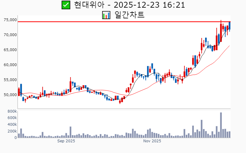 2025년 12월 23일 기준 52주/역사적 신고가에 근접한 종목 리스트를 한눈에 볼 수 있도록 정리했습니다. 더욱 자세한 정보는 AWAKE 신고가 모니터링 채널(https://t.me/awake_realtimeCheck)에서 확인하세요. 🔥 🚀 시장에서 강하고 수급이 집중되는 종목을 가장 빠르게 확인하고 싶다면, ⭐️⭐️마켓스타PRO 소개(아래 링크를 클릭하세요)⭐️⭐️ https://fishy-trampoline-79b.notion.site/1-1bd75164780f8043a665e84ea5e17548 ![]() ✅ 삼성전자우 🔍 역사적 최고가 1.5% 남음 거래대금 : 1,724억 시가총액 : 70.0조 현재주가 : 85,800원 - 역사적 최고가 : 87,100원(+1.5%) --------------------------------------------------- ![]() ✅ 현대차 🔍 역사적 최고가 11.8% 남음 거래대금 : 2,013억 시가총액 : 58.8조 현재주가 : 287,000원 - 역사적 최고가 : 321,000원(+11.8%) --------------------------------------------------- ![]() ✅ SK스퀘어 🔍 역사적 최고가 3.2% 남음 거래대금 : 643억 시가총액 : 41.6조 현재주가 : 315,000원 - 역사적 최고가 : 325,000원(+3.2%) --------------------------------------------------- ![]() ✅ 현대모비스 🔍 역사적 최고가 4.0% 남음 거래대금 : 799억 시가총액 : 32.9조 현재주가 : 363,000원 - 역사적 최고가 : 377,500원(+4.0%) --------------------------------------------------- ![]() ✅ 하나금융지주 🔍 역사적 최고가 4.6% 남음 거래대금 : 338억 시가총액 : 25.9조 현재주가 : 93,000원 - 역사적 최고가 : 97,300원(+4.6%) --------------------------------------------------- ![]() ✅ 우리금융지주 🔍 역사적 최고가 2.8% 남음 거래대금 : 248억 시가총액 : 20.7조 현재주가 : 28,200원 - 역사적 최고가 : 29,000원(+2.8%) --------------------------------------------------- ![]() ✅ 한국항공우주 🔍 역사적 최고가 2.2% 남음 거래대금 : 760억 시가총액 : 11.1조 현재주가 : 113,800원 - 역사적 최고가 : 116,300원(+2.2%) --------------------------------------------------- ![]() ✅ 에이비엘바이오 🔍 역사적 최고가 12.3% 남음 거래대금 : 1,446억 시가총액 : 10.3조 현재주가 : 187,000원 - 역사적 최고가 : 210,000원(+12.3%) --------------------------------------------------- ![]() ✅ 키움증권 🔍 역사적 최고가 3.6% 남음 거래대금 : 269억 시가총액 : 8.1조 현재주가 : 301,500원 - 역사적 최고가 : 312,500원(+3.6%) --------------------------------------------------- ![]() ✅ 삼성카드 🔍 역사적 최고가 4.1% 남음 거래대금 : 16억 시가총액 : 6.5조 현재주가 : 56,100원 - 역사적 최고가 : 58,400원(+4.1%) --------------------------------------------------- ![]() ✅ 포스코DX 🔍 52주 최고가 4.9% 남음 거래대금 : 2,580억 시가총액 : 4.5조 현재주가 : 29,750원 - 52주 최고가 : 31,200원(+4.9%) - 사상 최고가 : 75,600원(-2.1%) --------------------------------------------------- ![]() ✅ 로보티즈 🔍 역사적 최고가 12.2% 남음 거래대금 : 1,881억 시가총액 : 4.1조 현재주가 : 279,000원 - 역사적 최고가 : 313,000원(+12.2%) --------------------------------------------------- ![]() ✅ 현대엘리베이터 🔍 역사적 최고가 4.5% 남음 거래대금 : 187억 시가총액 : 3.5조 현재주가 : 89,600원 - 역사적 최고가 : 93,600원(+4.5%) --------------------------------------------------- ![]() ✅ HD현대마린엔진 🔍 52주 최고가 4.2% 남음 거래대금 : 614억 시가총액 : 3.3조 현재주가 : 97,100원 - 52주 최고가 : 101,200원(+4.2%) - 사상 최고가 : 962,783원(+1147.1%) --------------------------------------------------- ![]() ✅ 금호석유화학 🔍 52주 최고가 4.4% 남음 거래대금 : 89억 시가총액 : 3.3조 현재주가 : 126,000원 - 52주 최고가 : 131,600원(+4.4%) - 사상 최고가 : 298,000원(+286.0%) --------------------------------------------------- ![]() ✅ DB하이텍 🔍 52주 최고가 3.0% 남음 거래대금 : 299억 시가총액 : 3.0조 현재주가 : 69,400원 - 52주 최고가 : 71,500원(+3.0%) - 사상 최고가 : 84,900원(+10.0%) --------------------------------------------------- ![]() ✅ 원익홀딩스 🔍 역사적 최고가 7.7% 남음 거래대금 : 2,896억 시가총액 : 2.7조 현재주가 : 35,100원 - 역사적 최고가 : 37,800원(+7.7%) --------------------------------------------------- ![]() ✅ HL만도 🔍 52주 최고가 14.2% 남음 거래대금 : 668억 시가총액 : 2.5조 현재주가 : 53,400원 - 52주 최고가 : 61,000원(+14.2%) - 사상 최고가 : 81,000원(+4.9%) --------------------------------------------------- ![]() ✅ OCI홀딩스 🔍 52주 최고가 5.7% 남음 거래대금 : 373억 시가총액 : 2.3조 현재주가 : 121,900원 - 52주 최고가 : 128,900원(+5.7%) - 사상 최고가 : 148,204원(+92.0%) --------------------------------------------------- ![]() ✅ ISC 🔍 역사적 최고가 6.2% 남음 거래대금 : 139억 시가총액 : 2.3조 현재주가 : 107,300원 - 역사적 최고가 : 114,000원(+6.2%) --------------------------------------------------- ![]() ✅ 현대위아 🔍 52주 최고가 2.4% 남음 거래대금 : 141억 시가총액 : 2.0조 현재주가 : 71,900원 - 52주 최고가 : 74,400원(+2.4%) - 사상 최고가 : 193,000원(+150.0%) --------------------------------------------------- ![]() ✅ 롯데관광개발 🔍 역사적 최고가 4.6% 남음 거래대금 : 122억 시가총액 : 1.8조 현재주가 : 22,750원 - 역사적 최고가 : 23,800원(+4.6%) --------------------------------------------------- ![]() ✅ 다우기술 🔍 역사적 최고가 6.2% 남음 거래대금 : 15억 시가총액 : 1.8조 현재주가 : 39,650원 - 역사적 최고가 : 42,100원(+6.2%) --------------------------------------------------- ![]() ✅ 금호타이어 🔍 52주 최고가 4.3% 남음 