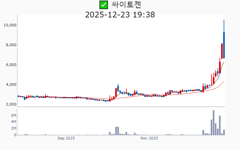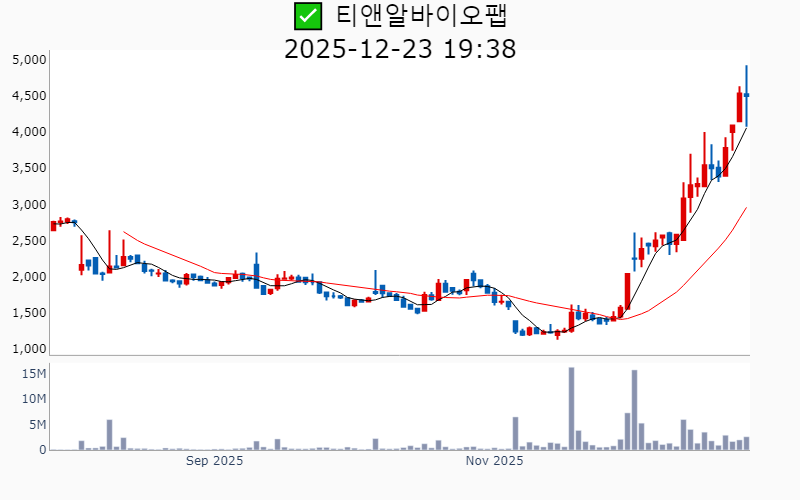 2025년 12월 23일 기준 주간 상승률 상위 15종목의 정보를 한눈에 볼 수 있도록 정리했습니다. 더욱 자세한 정보는 AWAKE 마켓브리핑 채널(https://t.me/awake_realtimeCheck)에서 확인하세요. 🔥 🚀 시장에서 강하고 수급이 집중되는 종목을 가장 빠르게 확인하고 싶다면, 마켓스타PRO⭐️ 소개(아래 링크를 클릭하세요)⭐️ https://fishy-trampoline-79b.notion.site/1d175164780f803e93abc1e53c38b42c ![]() ✅ 비츠로넥스텍(시총 : 4,181억) 상승률(5D) : +43.5% 종목섹터 : 우주항공 - 누리호 부품 공급을 통한 우주항공주로의 기대감. - 가속기 핵심 부품 '클라이스트론'의 상용화 전망. --------------------------------------------------- ![]() ✅ 미래에셋증권우(시총 : 13.0조) 상승률(5D) : +43.0% 종목섹터 : - 스페이스X의 실질 수혜주로 평가되며 급등 전망. - 증권주 전반의 거래대금 증가에 따른 상승 기대감. --------------------------------------------------- ![]() ✅ 미래에셋벤처투자(시총 : 1.2조) 상승률(5D) : +41.9% 종목섹터 : 우주항공/ 창투사 - 스페이스X 상장 기대감에 따른 주가 급등. - AI 유니콘 IPO 성공 가능성에 대한 긍정적 전망. --------------------------------------------------- ![]() ✅ 아이티센글로벌(시총 : 6,613억) 상승률(5D) : +40.5% 종목섹터 : 가상자산/STO/핀테크 - 금 거래 증가와 디지털 자산 사업 확대로 인한 사상 최대 실적 기대감. - 일본 JPYC와의 스테이블코인 사업 협력으로 디지털 금융 생태계 확장 전망. --------------------------------------------------- ![]() ✅ 켄코아에어로스페이스(시총 : 1,988억) 상승률(5D) : +37.0% 종목섹터 : 우주항공/ 드론/UAM - NASA 달 탐사 프로젝트에 한국 참여 요청으로 협력 부각 - 스페이스X 등 주요 고객사 확보 및 미국 현지 증설 기대감 --------------------------------------------------- ![]() ✅ 드림씨아이에스(시총 : 1,830억) 상승률(5D) : +37.0% 종목섹터 : 바이오/헬스케어 - 미국 큐리바이오 지분 23.7% 인수 결정으로 오가노이드 분야 확장 기대감. - 비만치료제 국내 임상 3상 수행 및 독점유통 확보 계획 소식에 따른 성장 전망. --------------------------------------------------- ![]() ✅ 현대무벡스(시총 : 1.8조) 상승률(5D) : +36.5% 종목섹터 : 로봇 - 로봇산업 성장 기대와 현대차의 대규모 로봇 투자 소식에 따른 실적 기대감. - 물류자동화 사업 수주 확대와 반기 최대 실적 달성에 따른 긍정적 전망. --------------------------------------------------- ![]() ✅ 삼화페인트(시총 : 2,339억) 상승률(5D) : +34.1% 종목섹터 : - 회장 별세로 인한 경영권 분쟁 가능성에 따른 지배구조 변화 기대감. - 차세대 배터리 사업 성장 동력 확보 소식. --------------------------------------------------- ![]() ✅ 삼현(시총 : 1.8조) 상승률(5D) : +33.5% 종목섹터 : 방산/ 자동차/부품/ HEV/ 로봇 - 빅테크 2곳과의 수주 임박 소식으로 주가 상승 기대감. - 고하중 자율주행로봇 상용 개발 완료 소식에 따른 기술력 호재. --------------------------------------------------- ![]() ✅ 티앤알바이오팹(시총 : 2,079억) 상승률(5D) : +32.9% 종목섹터 : 바이오/헬스케어 - 미국에서 3D 인공장기 대량생산 기술 특허 등록 소식에 따른 기술적 우위 확보 기대감 - 블리스팩 인수 완료로 인한 내년 매출 급증 전망 --------------------------------------------------- ![]() ✅ 에이치브이엠(시총 : 6,213억) 상승률(5D) : +30.1% 종목섹터 : 우주항공/ 방산 - 스페이스X와의 협력 강화 및 공급계약 소식으로 주가 상승 기대감. - 서산 제2공장 준공으로 생산능력 확대 및 우주산업 매출 증가 전망. --------------------------------------------------- ![]() ✅ 싸이토젠(시총 : 1,878억) 상승률(5D) : +30.0% 종목섹터 : 바이오/헬스케어 - 경영권 분쟁 종결로 인한 불확실성 해소와 사업 성장 가속화 기대감. - 자회사 지놈케어의 AI 기술로 염색체 이상 탐지 정확도 100% 달성 소식. --------------------------------------------------- ![]() ✅ 나노엔텍(시총 : 1,895억) 상승률(5D) : +28.5% 종목섹터 : 비만 치료제/ 바이오/헬스케어 - 로레알과의 공동 개발을 통한 차세대 피부 진단기기 '셀 바이오프린트' 론칭 소식 - AAI헬스케어와의 주식교환으로 디지털 헬스케어 경쟁력 강화 기대감 --------------------------------------------------- ![]() ✅ 나라스페이스테크놀로지(시총 : 5,265억) 상승률(5D) : +28.4% 종목섹터 : - 미국 달 탐사 참여를 통한 한국 큐브위성 개발 소식에 따른 기대감 - 세계경제포럼에서 '100대 기술 선도 기업'으로 선정된 점에 대한 호재 --------------------------------------------------- ![]() ✅ 티엠씨(시총 : 4,385억) 상승률(5D) : +26.9% 종목섹터 : 조선/에너지 - '특수 케이블 전문' 티엠씨, 코스피 상장 첫날 급등 소식 - 미국 시장 공략 가속 및 '3대 슈퍼사이클' 수혜 기대감 --------------------------------------------------- |
