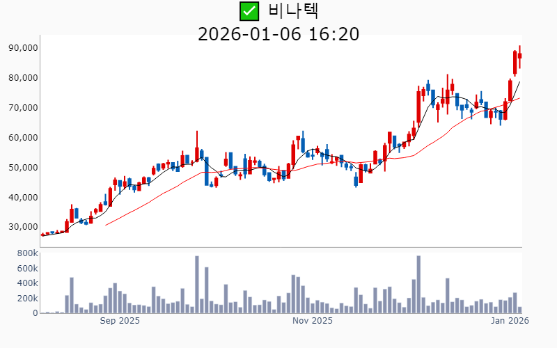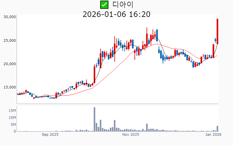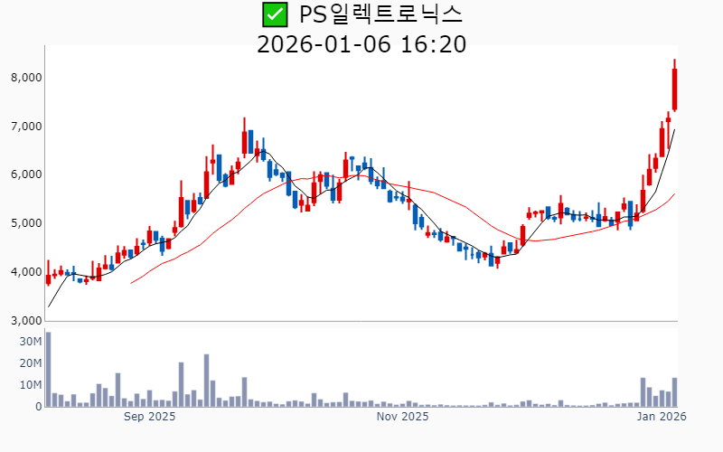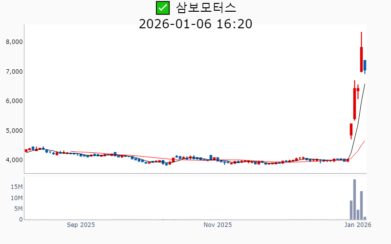 2026년 1월 6일 기준 주간 상승률 상위 15종목의 정보를 한눈에 볼 수 있도록 정리했습니다. 더욱 자세한 정보는 AWAKE 마켓브리핑 채널(https://t.me/awake_realtimeCheck)에서 확인하세요. 🔥 🚀 시장에서 강하고 수급이 집중되는 종목을 가장 빠르게 확인하고 싶다면, 마켓스타PRO⭐️ 소개(아래 링크를 클릭하세요)⭐️ https://fishy-trampoline-79b.notion.site/1d175164780f803e93abc1e53c38b42c ![]() ✅ 원익(시총 : 2,611억) 상승률(5D) : +71.3% 종목섹터 : 화장품 - 자회사 원익홀딩스의 로봇 사업 확대와 관련된 긍정적 전망 부각. - 반도체 및 로봇 산업의 성장 기대감에 따른 주가 상승. --------------------------------------------------- ![]() ✅ 테라뷰(시총 : 4,241억) 상승률(5D) : +58.1% 종목섹터 : - 엔비디아, 인텔, 삼성 등 주요 기업에 AI 반도체 검사 기술 공급으로 인한 기대감. - 테라헤르츠 기술을 활용한 반도체 및 2차전지 검사 솔루션의 시장 확대 전망. --------------------------------------------------- ![]() ✅ 쎄트렉아이(시총 : 1.1조) 상승률(5D) : +57.7% 종목섹터 : 우주항공 - 초고해상도 위성 '스페이스아이-티' 발사 성공과 첫 영상 공개로 기술력 입증 및 시장 기대감. - 유럽에 수백억원 규모의 초고해상도 위성 영상 공급 계약 체결로 매출 성장 전망. --------------------------------------------------- ![]() ✅ 이노스페이스(시총 : 3,211억) 상승률(5D) : +50.3% 종목섹터 : 우주항공 - 국내 최초 민간기업의 독자 개발 시험발사체 '한빛-TLV' 발사 성공 기대감. - 하이브리드 로켓용 고체연료 기술 보유로 인한 우주산업 내 경쟁력 강화 전망. --------------------------------------------------- ![]() ✅ 에코마케팅(시총 : 4,929억) 상승률(5D) : +48.9% 종목섹터 : 이커머스/광고 - 베인캐피탈의 공개매수 추진으로 주가 상승 기대감. - 안다르의 글로벌 확장 계획으로 실적 개선 전망. --------------------------------------------------- ![]() ✅ 메디아나(시총 : 2,102억) 상승률(5D) : +46.4% 종목섹터 : 감염병 - 국내 최초로 유무선 통합 AI 심전도 모니터링 서비스를 개시한 혁신적인 의료AI 솔루션 발표. - 유럽 CE MDR 인증을 획득하며 글로벌 시장 확장 가능성 부각. --------------------------------------------------- ![]() ✅ 제주반도체(시총 : 1.1조) 상승률(5D) : +42.3% 종목섹터 : 중국 반도체/ 반도체 - AI 반도체 설계가 국가전략기술로 지정되며 메모리 설계 기술 부각. - 미국 양자경제개발컨소시움과의 협력으로 기술력 재조명. --------------------------------------------------- ![]() ✅ 나무가(시총 : 3,192억) 상승률(5D) : +39.3% 종목섹터 : 메타버스/XR - 글로벌 완성차 기업향 로봇 플랫폼 '3D 센서' 공급사 선정으로 인한 기대감. - 인텔 차세대 보안시스템에 핵심 부품 공급 소식으로 인한 글로벌 경쟁력 입증. --------------------------------------------------- ![]() ✅ 한미반도체(시총 : 15.9조) 상승률(5D) : +39.0% 종목섹터 : 반도체 - HBM용 TC본더 시장 점유율 1위 소식과 세계일류상품 선정 소식. - 반도체 장비 업계의 기술 경쟁력 및 생산능력 제고로 수주 확대 기대감. --------------------------------------------------- ![]() ✅ 루미르(시총 : 1,830억) 상승률(5D) : +35.9% 종목섹터 : 우주항공 - SAR 위성 발사 준비와 자체위성 LumirX 발사 기대감. - 스페이스X와의 협력 및 SAR 정부 과제 증가로 수주 정상화 기대감. --------------------------------------------------- ![]() ✅ 디아이(시총 : 7,061억) 상승률(5D) : +35.9% 종목섹터 : 반도체/ ESS - HBM4 신규 장비의 퀄 통과로 SK하이닉스향 발주 전환 기대감. - 삼성전자와 대규모 반도체 검사장비 공급계약 체결 호재. --------------------------------------------------- ![]() ✅ 삼보모터스(시총 : 1,787억) 상승률(5D) : +35.1% 종목섹터 : 자동차/부품/ HEV - CES 2025에서 세계 최초 수소전지 하이브리드 UAM 공개로 주목받은 점. - 친환경차 부품 모멘텀 부각 속 CB 전환가 하향 조정에 따른 투자심리 개선. --------------------------------------------------- ![]() ✅ PS일렉트로닉스(시총 : 3,131억) 상승률(5D) : +33.8% 종목섹터 : 전력설비 - 테슬라의 로보택시 프로젝트에 RF모듈 공급 확정 소식으로 주가 상승 기대감. - 자율주행 및 AI 신사업 확장에 따른 글로벌 수주 증가 전망. --------------------------------------------------- ![]() ✅ 성호전자(시총 : 8,858억) 상승률(5D) : +33.4% 종목섹터 : 냉각 - AI 데이터센터 부품업체 에이디에스테크 인수 소식에 따른 성장 기대감 - 엔비디아 협력사 인수로 인한 AI 밸류체인 진입 전망 --------------------------------------------------- ![]() ✅ 비나텍(시총 : 5,973억) 상승률(5D) : +33.1% 종목섹터 : 수소 - 미국 블룸에너지와 AI 데이터센터용 슈퍼커패시터 장기 공급 계약 체결 소식. - 데이터센터 투자 확대에 따른 슈퍼커패시터 수요 증가 전망. --------------------------------------------------- |