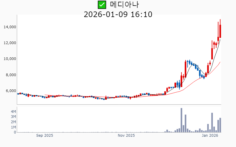 | 제목 | 주간상승률 상위 15종목(2026년 1월 9일) |