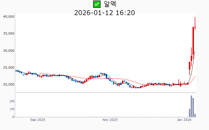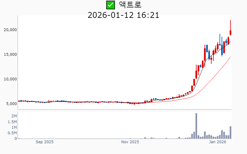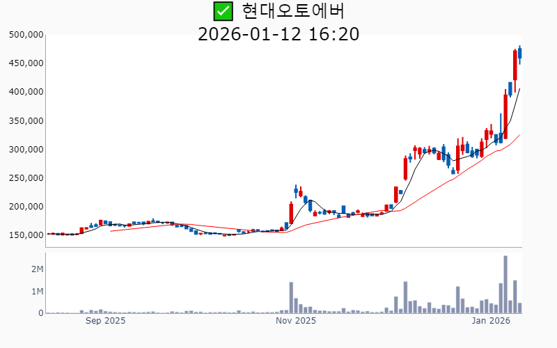 2026년 1월 12일 기준 주간 상승률 상위 15종목의 정보를 한눈에 볼 수 있도록 정리했습니다. 더욱 자세한 정보는 AWAKE 마켓브리핑 채널(https://t.me/awake_realtimeCheck)에서 확인하세요. 🔥 🚀 시장에서 강하고 수급이 집중되는 종목을 가장 빠르게 확인하고 싶다면, 마켓스타PRO⭐️ 소개(아래 링크를 클릭하세요)⭐️ https://fishy-trampoline-79b.notion.site/1d175164780f803e93abc1e53c38b42c ![]() ✅ 모베이스전자(시총 : 1,860억) 상승률(5D) : +81.1% 종목섹터 : 자동차/부품/ HEV - 현대차그룹의 로보틱스 MobED의 핵심 부품 양산 소식에 따른 기대감. - 1조원 규모의 BDC 현대차·기아 공급 개시를 앞두고 있는 호재. --------------------------------------------------- ![]() ✅ 알멕(시총 : 2,358억) 상승률(5D) : +80.2% 종목섹터 : 우주항공 - 우주항공 분야에서의 성과 가시화 기대감과 관련한 호재 - 미국 완성차업체와의 1900억원 규모 부품공급 계약 체결에 따른 긍정적 전망 --------------------------------------------------- ![]() ✅ 링크솔루션(시총 : 3,594억) 상승률(5D) : +55.8% 종목섹터 : 로봇 - 현대차와의 3D프린터 공급 계약 체결로 매출 확대 기대감. - 북미 로보틱스 B사와의 최종 공급 계약 임박으로 성장 기대감. --------------------------------------------------- ![]() ✅ 우림피티에스(시총 : 2,493억) 상승률(5D) : +55.3% 종목섹터 : 신재생/ 로봇/ 재건/ 조선/에너지 - 보스턴다이내믹스의 로봇 '아틀라스' 공개 소식과 관련해 정밀감속기 공급업체로 주목받으며 주가 상승. - 현대차 및 삼성과의 협력 레퍼런스 확보로 로봇 밸류체인 내 위치 강화 기대감. --------------------------------------------------- ![]() ✅ 현대오토에버(시총 : 12.9조) 상승률(5D) : +47.6% 종목섹터 : 로봇/ 자율주행/ 자동차/부품 - 그룹 내 로봇 AI·SI 사업 솔루션 역할 확정으로 인한 기대감. - 로보틱스와 자율주행 관련 기대감 상승. --------------------------------------------------- ![]() ✅ 계양전기(시총 : 3,359억) 상승률(5D) : +47.2% 종목섹터 : 로봇 - 현대트랜시스와의 로보틱스 모듈 공급 계약 체결 소식으로 로봇주 부각. - 로봇 테마주 급부상과 현대차 계열사 공급 기대감. --------------------------------------------------- ![]() ✅ 이노스페이스(시총 : 3,976억) 상승률(5D) : +44.4% 종목섹터 : 우주항공 - 민간 우주발사체 '한빛-나노'의 상업 발사 재시도 기대감. - 유럽 발사 거점 확보로 글로벌 시장 진출 기대감. --------------------------------------------------- ![]() ✅ 한국피아이엠(시총 : 3,837억) 상승률(5D) : +39.2% 종목섹터 : 로봇 - 휴머노이드 로봇 손 감속기 본격 진출 소식에 따른 기대감. - 로보티즈와의 협업을 통한 휴머노이드 밸류체인 합류 전망. --------------------------------------------------- ![]() ✅ 삼익제약(시총 : 1,734억) 상승률(5D) : +37.3% 종목섹터 : 바이오/헬스케어 - 장기지속형 주사제 개발 및 비만 치료제 성장성 기대감. - 생산설비 증설 및 분당서울대병원 약제심의 통과 소식에 따른 신뢰성 강화. --------------------------------------------------- ![]() ✅ 알지노믹스(시총 : 2.7조) 상승률(5D) : +33.6% 종목섹터 : 바이오/헬스케어 - 일라이릴리와 최대 1조9000억원 규모의 RNA 치료제 기술이전 계약 체결 호재. - RNA 치환효소 기반 기술로 글로벌 바이오 시장에서 주목받는 전망. --------------------------------------------------- ![]() ✅ 액트로(시총 : 1,853억) 상승률(5D) : +32.1% 종목섹터 : 로봇/ 자율주행 - 업계 최초로 6축 성능 검사기 공급 개시 및 글로벌 기업 초도 납품 소식. - 테라헤르츠파 검사장비로 HBM·유리기판·2차전지 시장 확장 기대감. --------------------------------------------------- ![]() ✅ 한국카본(시총 : 2.0조) 상승률(5D) : +29.7% 종목섹터 : 조선/에너지 - 북미 LNG 운반선 수주 기대감에 따른 주가 상승 모멘텀. - LNG 보냉재 독점 공급 및 글로벌 수주 확대에 따른 성장 전망. --------------------------------------------------- ![]() ✅ 한화시스템(시총 : 14.5조) 상승률(5D) : +29.4% 종목섹터 : 방산/ 드론/UAM - 한화시스템, 미국 보잉 F-15 항전장비 공급 계약 체결로 미국 시장 첫 진출 기대감 - 필리핀에 '함정 두뇌' 5번째 수출 성공으로 해외 방산 시장 확장 전망 --------------------------------------------------- ![]() ✅ 현대글로비스(시총 : 17.0조) 상승률(5D) : +29.3% 종목섹터 : 자동차/부품/ 밸류업 지수 - 5800억 원 규모의 LNG 해상운송 계약 체결로 인한 사업 다각화 기대감. - 3분기 영업이익 11.7% 증가와 함께 해운 사업 확대로 인한 실적 호조 전망. --------------------------------------------------- ![]() ✅ 쎄트렉아이(시총 : 1.2조) 상승률(5D) : +29.2% 종목섹터 : 우주항공 - 초고해상도 상용위성 '스페이스아이-T' 발사 성공 및 영상 공개로 인한 기대감. - 스페이스X 상장 기대감 및 우주사업 가치 부각으로 인한 밸류에이션 리레이팅 전망. --------------------------------------------------- |